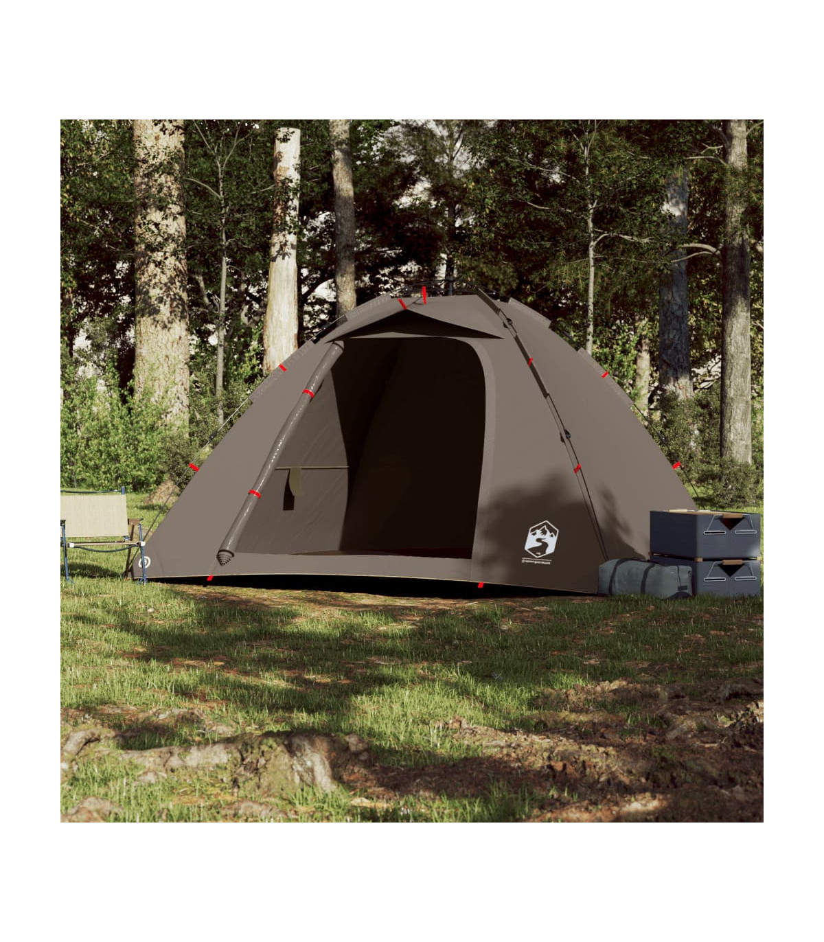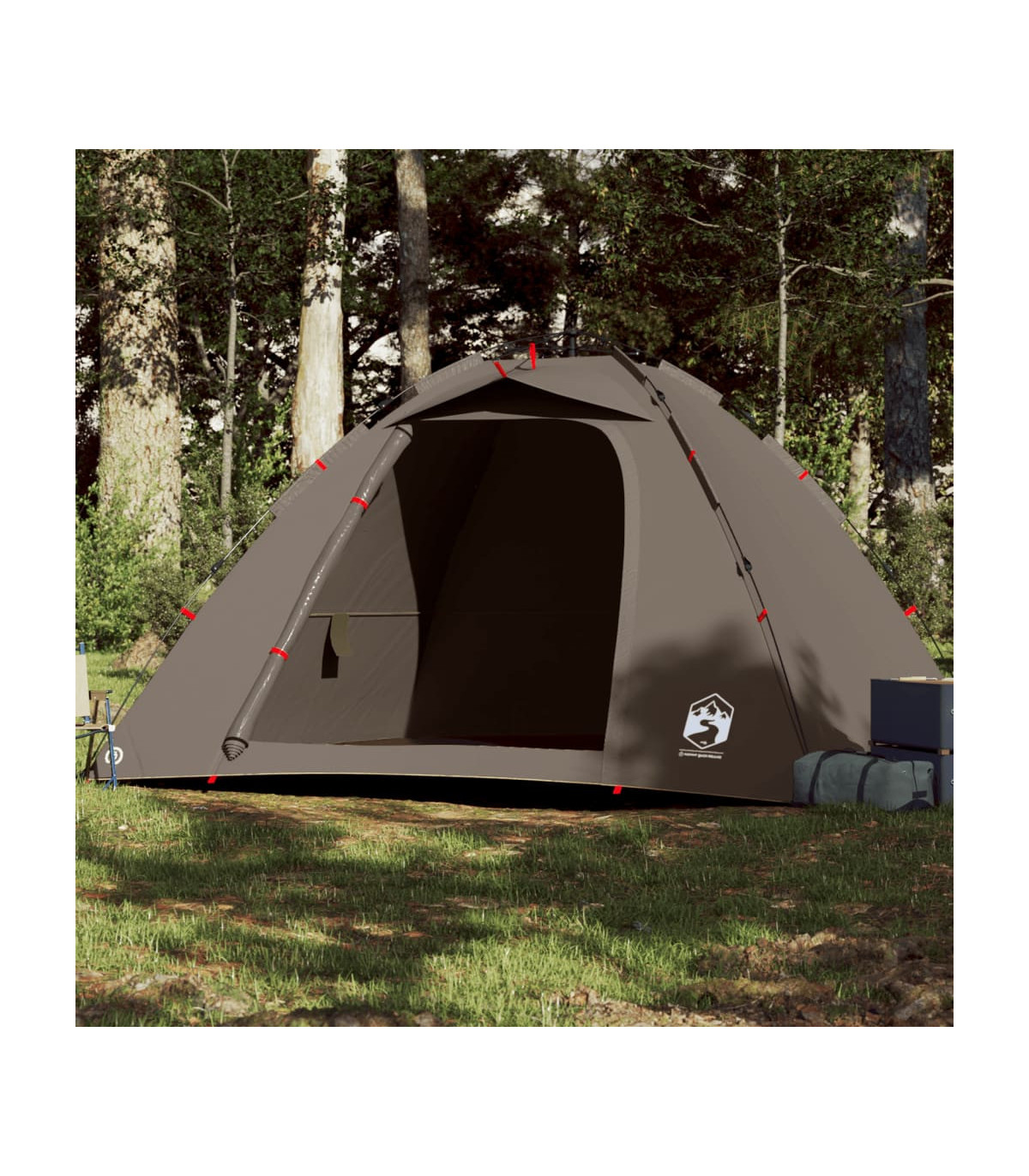 This fishing tent is perfect for creating some shade and protection from the sun's harmful UV rays when fishing. All-round waterproof design: This camping tent, made from polyester with a PU coating, is waterproof and wind resistant. The taped seams effectively prevent rainwater infiltration, while the heavy-duty ground sheet helps maintain a dry and comfortable interior.Quick-release system: Set up the tent effortlessly with the quick-release system! Lay the tent down, extend the pre-assembled poles until they lock into place, and you're all set!Easy access: The zippered door allows for easy access. You can roll it up and secure it with the door toggles. It also promotes airflow and provides ample natural light.Convenient electrical cord access: The E-port allows you to easily connect an extension cord from an external power source to your tent.Lightweight and portable: The foldable and lightweight design allows you to easily pack the tent and store it in the included carry bag for easy transport. Warning:Keep all flame and heat sources away from this product fabric.