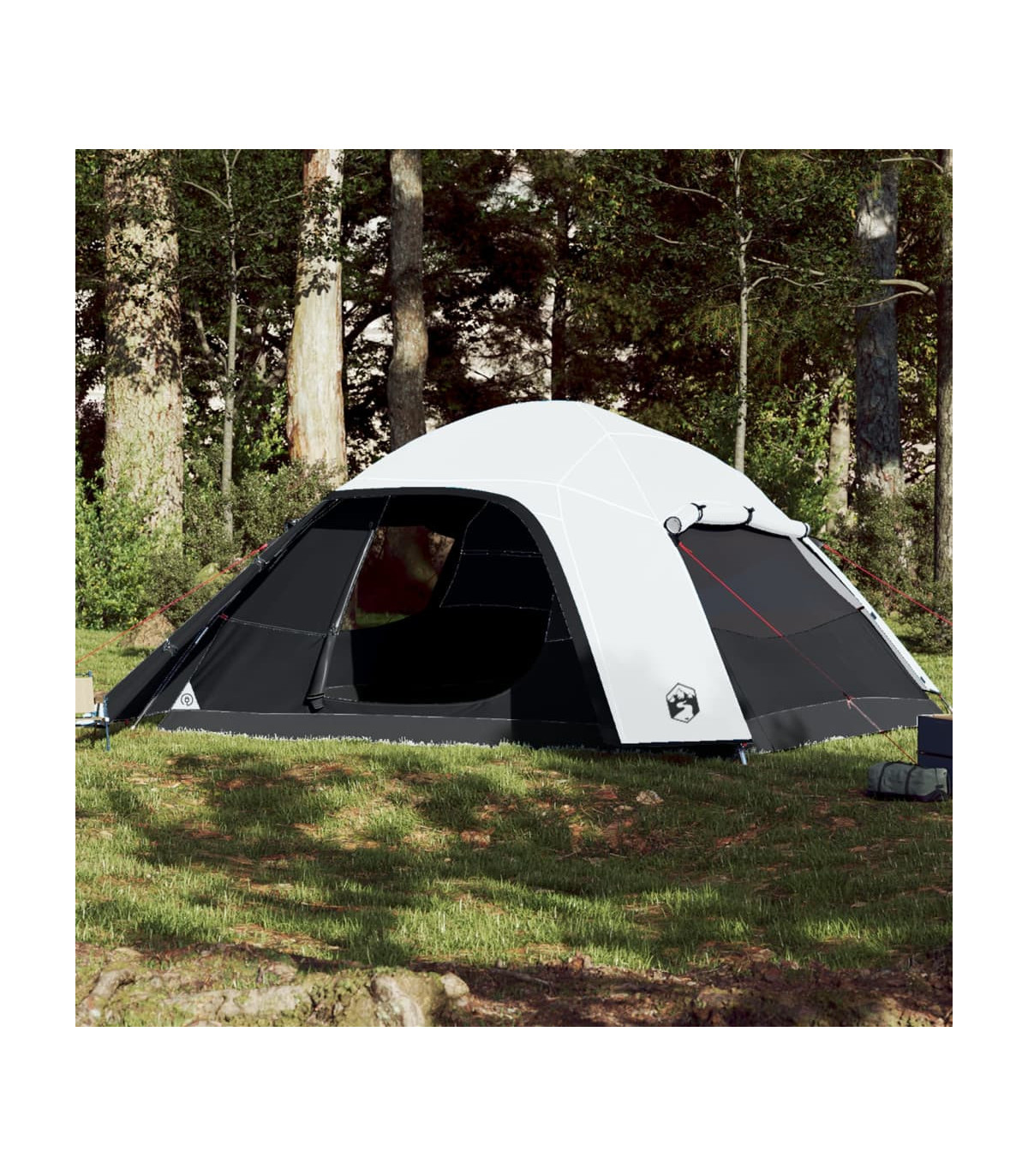 This camping tent with a modern look protects you from the unpleasant weather and provides a comfortable place for anywhere adventures. All-round waterproof design: This camping tent, made from polyester with a PU coating, is waterproof and wind resistant. The taped seams effectively prevent rainwater infiltration, while the heavy-duty ground sheet helps maintain a dry and comfortable interior.Detachable rainfly: The detachable rainfly can be attached to the tent's top for weather protection and privacy.Good ventilation & mosquito protection: The mesh walls not only offer excellent ventilation but also effectively keep insects at bay, ensuring a comfortable and bug-free experience for users.Convenient electrical cord access: The E-port allows you to easily connect an extension cord from an external power source to your tent.Easy setup and takedown: Setting up and taking down the tent is a breeze thanks to the highly flexible and lightweight fibreglass poles and the convenient pin-and-ring connection system. Warning:Keep all flame and heat sources away from this product fabric.