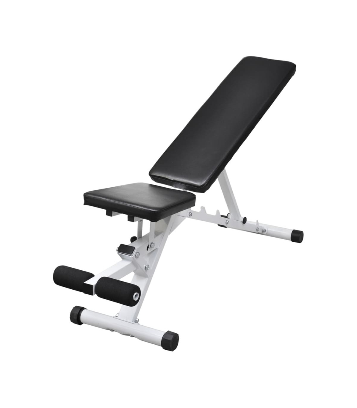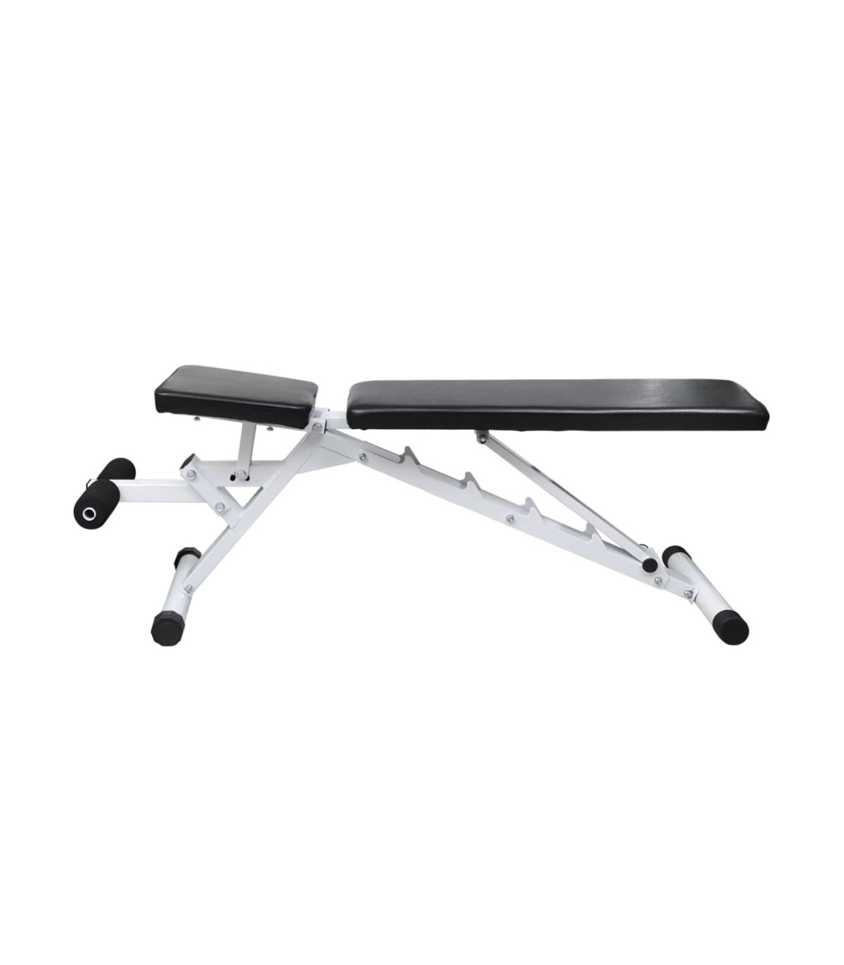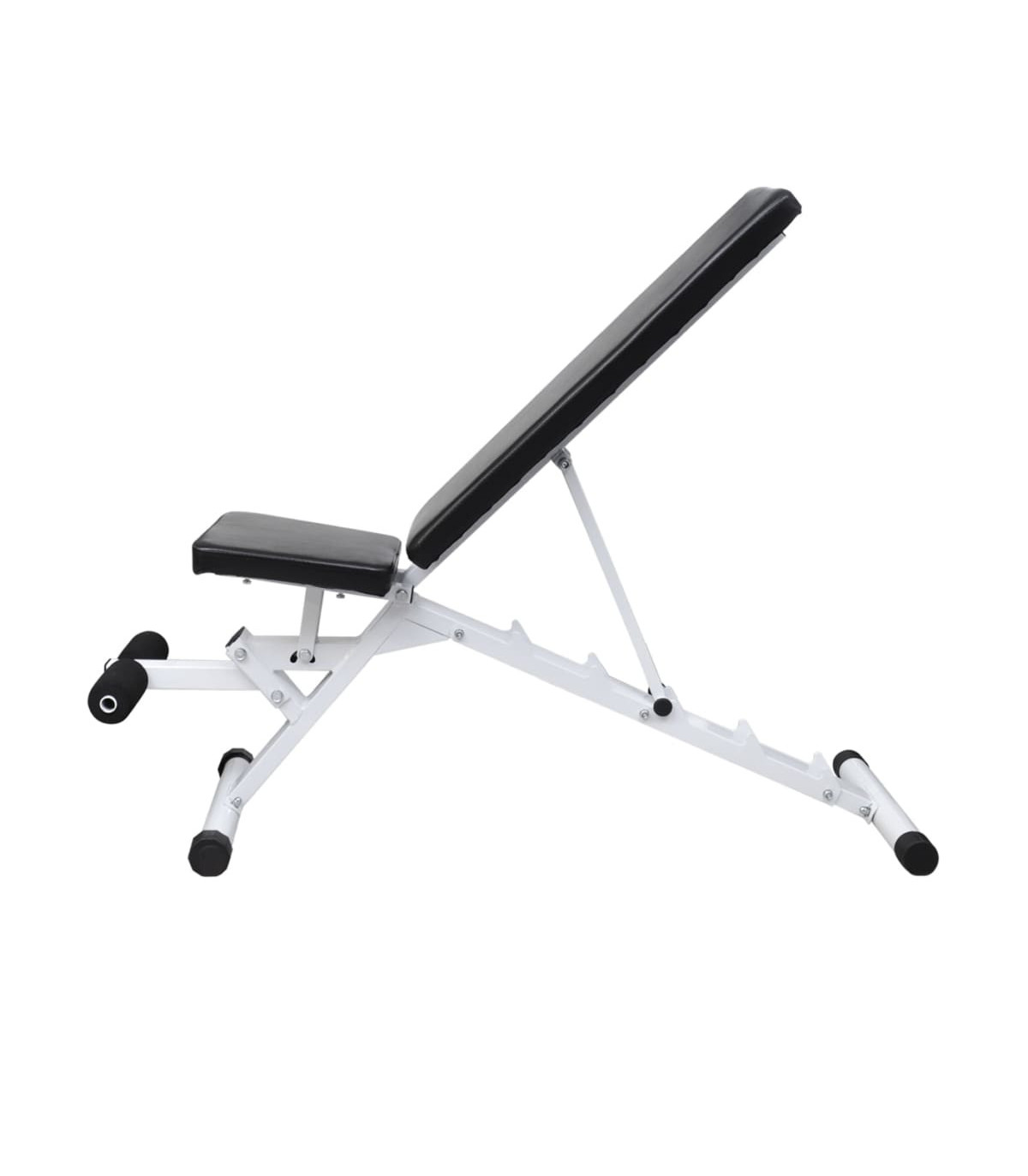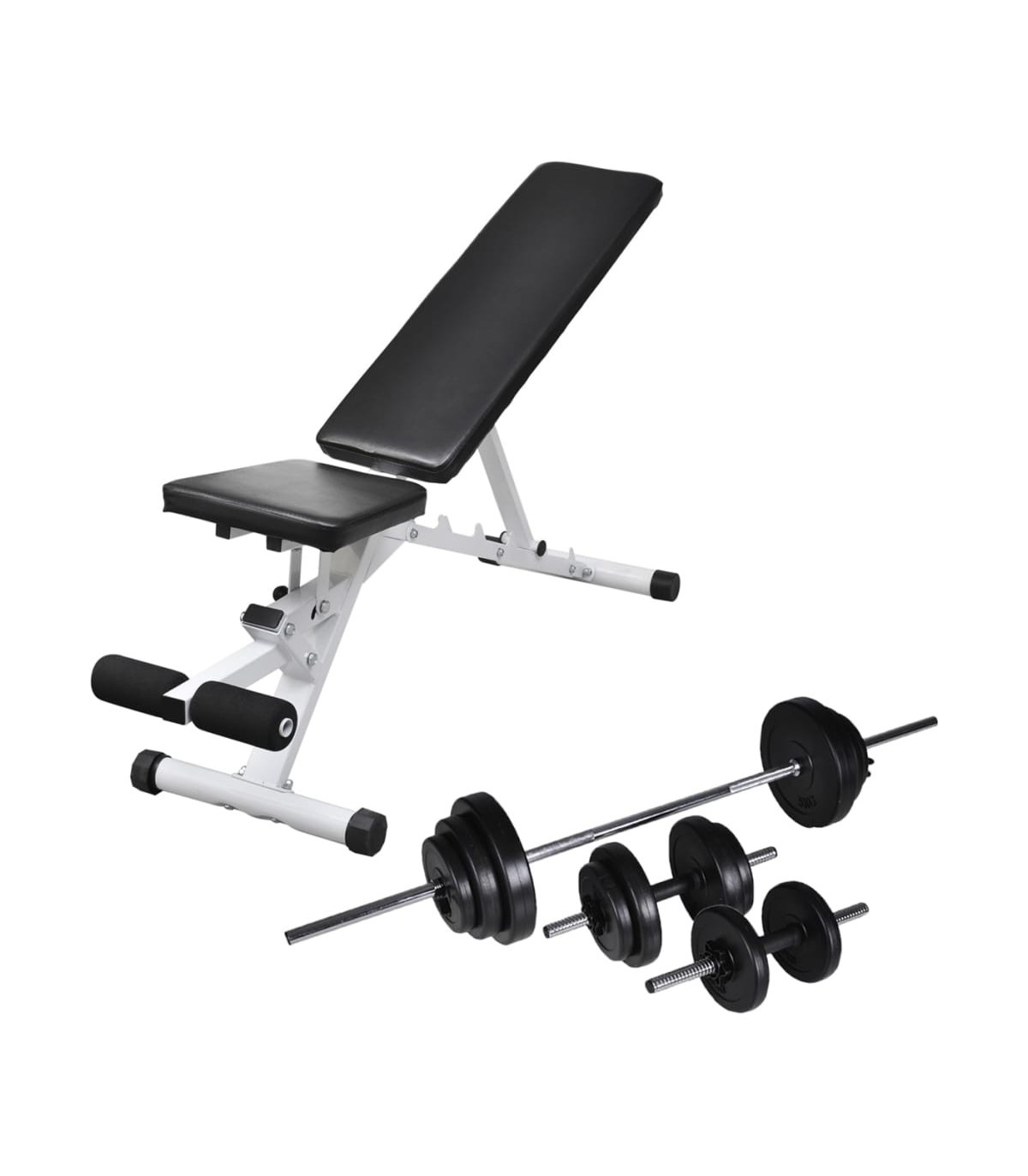 This workout bench, delivered with a barbell and dumbbell set, will improve your physical fitness, tone your muscles and, in conjunction with a calorie-controlled diet, help you lose weight. It is suitable for your personal home gym or any commercial gym or training studio. The weight bench is equipped with an adjustable backrest. The backrest will comfortably support your back and shoulders during your workout. The five adjustable settings of backrest enable you to choose the most comfortable position and adjust your training intensity to meet your specific needs. This versatile fitness bench is constructed from top-quality steel, and the durable, padded cushion will offer you great comfort during your workout. The barbell and dumbbell set features solid chrome-plated bars with quick-action spring collars (for barbell bar), non-slip grips, and fluted star-screw caps (for dumbbell bars) for secure attachment of the weight plates. You can work out without worrying about safety issues. The weight plates are made with a robust polyethylene casing. They can be combined in various ways for different training purposes. Delivery includes a workout bench, a barbell bar, two dumbbell bars, six 1.25 kg weight plates, four 2.5 kg weight plates, two 5 kg weight plates, four caps and two spring collars.