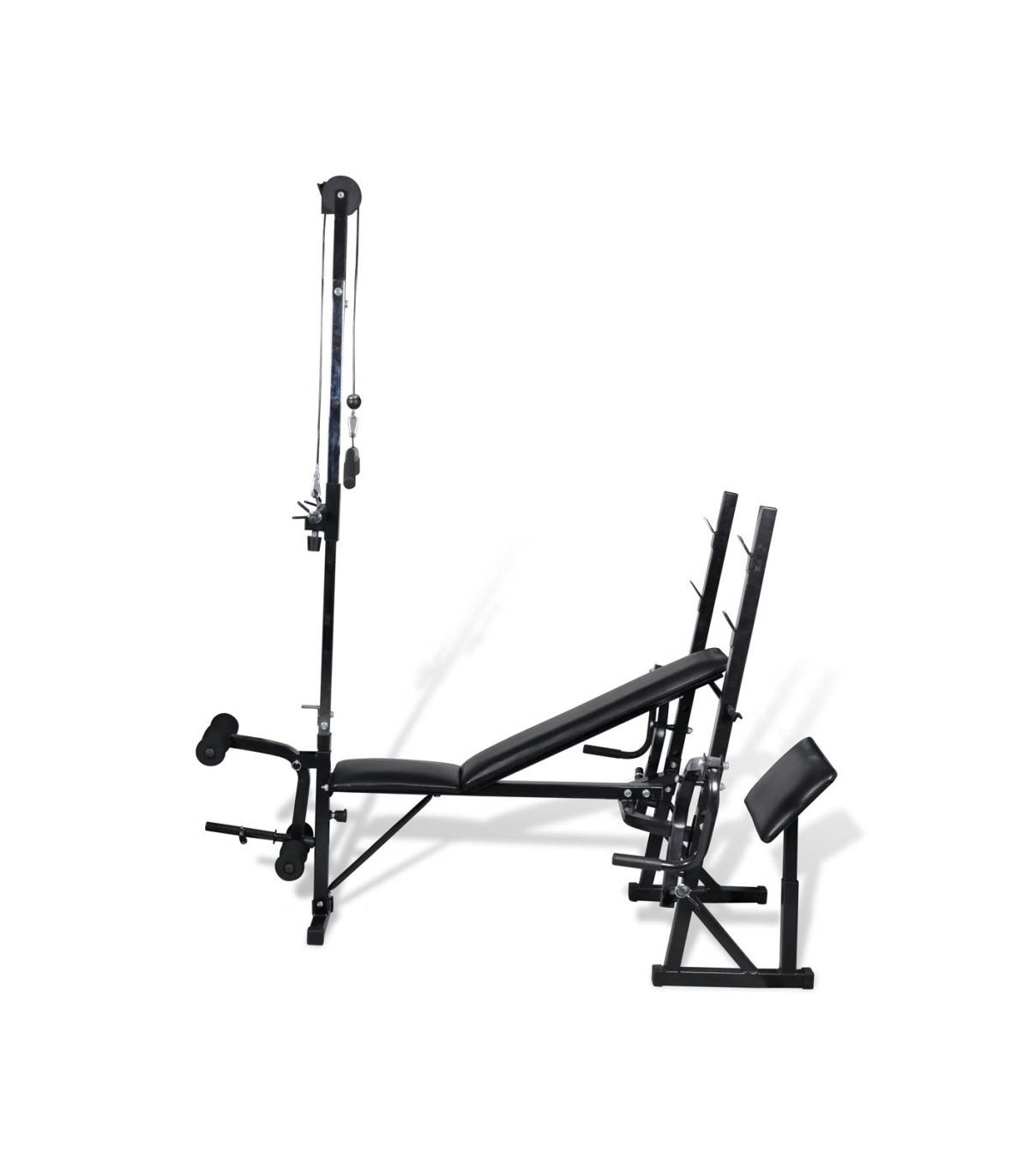 This adjustable fitness workout bench is a great choice for people like exercising. From now on, you can work out at the convenience of your own home, and save the trip and money to a gym!This workout bench actually provides a wide range of workout exercises to you. The backrest would strengthen your back muscles. Thanks to the curl and butterfly station, shoulders and arms could be exercised, while the leg-curl would train your thighs and legs. This wide range of workout combinations and exercises allow for an effective, total body workout, while the range of setting options enable the workout to be adapted to suit your specific need. The sturdy steel construction of the bench ensures your safety during the exercise process, allowing you to focus entirely on your workout. And the durable cotton-padded cushion will offer you a lot workout comfort.