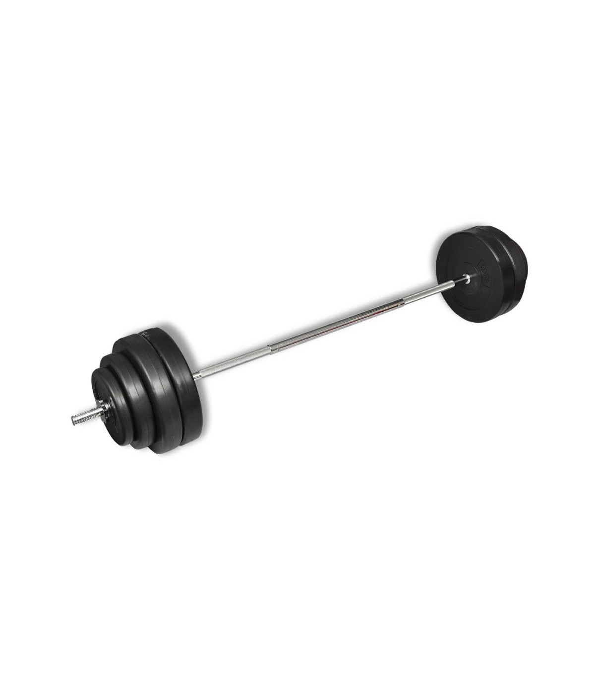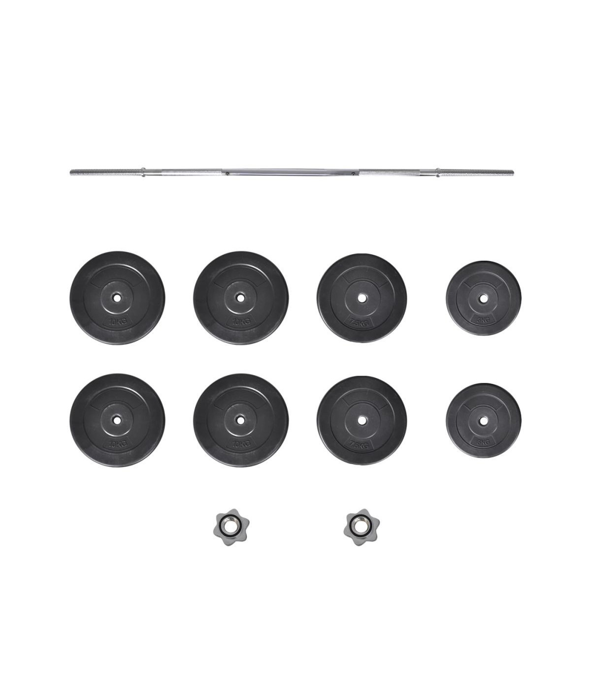 This straight dumbbell bar is great for home or personal training centers. This complete set of barbells are durable and safe. The length of the straight bar is 165 cm. Therefore you can also use it in combination with our other dumbbell sets. A suitable combination is easily made with the 8 different weights, 4 x 10 kg, 2 x 5 kg and 2 x 2 kg. The star shaped screw collars ensure the weights stay in place. The bar grip handles have a special structure for optimal grip during exercise. The weights have a plastic casing which reduces the noise made during exercising.