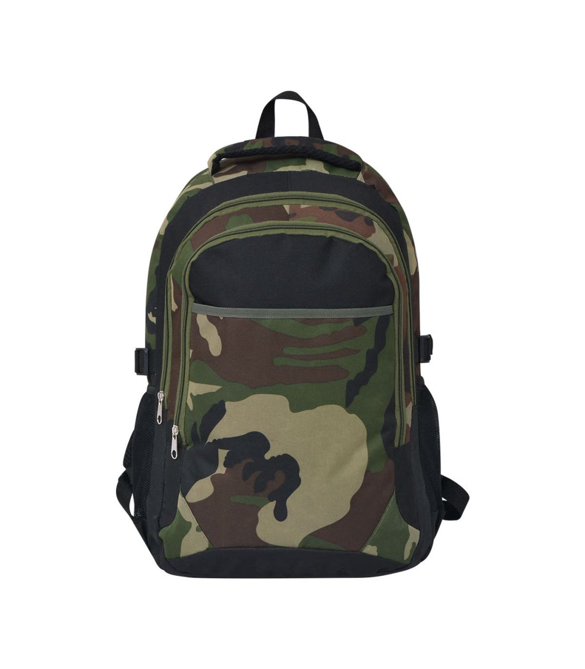 Our comfortable and practical school backpack is ideal for your books, laptops and stationery. Made of high-quality coated 600D polyester, this backpack is durable and water repellent. The bag features 2 wide shoulder straps. It has a large capacity of 40 litres so you can pack everything you need in daily use. The 3 large compartments can be used to store your big items, and their zip closures make sure your belongings are kept safe. The front compartment with hook and loop closure and 2 mesh side pockets provide extra space for safely and conveniently storing the items you need close at hand, such as tissues, wallets, umbrellas and so on.