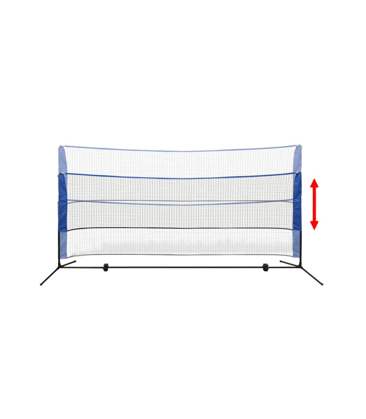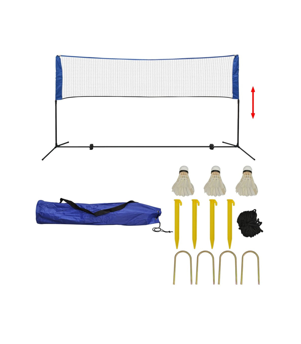 This recreational badminton net set will allow you to enjoy not one, but three classic ball games! This sturdy net and posts can be set up in minutes without the need for tools. This net is also easy to disassemble and neatly stores away in the included carrying bag together with all accessories. The mesh net is double stitched for sturdiness. The height-adjustable frame is constructed from durable yet lightweight steel tubing for easy transport. This set is suitable for badminton, volleyball, tennis, and other ball games that require a net. Delivery includes: 1 badminton net and frame set, 3 shuttlecocks, 4 iron ground stakes, 4 plastic ground stakes, 2 PP guy ropes and 1 carrying bag.