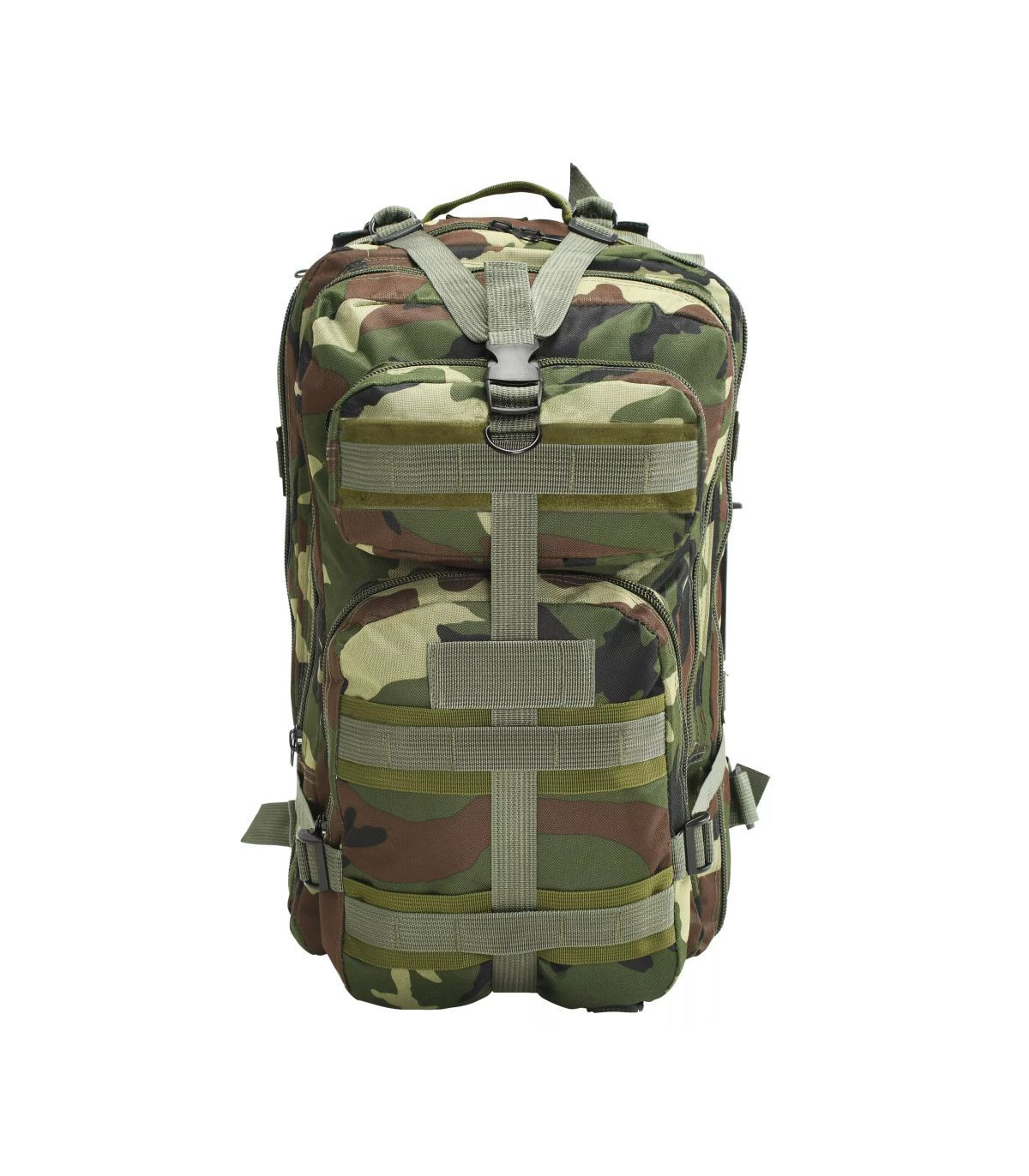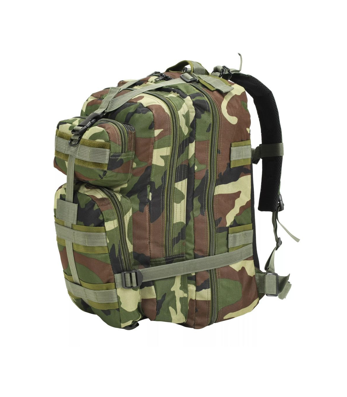 Our comfortable and practical army-style backpack is the ideal companion for military personnel, but also for scouts, hunters, hikers and outdoor enthusiasts. Our comfortable and practical army-style backpack is the ideal companion for travellers, but also for scouts, hunters, hikers and outdoor enthusiasts. Made of high-quality coated fabric, this backpack is tear resistant, weather resistant and hardwearing. The army-style backpack features two padded, adjustable shoulder straps, compression straps and an adjustable and removable chest belt and waist belt. The backpack has a large capacity of 50 litres so you can pack everything you need on your outdoor adventures. The large main compartment and the secondary compartment can be used to store your big items and two zipped front pockets provide extra space for safely and conveniently storing the items you need close at hand, such as knives, glasses, lamps, etc. The backpack has a breathable mesh backing for added comfort.