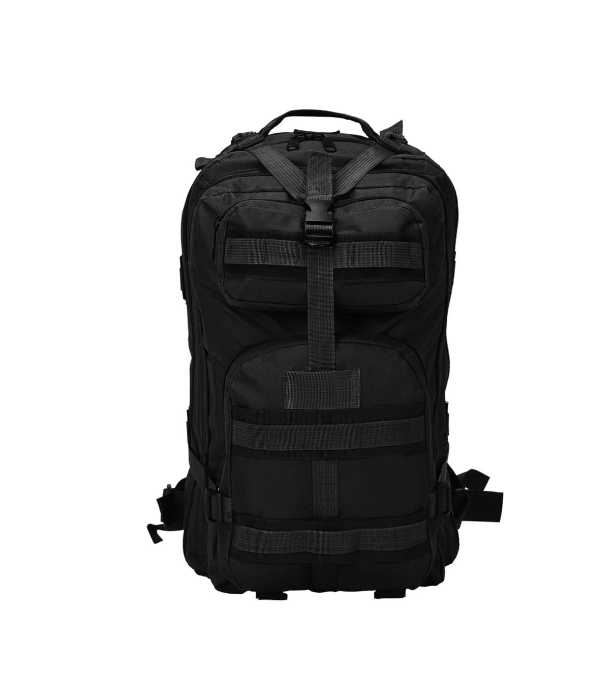 Our comfortable and practical army-style backpack is the ideal companion for military personnel, but also for scouts, hunters, hikers and outdoor enthusiasts. Our comfortable and practical army-style backpack is the ideal companion for travellers, but also for scouts, hunters, hikers and outdoor enthusiasts. Made of high-quality coated fabric, this backpack is tear resistant, weather resistant and hardwearing. The army-style backpack features two padded, adjustable shoulder straps, compression straps and an adjustable and removable chest belt and waist belt. The backpack has a large capacity of 50 litres so you can pack everything you need on your outdoor adventures. The large main compartment and the secondary compartment can be used to store your big items and two zipped front pockets provide extra space for safely and conveniently storing the items you need close at hand, such as knives, glasses, lamps, etc. The backpack has a breathable mesh backing for added comfort.