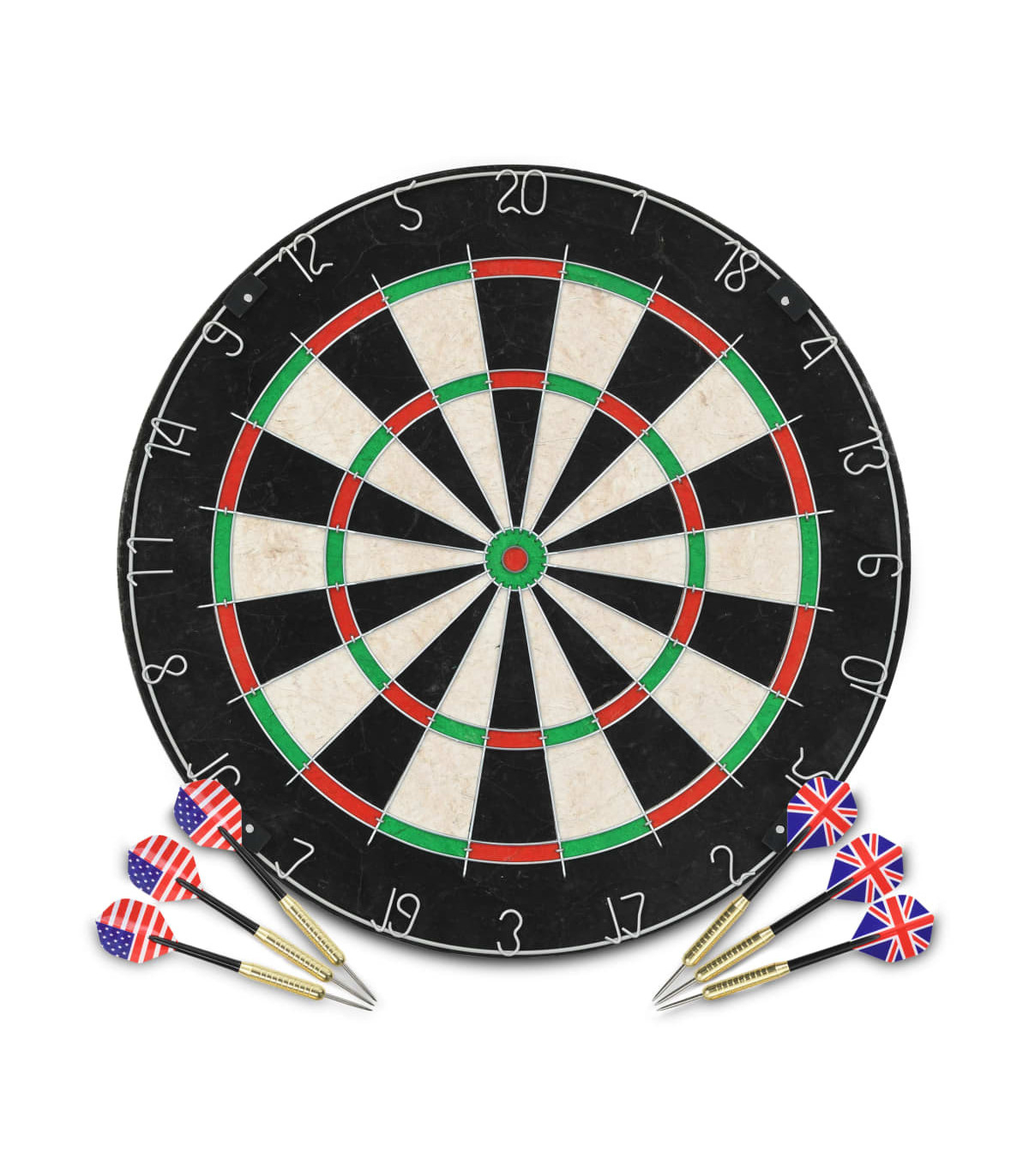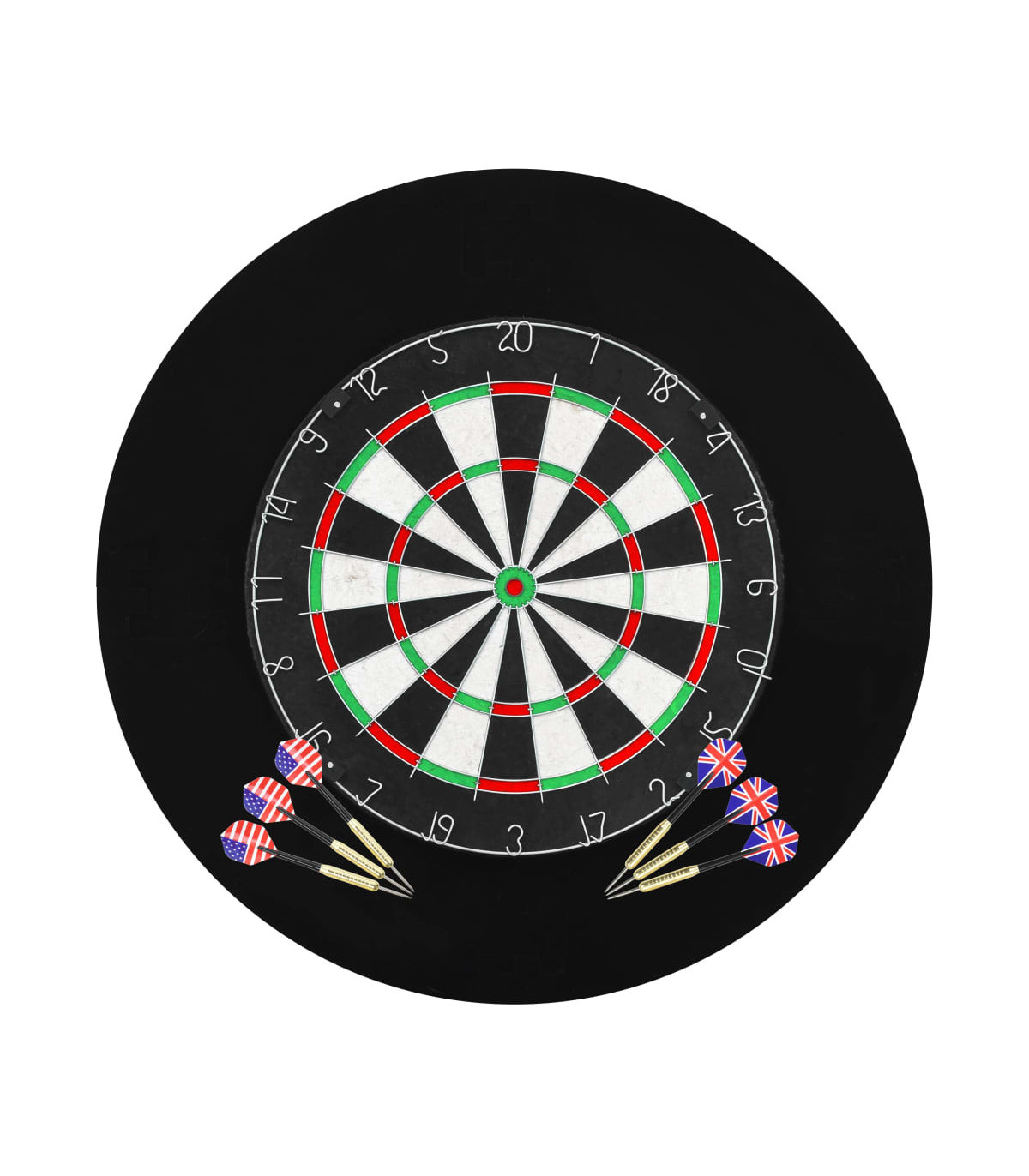 Enjoy your dart games with our high-quality dart set! The dart set includes 1 dartboard, 6 steel-tip darts and 1 dartboard surround ring. The dartboard is made of high-quality sisal. It has special wires to reduce bounce-outs and improve your scoring potential. The dartboard can be easily mounted with the included accessories. The sisal dartboard is a perfect match for the included darts with hardened steel tips. The darts have a nonslip barrel that offers a good grip and contributes to a well-balanced flight. The included surround will protect your wall from darts that miss the board and also prevent the darts from being damaged. As it is made of high-density material, it is very durable. It will fit tightly around the dartboard. The surround consists of 2 pieces and can be easily taken apart and stored.