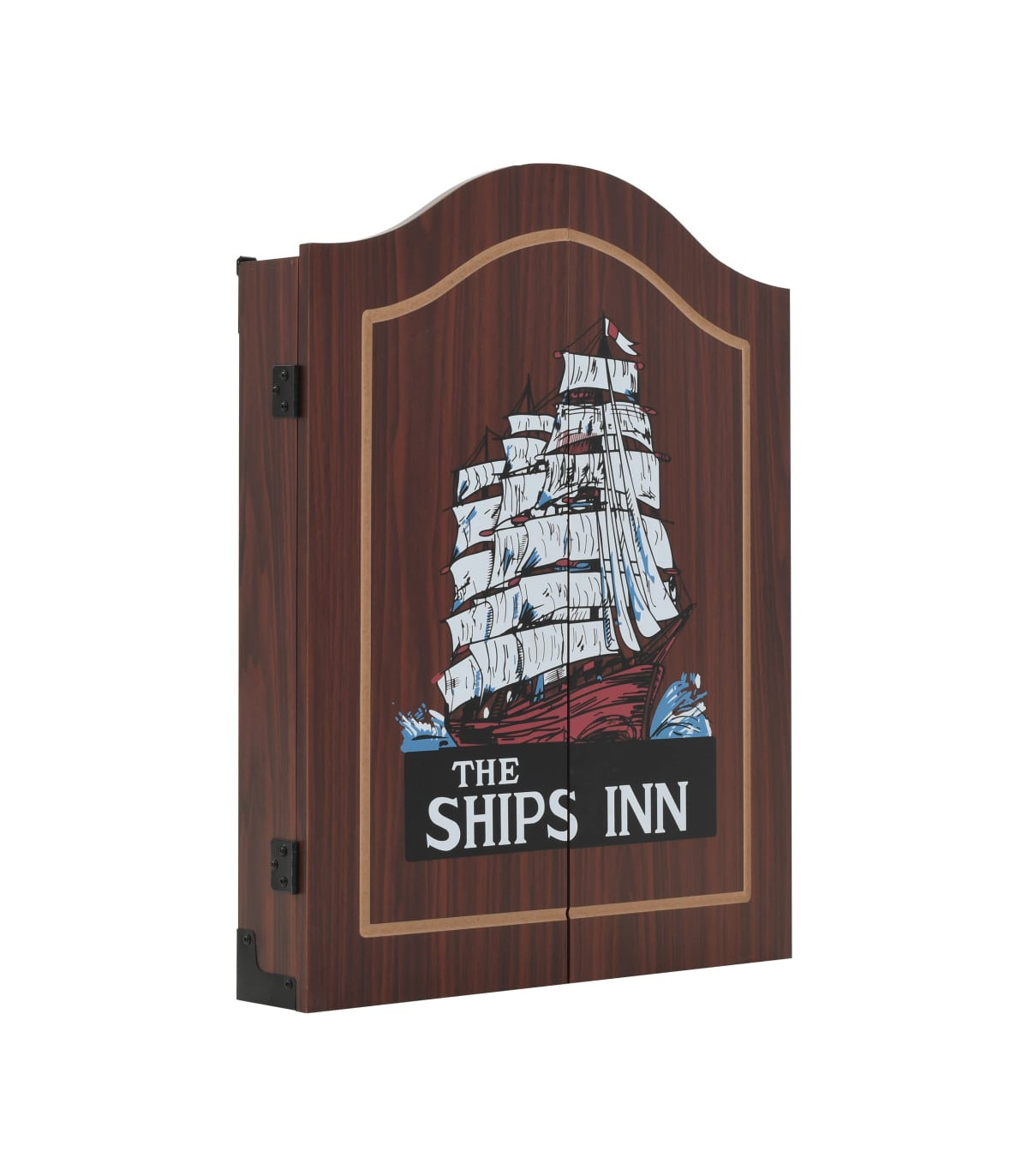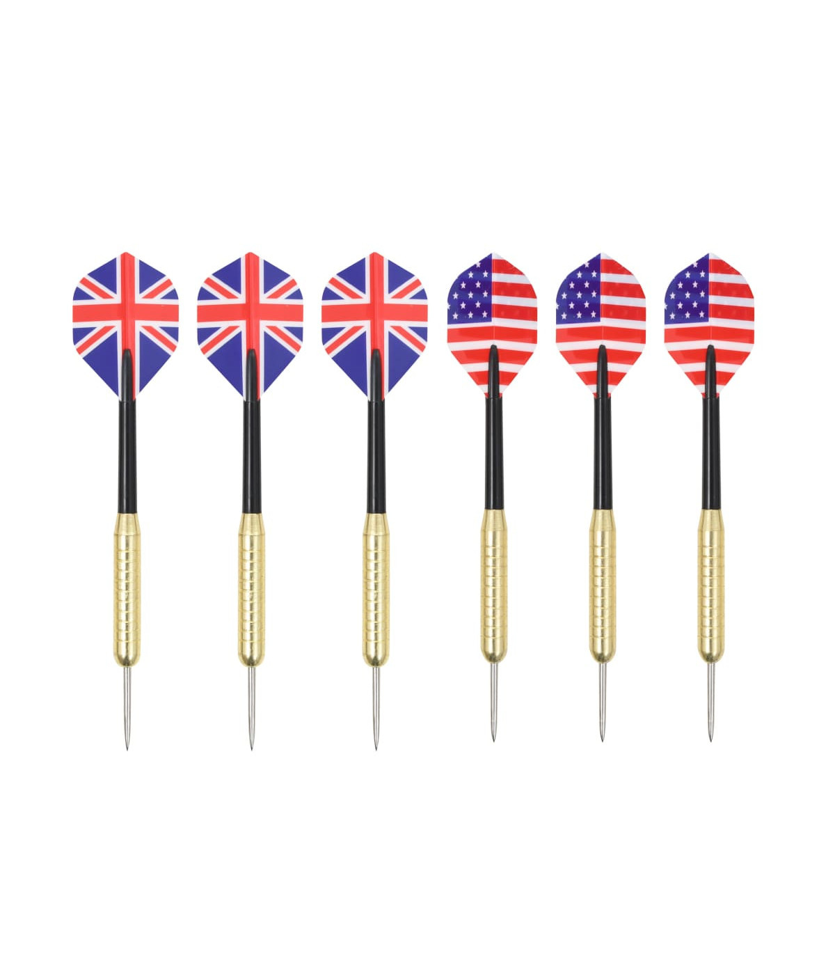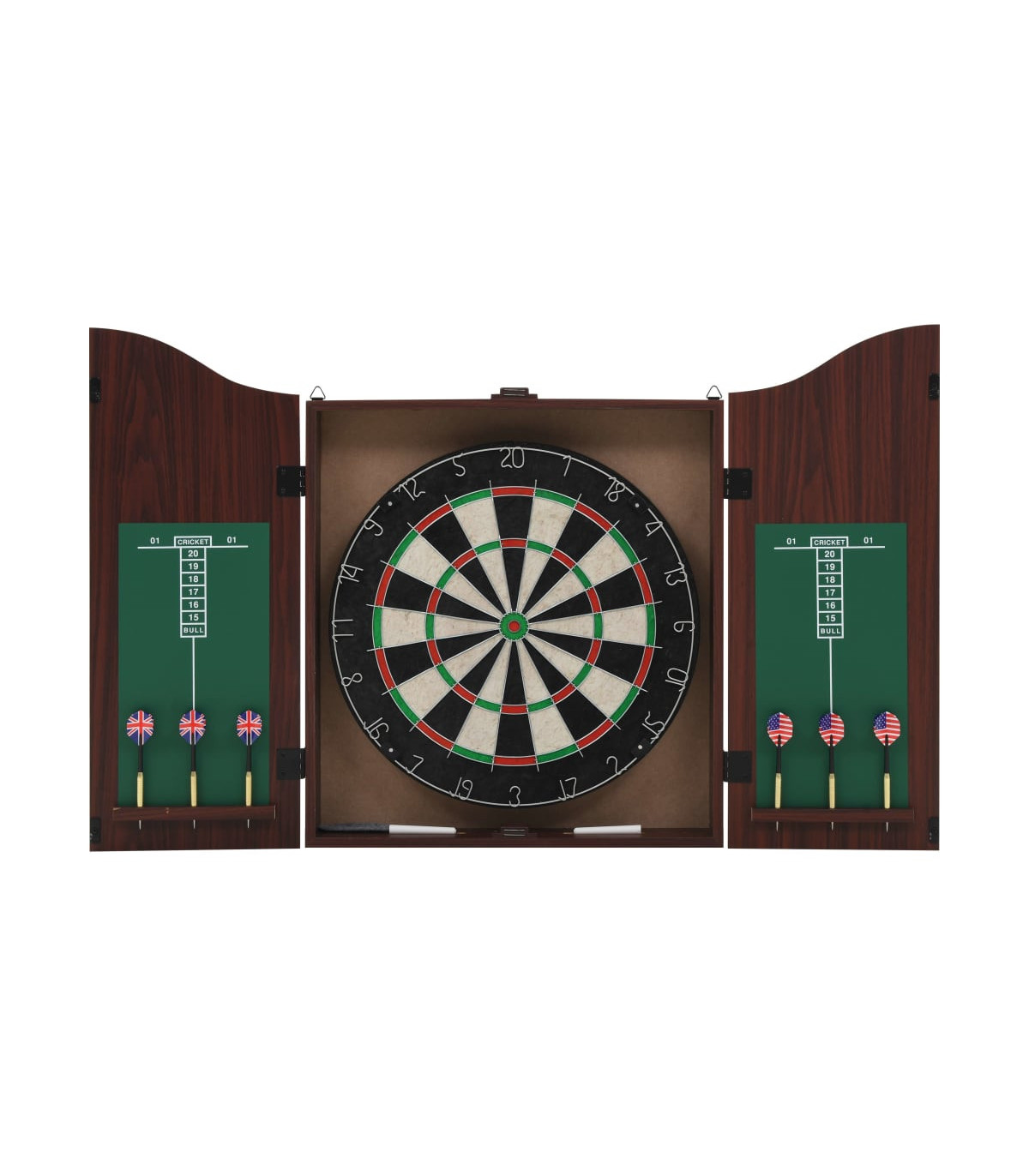 Our dart set, including a dart cabinet, a sisal dartboard and 6 steel-tip darts, is an excellent choice for both professionals and beginners. The MDF dart cabinet with 2 hinged doors has an attractive design and will suit any interior decor. It provides space for keeping the darts safely, and has integrated chalkboards on which you can record your game. The dartboard is made of high-quality sisal. It has special wires to reduce bounce-outs and improve your scoring potential. The dartboard can be easily mounted with the included accessories. The sisal dartboard is a perfect match for the included darts with hardened steel tips. The darts have a nonslip barrel that offers a good grip and contributes to a well-balanced flight.