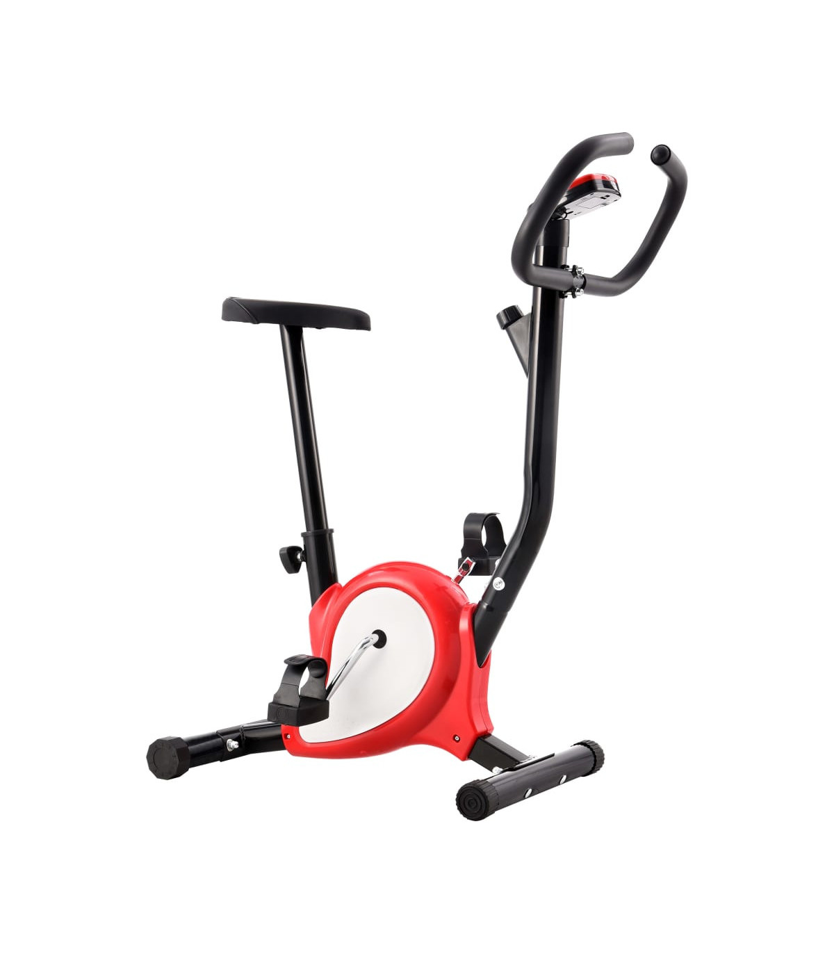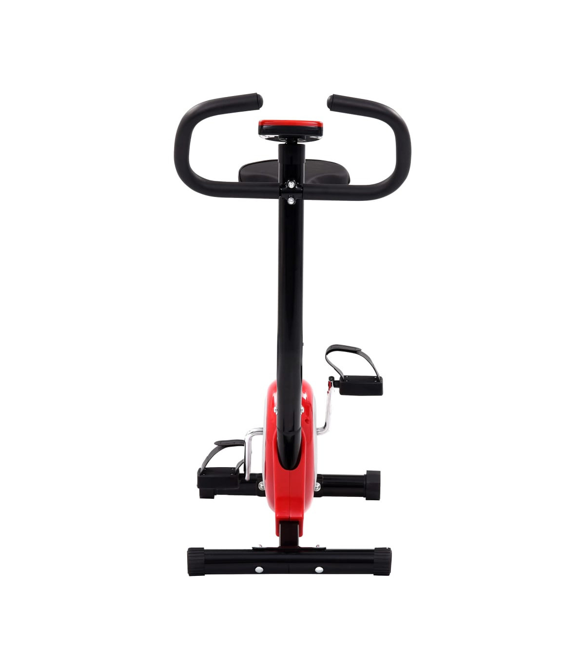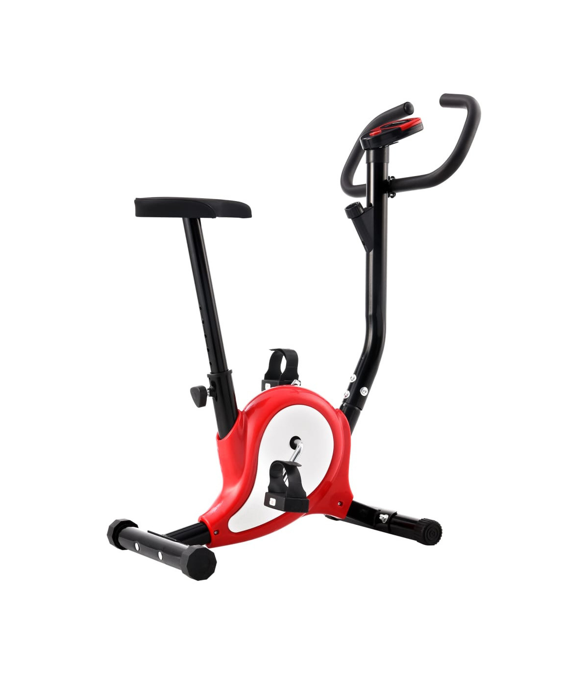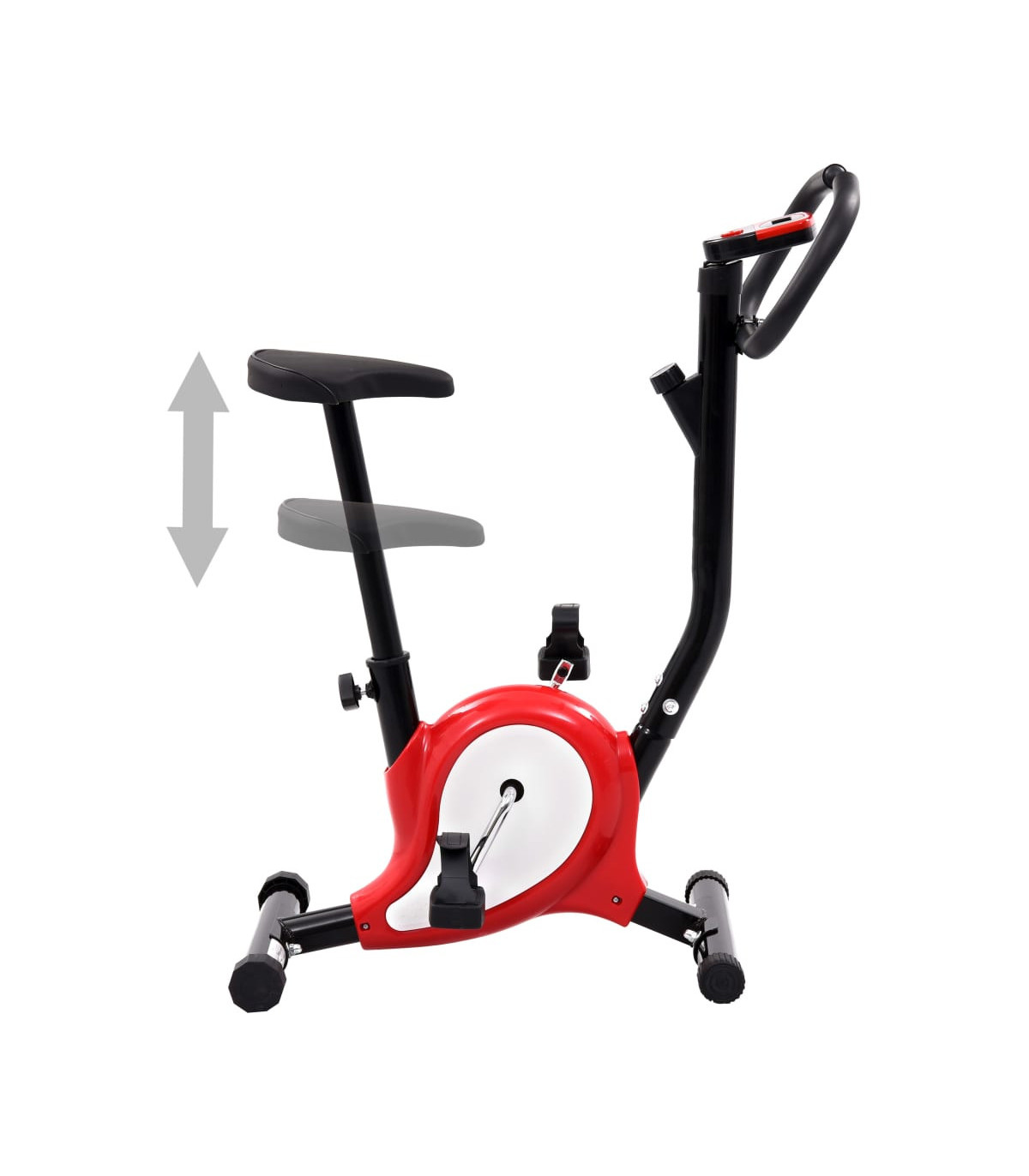 This robust exercise bike will be a great choice for exercising at home. Its electronic console indicates time, speed, distance, calories and odometer during the workout. Durable and robust: The exercise bike is made of durable metal. The sturdy metal construction of the fitness bike ensures your safety during the exercises.Convenient monitor: You can monitor your performance on the LCD display which shows information about the elapsed time, current speed, distance, calories burned and odometer.Ergonomic design: The fitness bike is ergonomically designed. The saddle can be adjusted vertically to fit your height.Anti-slip pedals: The anti-slip pedals enable an optimal transfer of power from your feet to the pedals. The pedal straps will keep your feet from accidentally slipping off the pedals. Good to know:This is a fitness bike for beginners. It has a simple resistance mechanism without flywheel.This bike is not suitable for tall people, when purchasing please check the size carefully.