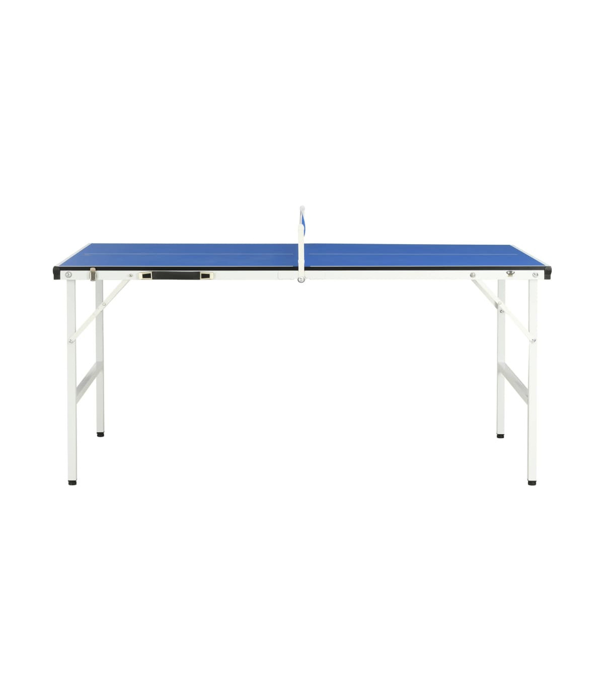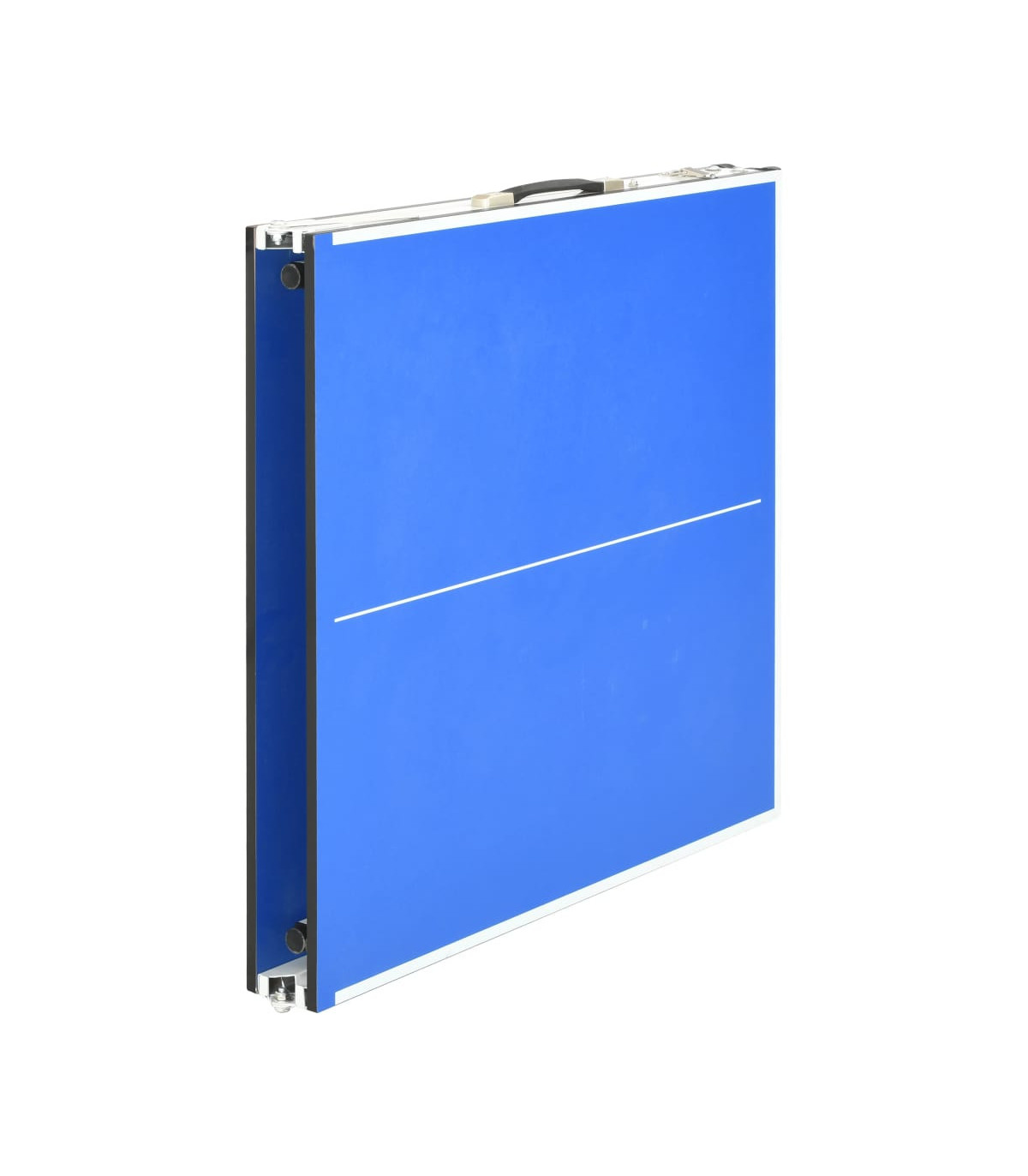 This mobile tennis table is ideal for any ping pong lover tight on space, which can perfectly fit almost any room of the house or even outdoors! It provides a great way to entertain your family and friends in leisure time. Made of high quality MDF with steel support and legs, this compact tennis table is exceedingly sturdy and stable for long lasting use. The game table has a secure stand and allows you full enjoyment while playing a friendly match of ping pong or having a tournament. It comes complete with net and posts for playing. This indoor gaming table is easy to fold together and the built-in handle makes it easy to transport. No assembly is required.