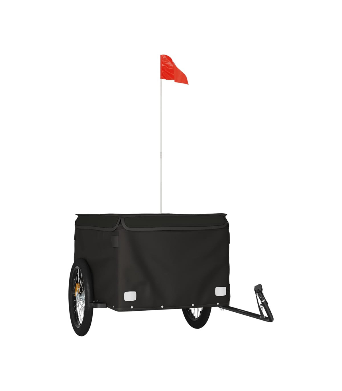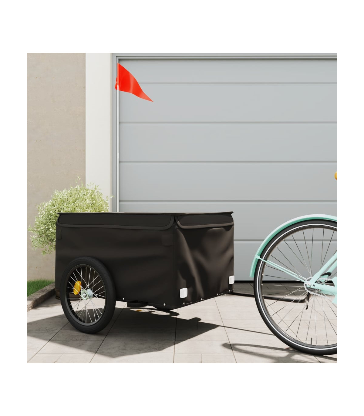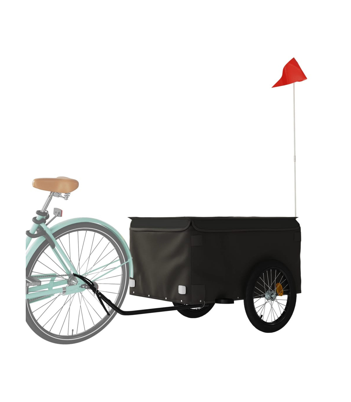 This versatile and sturdy bike trailer will be ideal for transporting heavy goods thanks to its maximum load capacity of 30 kg. Sturdy material: Iron is a strong and hard material. It's a solid favourite in industrial and furniture construction. Made of iron, this bicycle cargo trailer is very sturdy and durable.Practical design: This bike cart with a maximum load capacity of 45 kg, is perfect for hauling heavy goods like luggage, plants, tools or groceries.Considerate design: The bike trailer has a tow bar that makes it easy to connect it to a bicycle. At the same time, a safety flag is included for extra visibility.