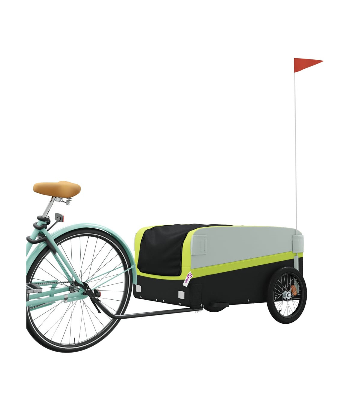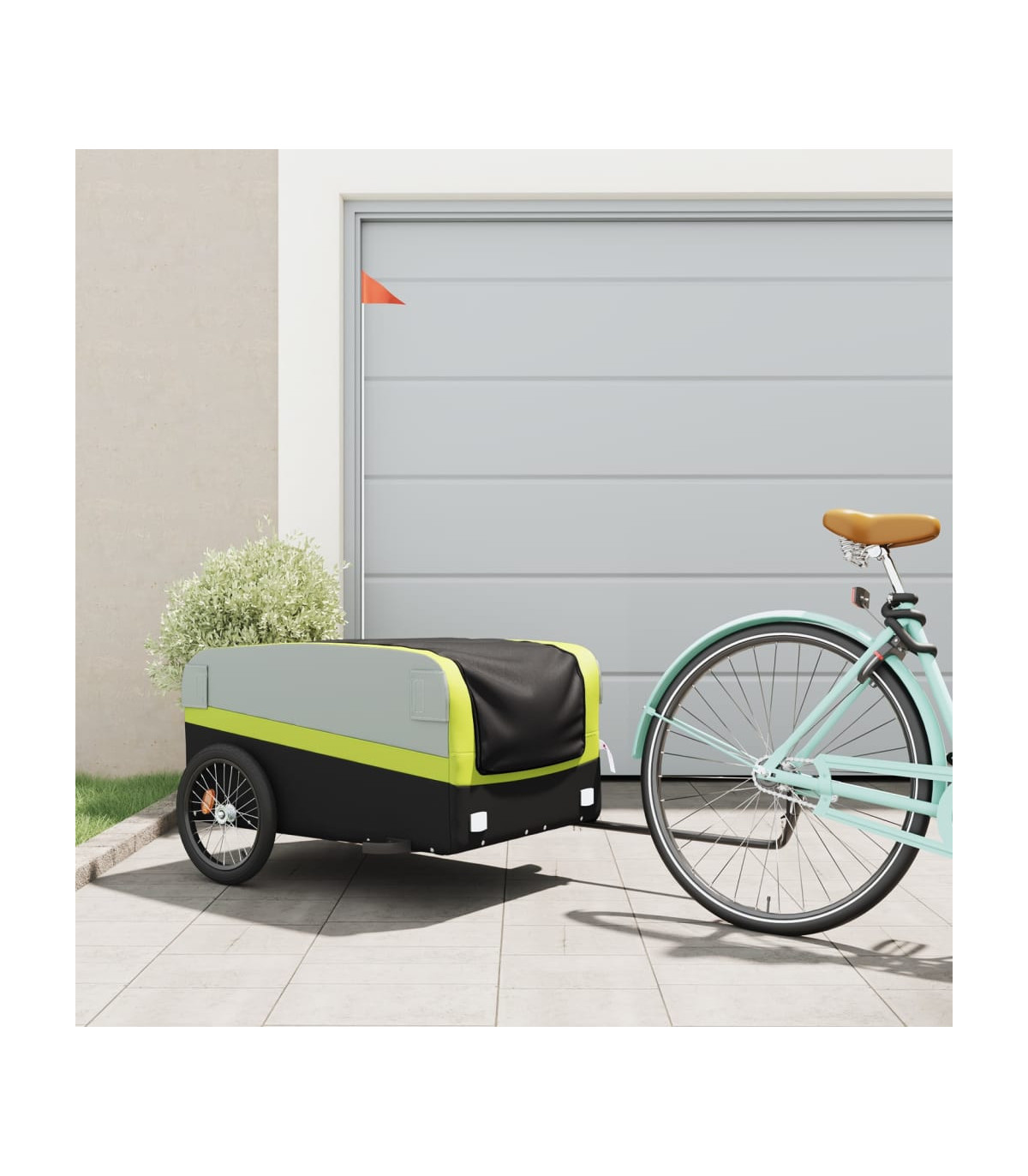This versatile and sturdy bike trailer will be ideal for transporting heavy goods thanks to its maximum load capacity of 30 kg. Sturdy material: Iron is a strong and hard material. It's a solid favourite in industrial and furniture construction. Made of iron, this bicycle cargo trailer is very sturdy and durable.Practical design: This bike cart with a maximum load capacity of 30 kg, is perfect for hauling heavy goods like luggage, plants, tools or groceries.Considerate design: The bike trailer has a tow bar that makes it easy to connect it to a bicycle. At the same time, a safety flag is included for extra visibility.