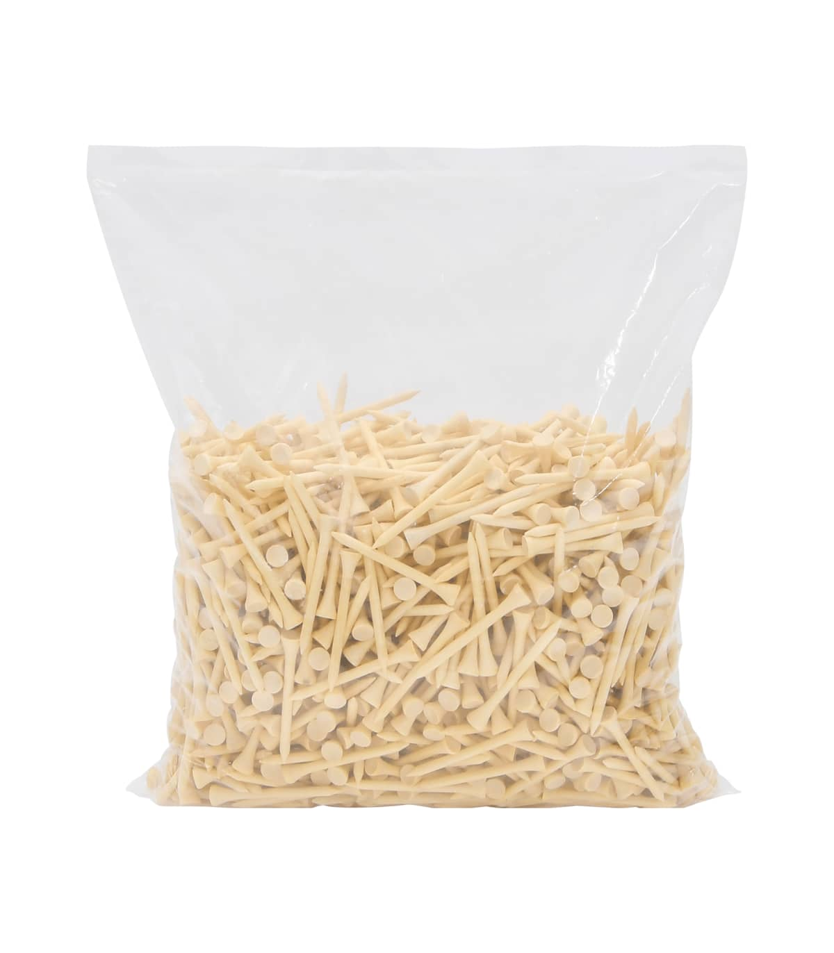 These bamboo golf tees are a must-have for any golfer looking to improve their game and to always stay prepared on the golf course. Durable bamboo: Crafted from durable bamboo, these golf tees offer a smooth and sturdy construction, ensuring long-lasting performance without easily wearing or deforming.Curved top: Featuring a curved top design, these tees provide stable support for the ball, effectively reducing friction and side spin for more accurate drives.Standard size: The golf ball tee measures 54 mm in height and 11 mm in diameter, conforming with regular sizes and suitable for all golf clubs.Value pack: With 1000 pieces per pack, it will be a long time before you run out. You will always have a golf tee in hand when you need it.Wide applications: The bamboo golf tees can be used on sports fields, PE classes, golf clubs, golf courses, gyms, team sports competitions, sports meetings, and more, suitable for both indoor and outdoor occasions.