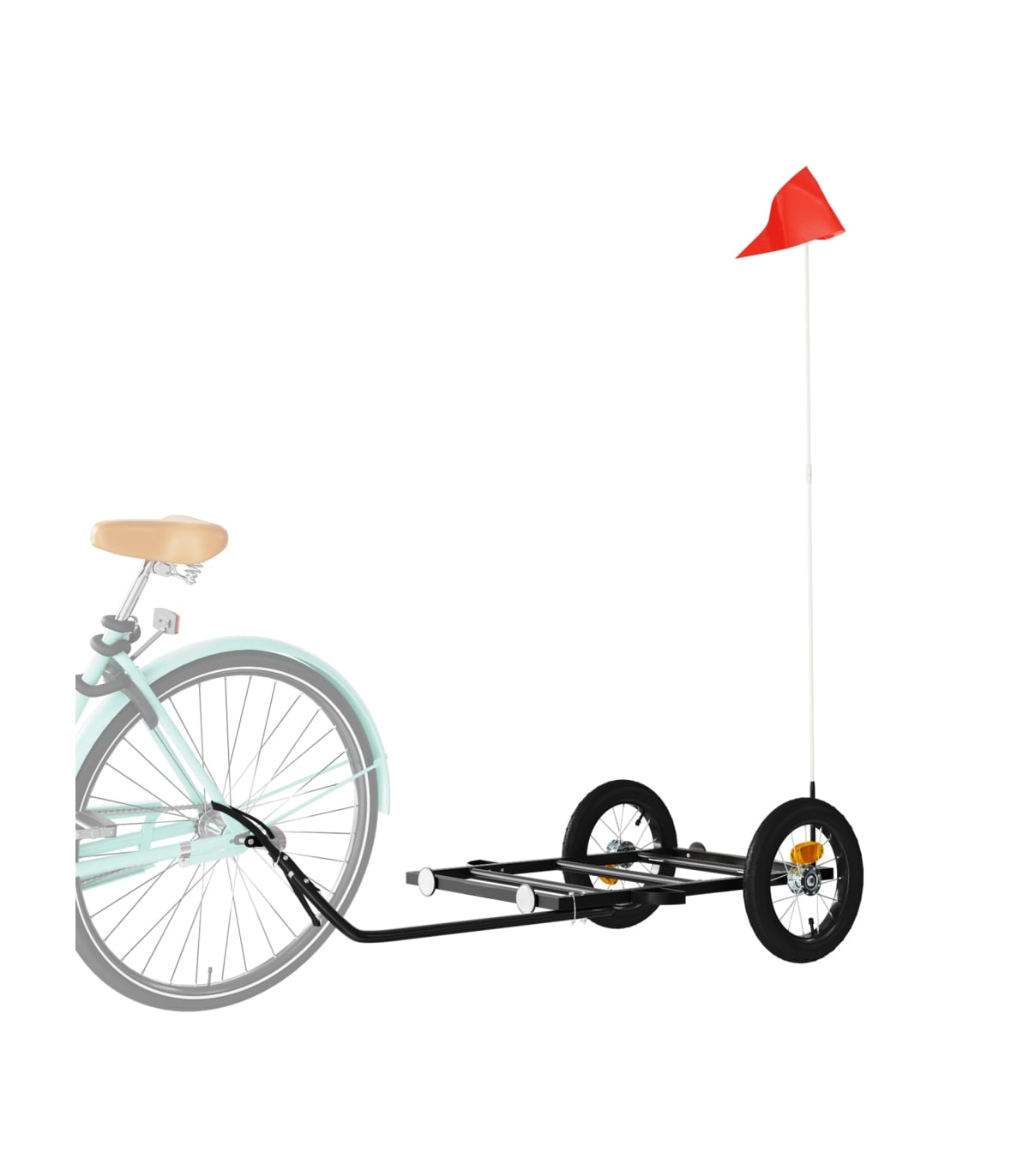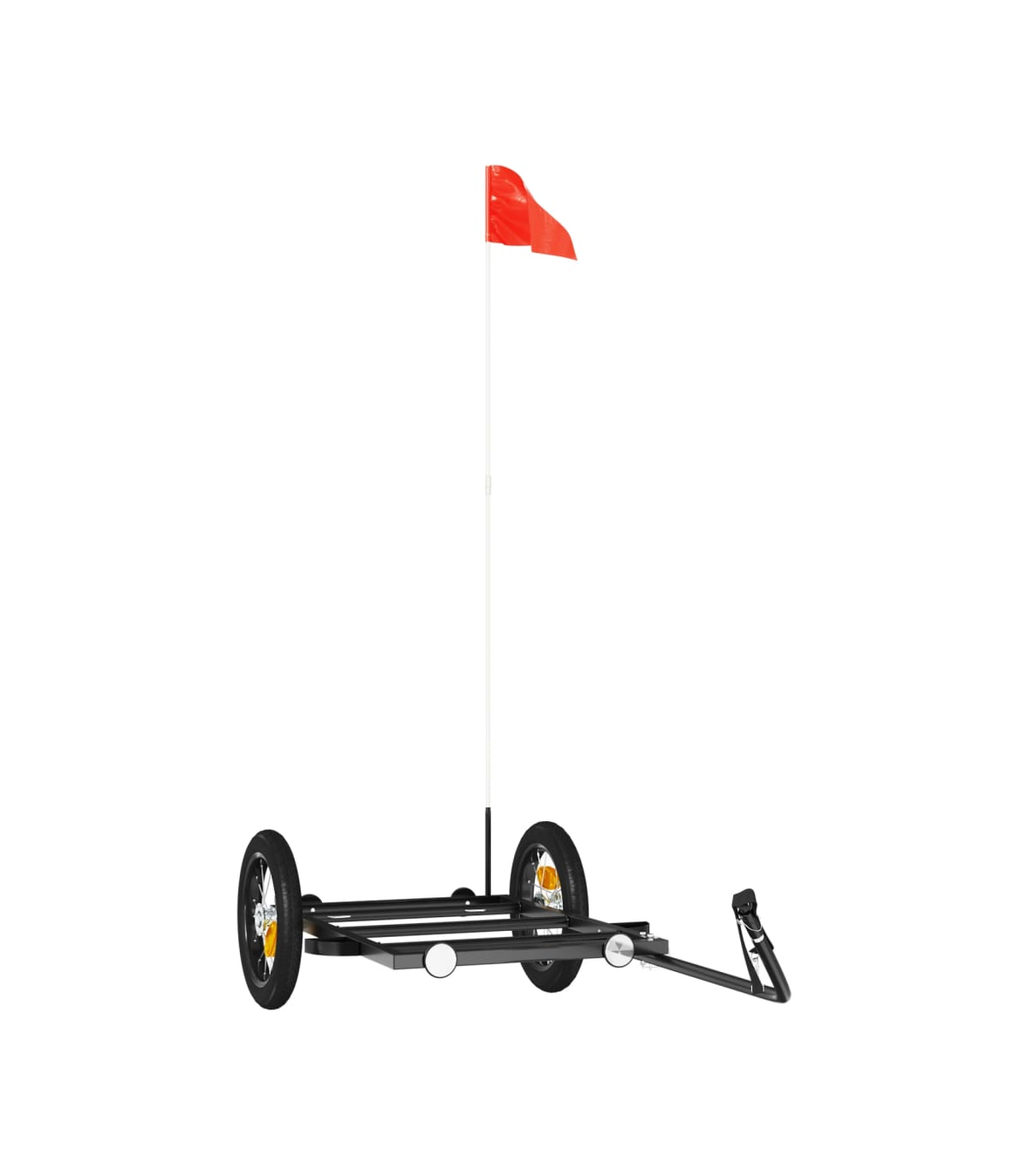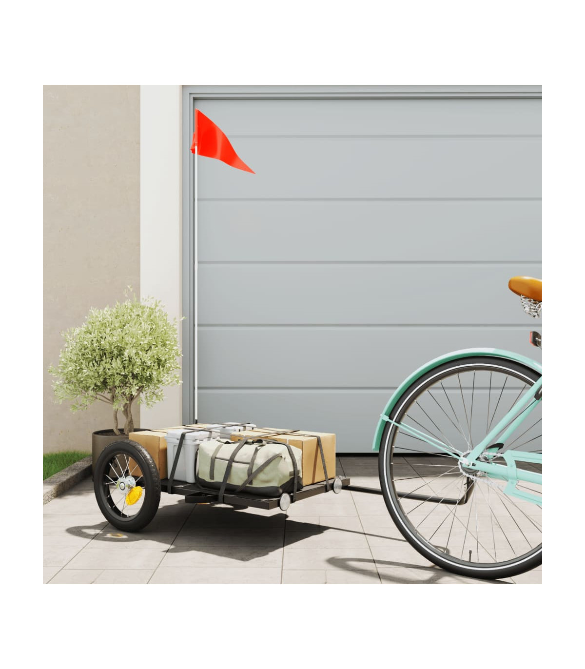 This versatile and sturdy bike trailer will be ideal for transporting heavy goods thanks to its maximum load capacity of 30 kg. Sturdy material: Iron is a strong and hard material. It's a solid favourite in industrial and furniture construction. Made of iron, this bicycle cargo trailer is very sturdy and durable.Practical design: This bike cart with a maximum load capacity of 30 kg, is perfect for hauling heavy goods like luggage, plants, tools or groceries.Considerate design: The bike trailer has a tow bar that makes it easy to connect it to a bicycle. At the same time, a safety flag is included for extra visibility.