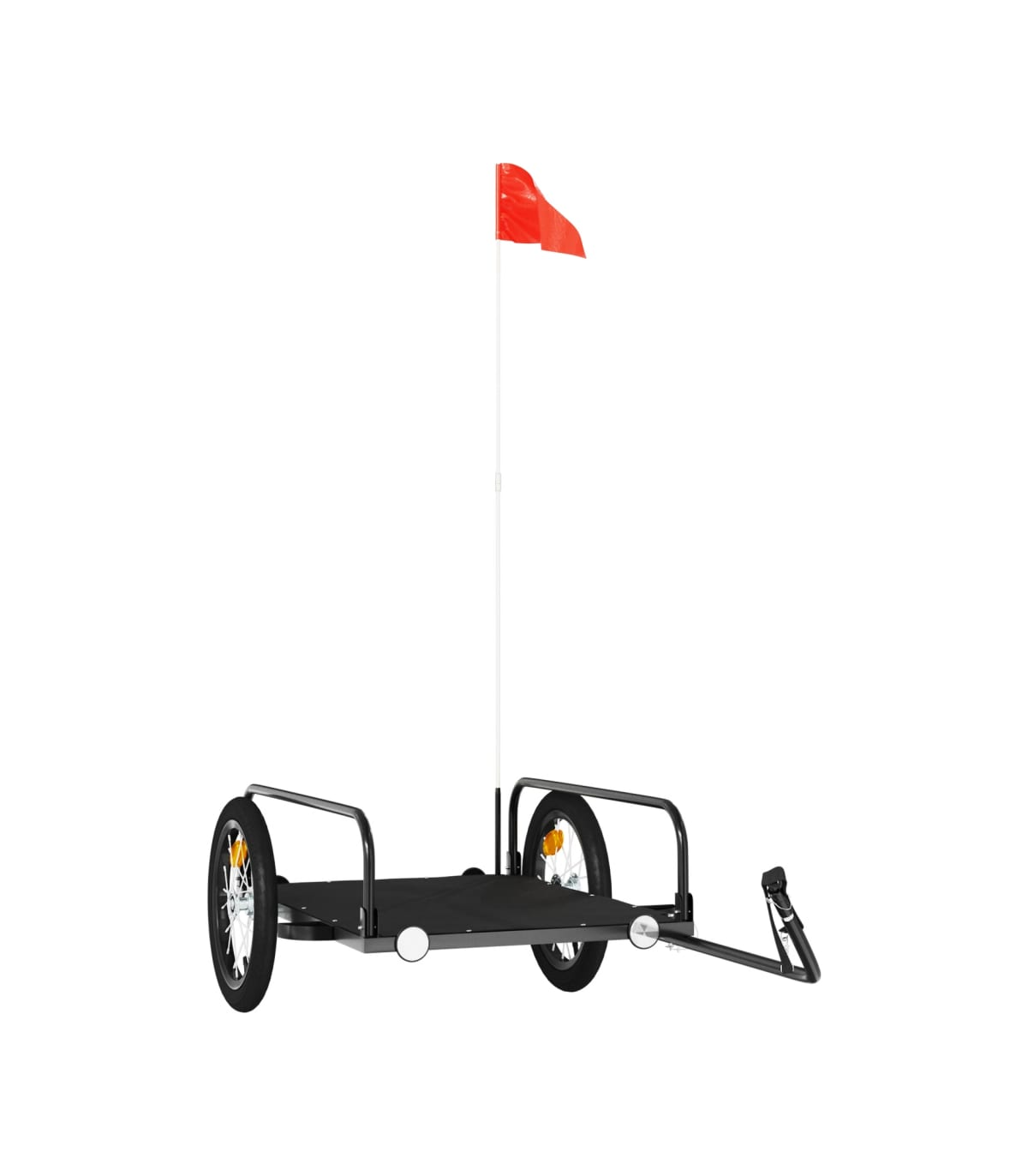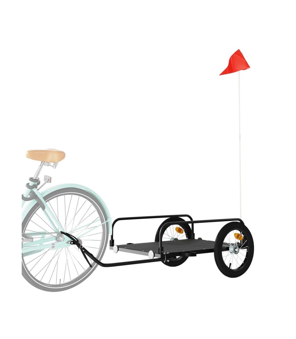 This versatile and sturdy bike trailer will be ideal for transporting heavy goods thanks to its maximum load capacity of 30 kg. Sturdy material: Iron is a strong and hard material. It's a solid favourite in industrial and furniture construction. Made of iron, this bicycle cargo trailer is very sturdy and durable.Practical design: This bike cart with a maximum load capacity of 30 kg, is perfect for hauling heavy goods like luggage, plants, tools or groceries.Considerate design: The bike trailer has a tow bar that makes it easy to connect it to a bicycle. At the same time, a safety flag is included for extra visibility.