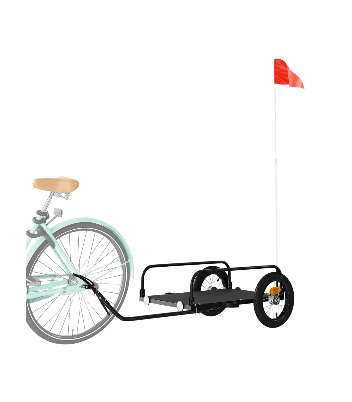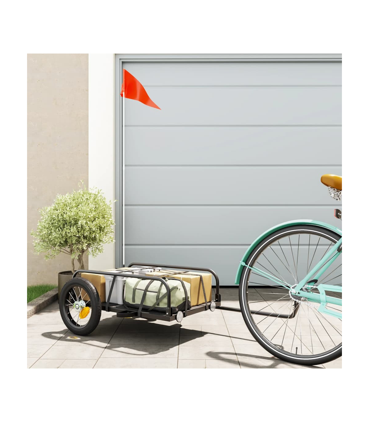 This versatile and sturdy bike trailer will be ideal for transporting heavy goods thanks to its maximum load capacity of 30 kg. Sturdy material: Iron is a strong and hard material. It's a solid favourite in industrial and furniture construction. Made of iron, this bicycle cargo trailer is very sturdy and durable.Practical design: This bike cart with a maximum load capacity of 30 kg, is perfect for hauling heavy goods like luggage, plants, tools or groceries.Considerate design: The bike trailer has a tow bar that makes it easy to connect it to a bicycle. At the same time, a safety flag is included for extra visibility.