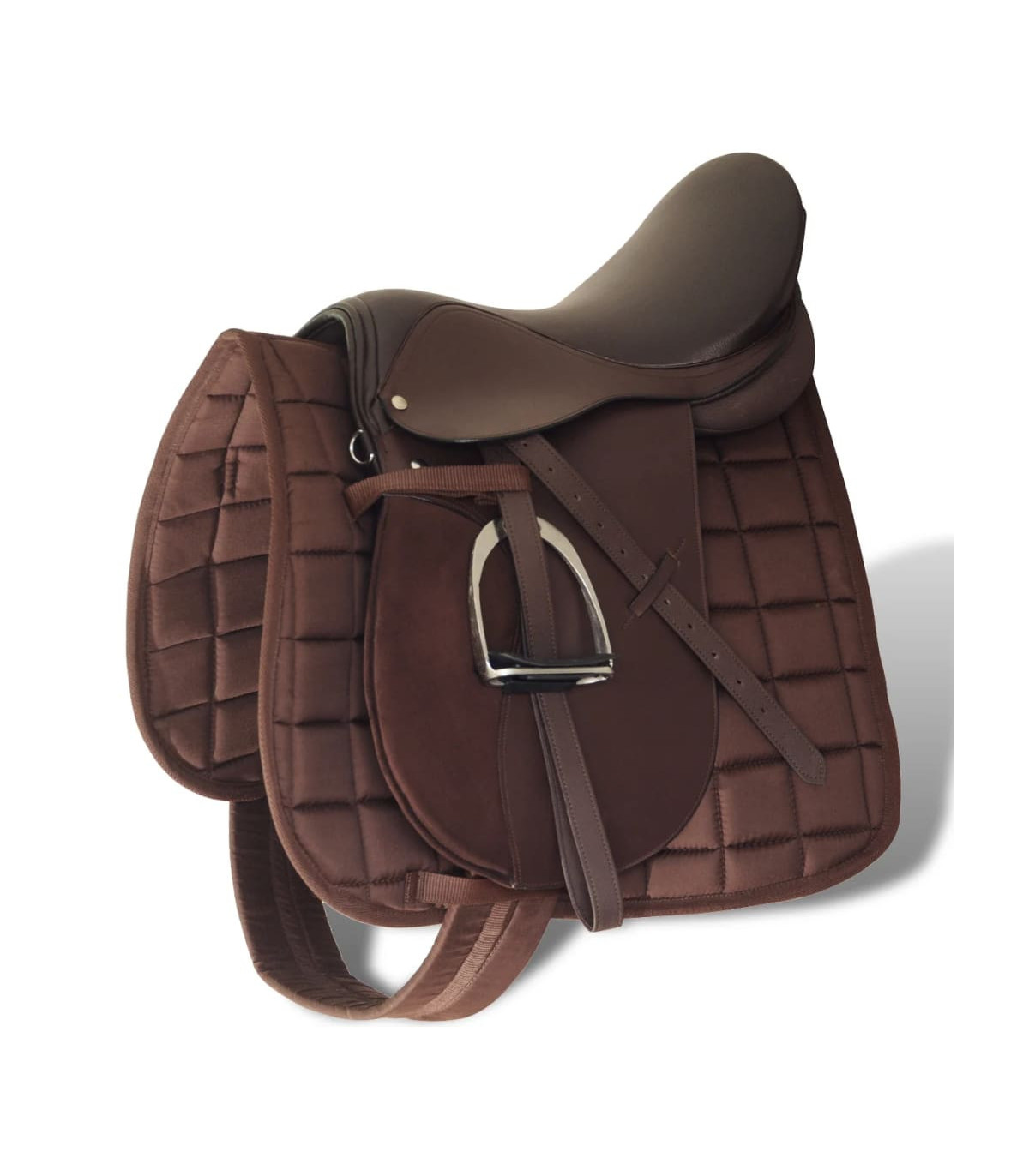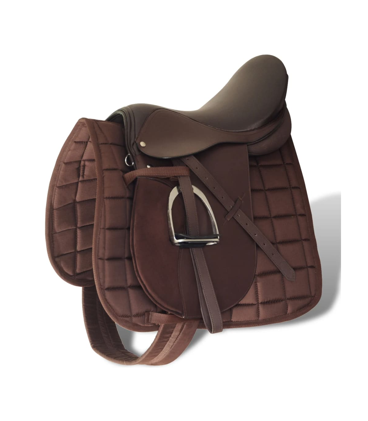 Horse Riding Saddle Set 16" Real Leather Brown 14 cm 5-in-1