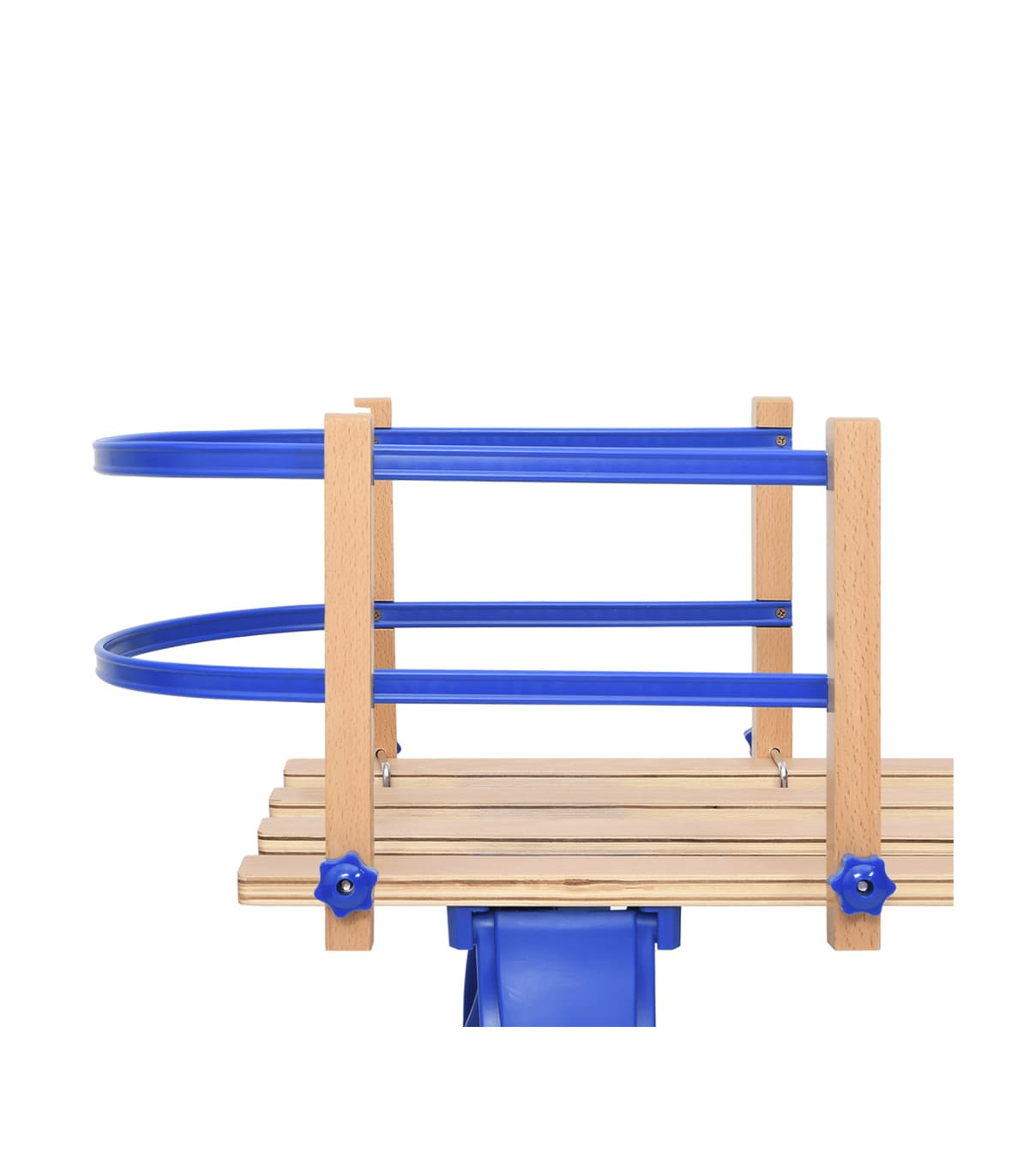 This practical backrest for sledge ensures safety and support while you are sitting on the sleigh for a winter adventure. Sturdy plywood: Plywood is a stable and impact-resistant material. It has an even texture without fibers showing and is resistant to warping and splitting.Double slatted design: The sledge backrest with 2 protective bars is great for kids who need extra support sitting.Eye-catching colour: The bright colour makes your sleigh eye-catching in the snow. Note:The delivery includes a backrest only. The sledge is not included. You can search our shop for the matching sledge.