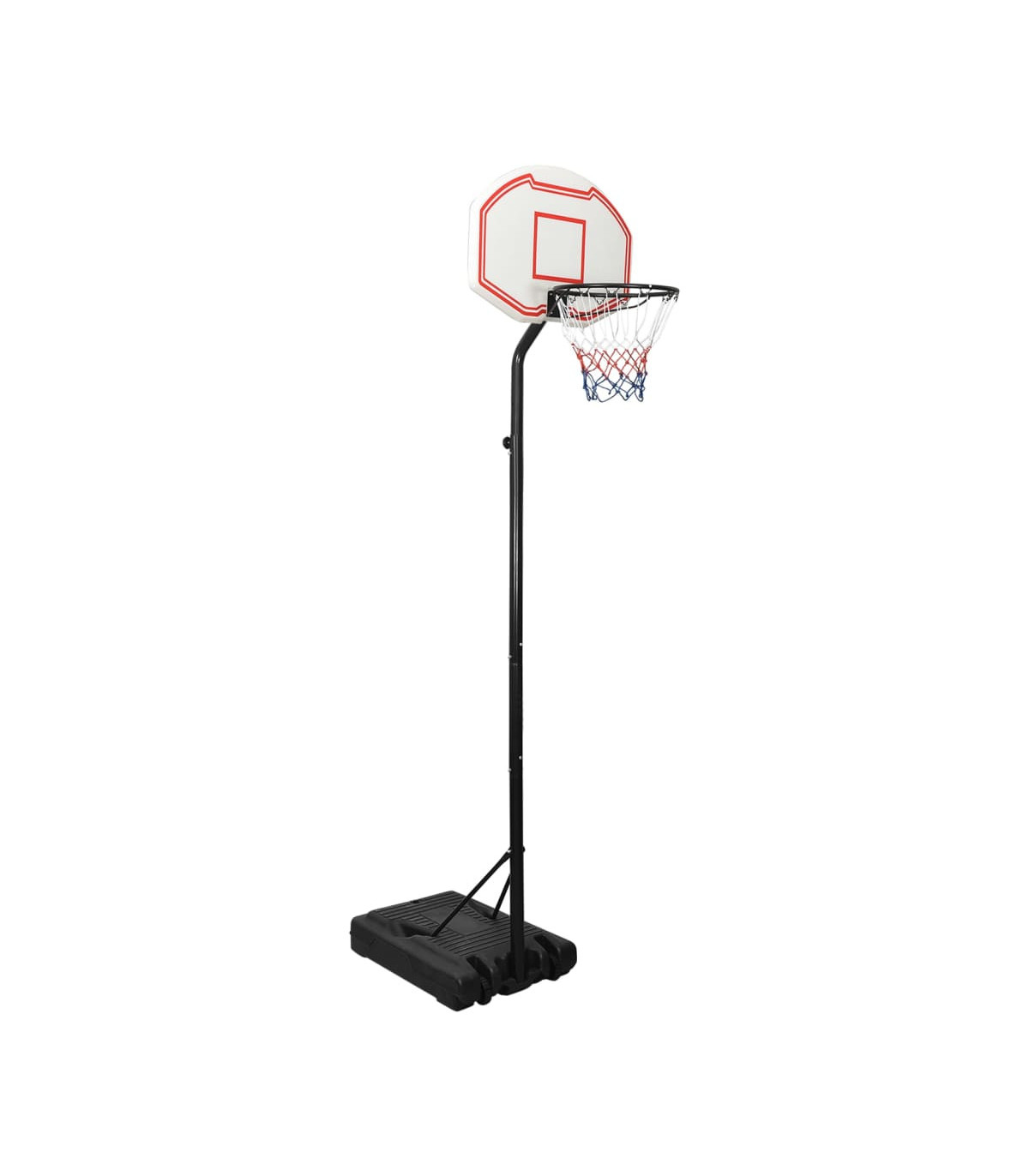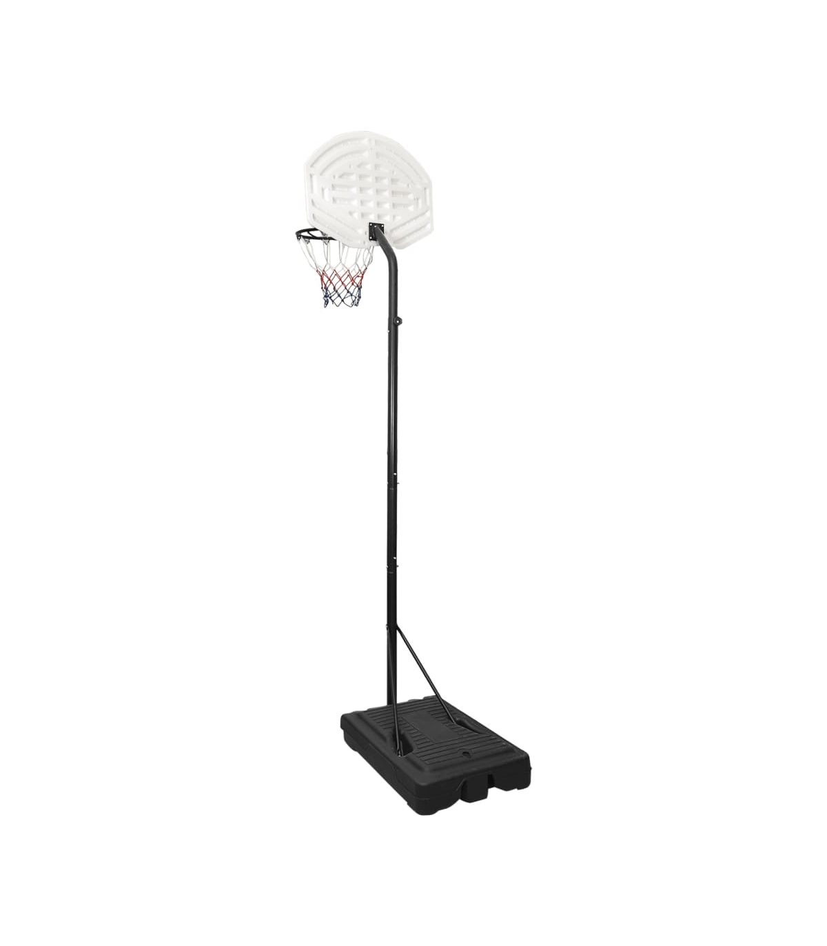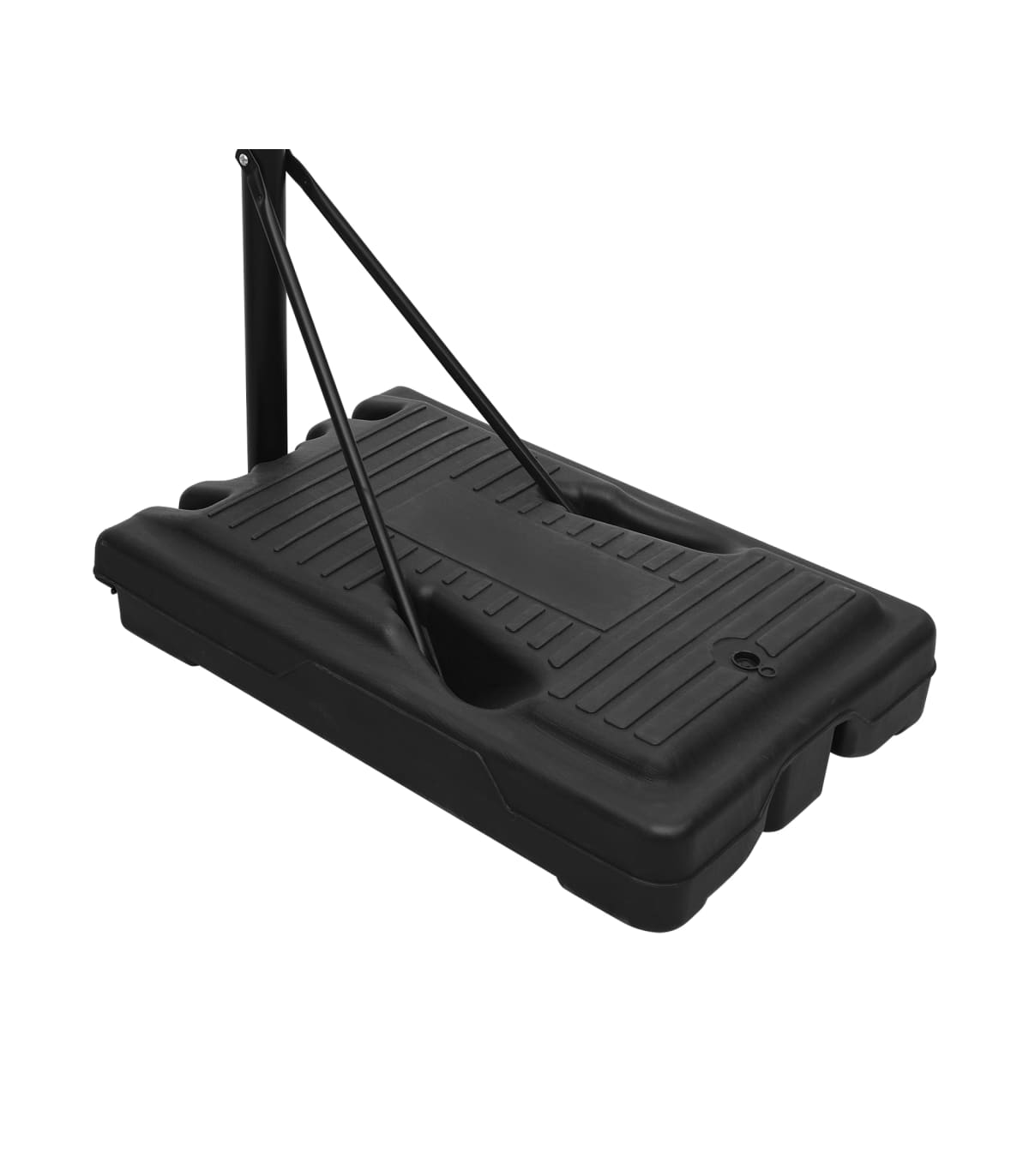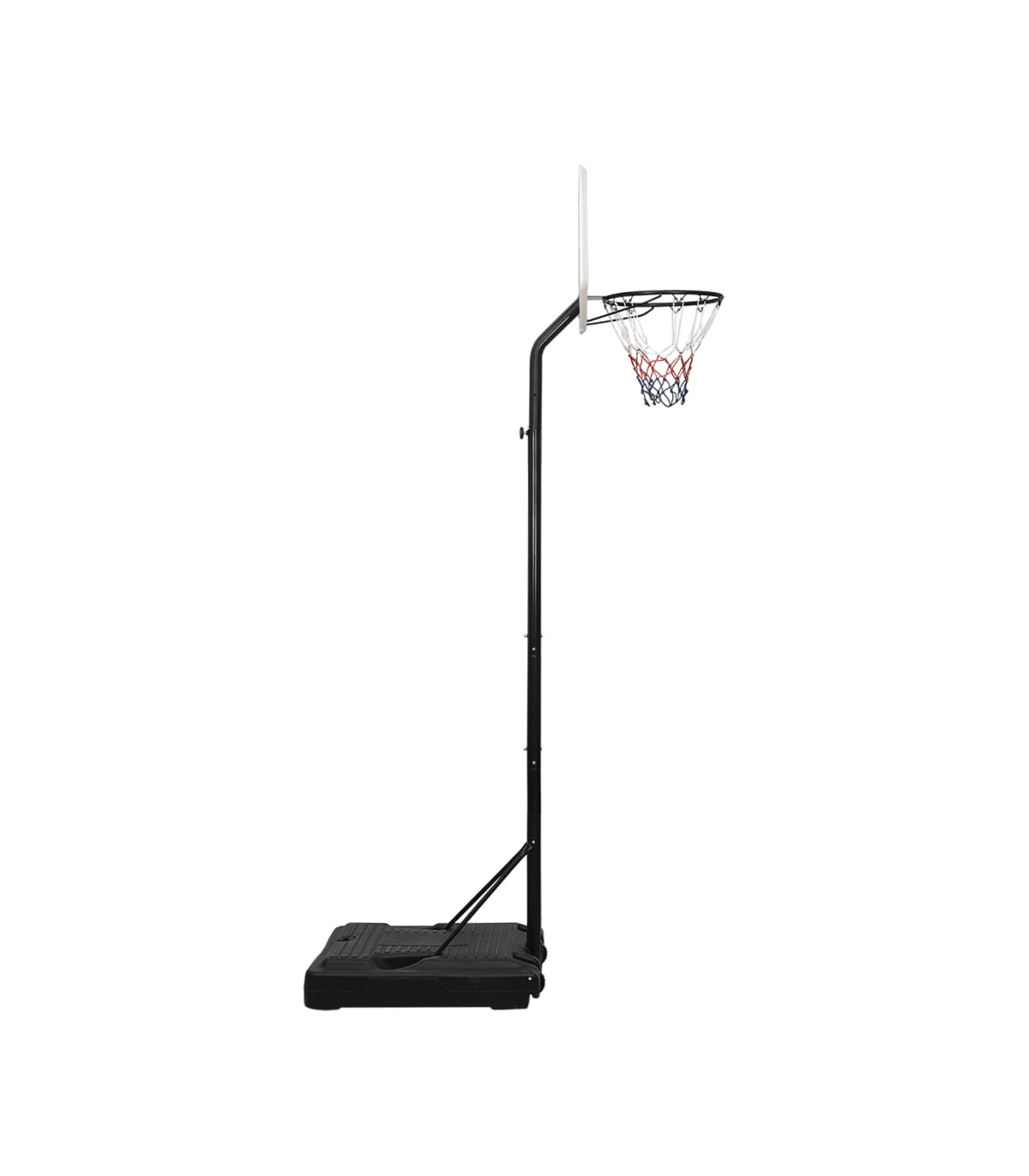 Do you want to enjoy a game of basketball with your friends anywhere, anytime? Then this adjustable basketball stand is a perfect choice! Durable material: The basketball stand is made of polyethene. Polyethene is the most widely used plastic material. It offers practicality as it is UV-resistant, lightweight and easy to maintain. Classic steel-made basketball rim with an all-weather nylon net also makes the basketball stand last long.Adjustable height: The basketball hoop stand has an adjustable height and can stretch to fit different players. This basketball stand can be adjusted from 282 cm to 352 cm in height.Easy to move: The basketball hoop post features portable built-in wheels and can be easily moved.Stable base: The basketball portable stand adopts a triangular stable design. The base can be filled with water or sand, which makes the basketball post more stable.Wide application: This basketball post can be set up in a gym for indoor practice or in the backyard to enjoy friendly outdoor game competitions. Note:Each product comes with an assembly manual in the box for easy assembly.