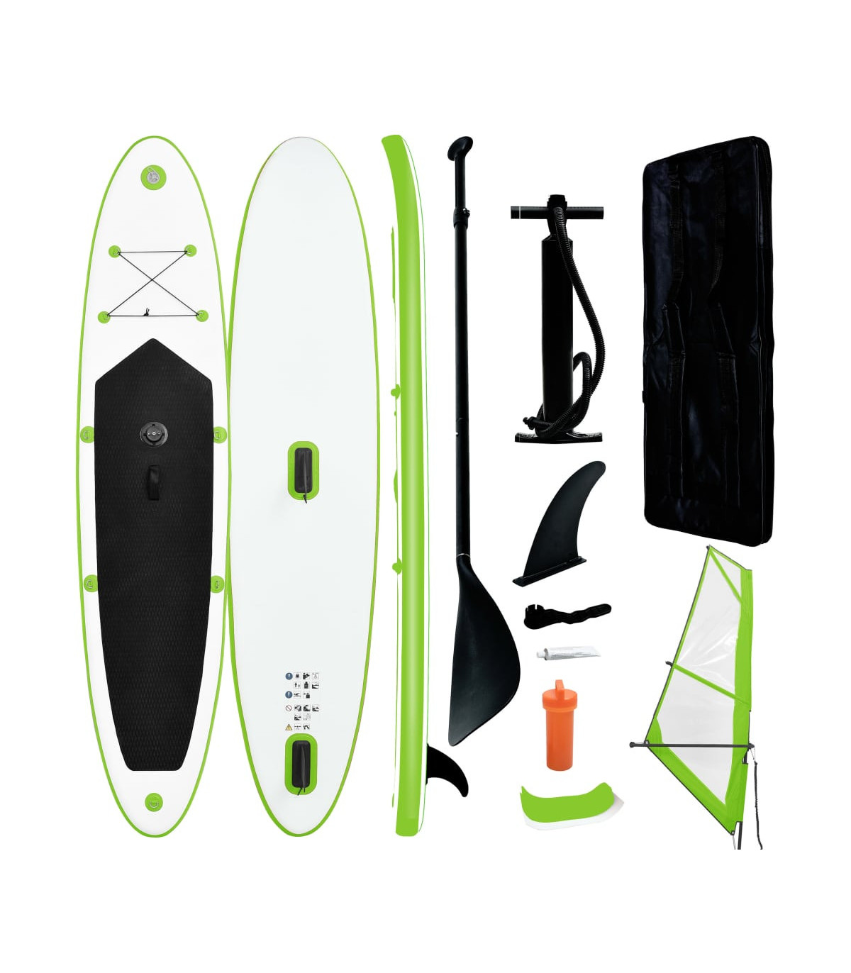 Inflatable Stand Up Paddleboard with Sail Set Green and White
