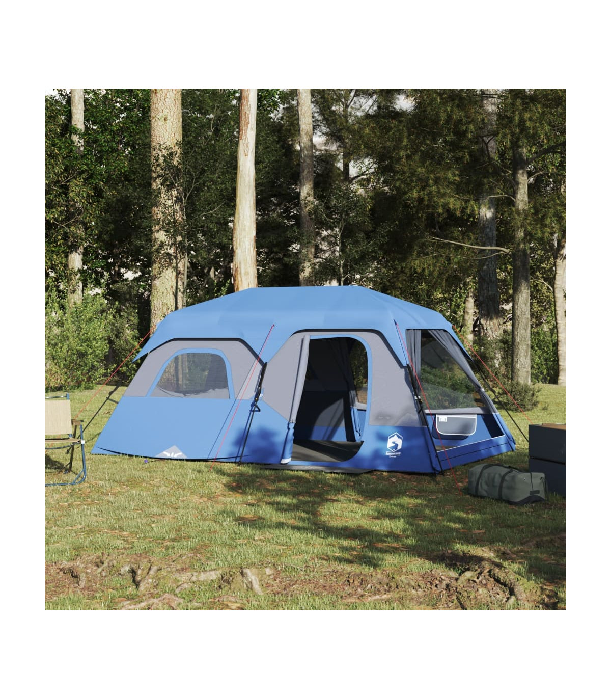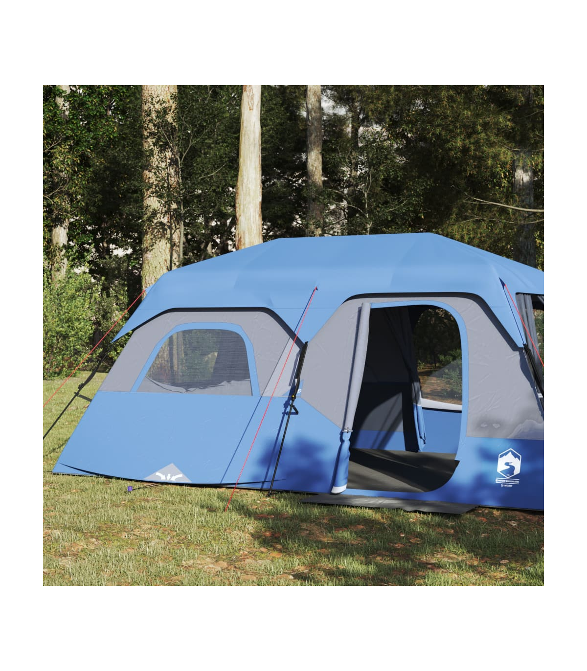 This family tent with a modern look protects you from the unpleasant weather and provides a comfortable place for anywhere adventures. All-round waterproof design: This camping tent, made from polyester with a PU coating, is waterproof and wind resistant. The taped seams effectively prevent rainwater infiltration, while the heavy-duty ground sheet helps maintain a dry and comfortable interior. Quick-release system: Set up the tent effortlessly with the quick-release system! Lay the tent down, extend the pre-assembled poles until they lock into place, and you're all set!Good ventilation & mosquito protection: The mesh walls not only offer excellent ventilation but also effectively keep insects at bay, ensuring a comfortable and bug-free experience for users.Convenient electrical cord access: The E-Port allows you to easily connect an extension cord from an external power source to your tent.Detachable rainfly: The detachable rainfly can be attached to the tent's top for weather protection and privacy. Warning:Keep all flame and heat sources away from this product fabric.