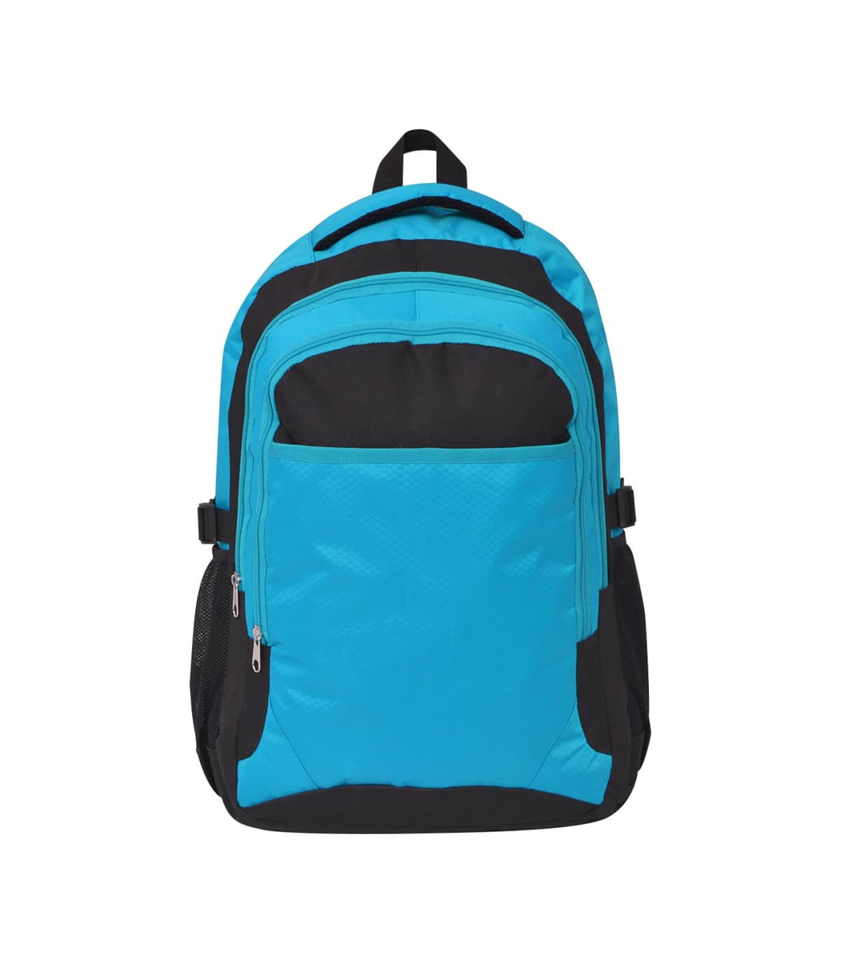 Our comfortable and practical school backpack is ideal for your books, laptops and stationery. Made of high-quality coated 600D polyester, this backpack is durable and water repellent. The bag features 2 wide shoulder straps. It has a large capacity of 40 litres so you can pack everything you need in daily use. The 3 large compartments can be used to store your big items, and their zip closures make sure your belongings are kept safe. The front compartment with hook and loop closure and 2 mesh side pockets provide extra space for safely and conveniently storing the items you need close at hand, such as tissues, wallets, umbrellas and so on.