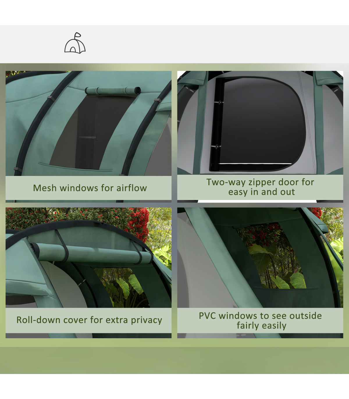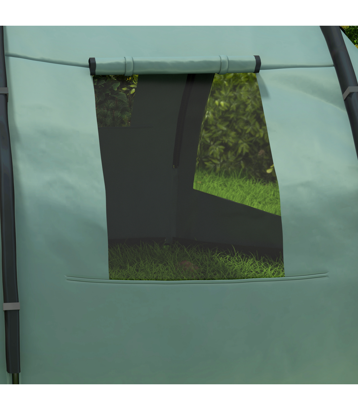 ? Plastic windows for outside/inside views and mesh windows for ventilation, which come with covers for extra privacy