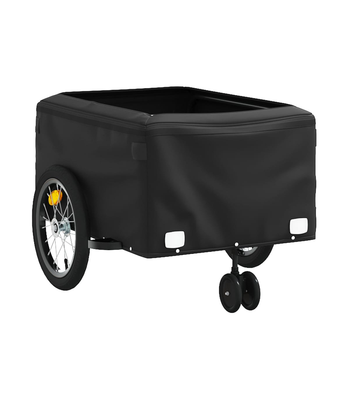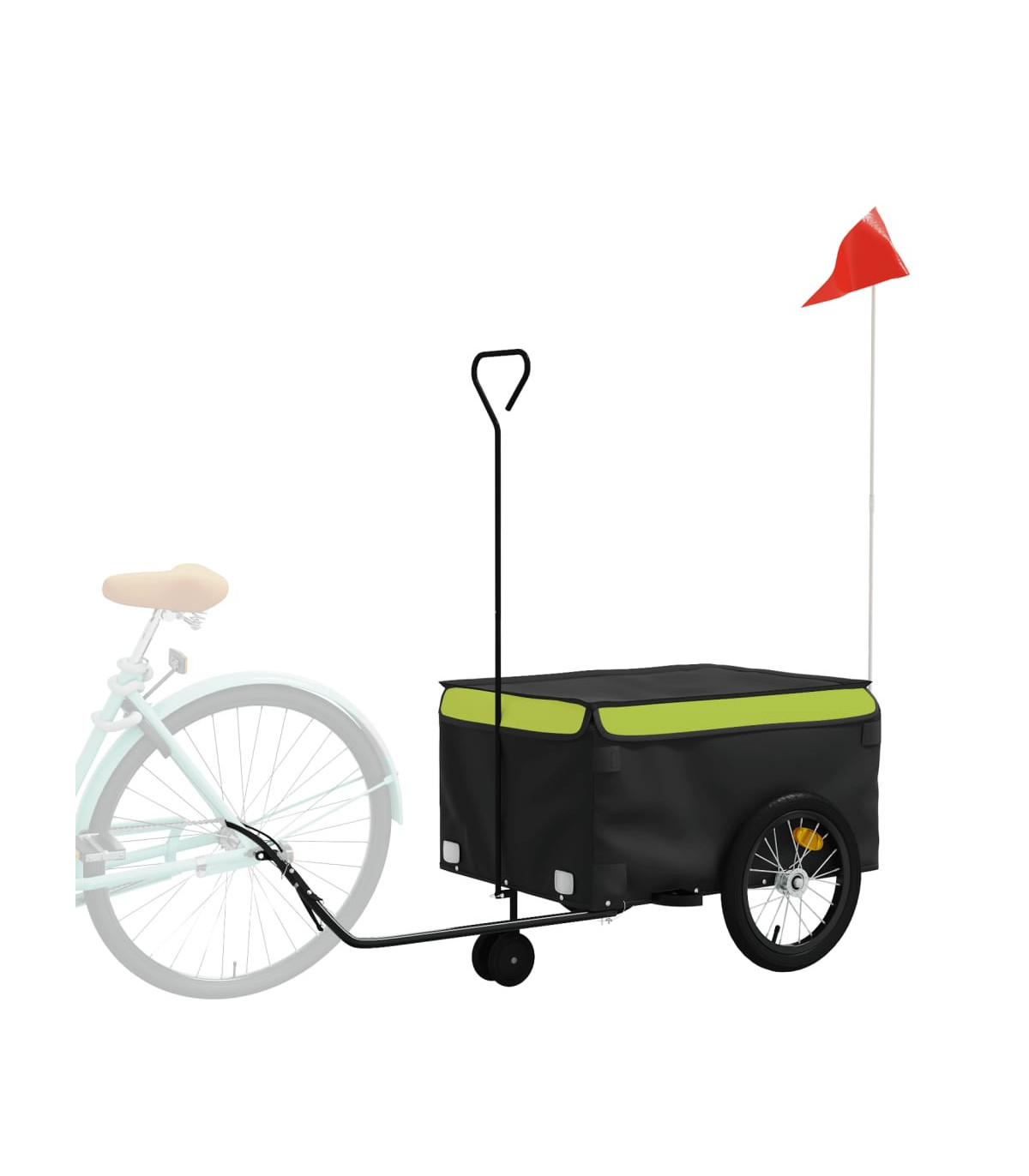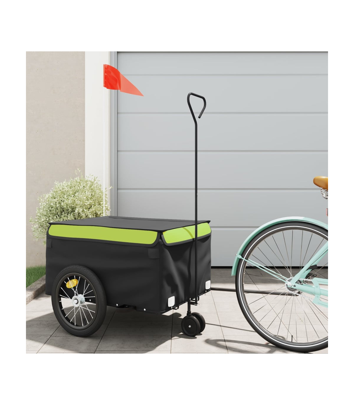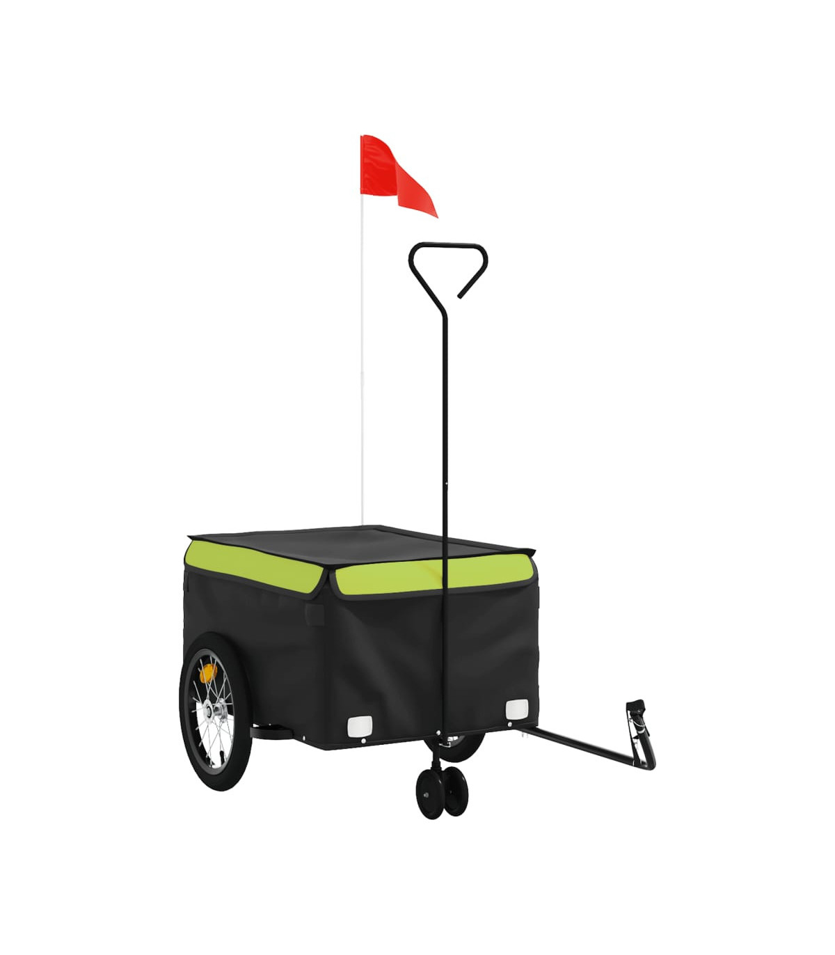 This versatile and sturdy bike trailer will be ideal for transporting heavy goods thanks to its maximum load capacity of 30 kg. Sturdy material: Iron is a strong and hard material. It's a solid favourite in industrial and furniture construction. Made of iron, this bicycle cargo trailer is very sturdy and durable.Practical design: This bike cart with a maximum load capacity of 45 kg, is perfect for hauling heavy goods like luggage, plants, tools or groceries.Considerate design: The bike trailer has a tow bar that makes it easy to connect it to a bicycle. At the same time, a safety flag is included for extra visibility.