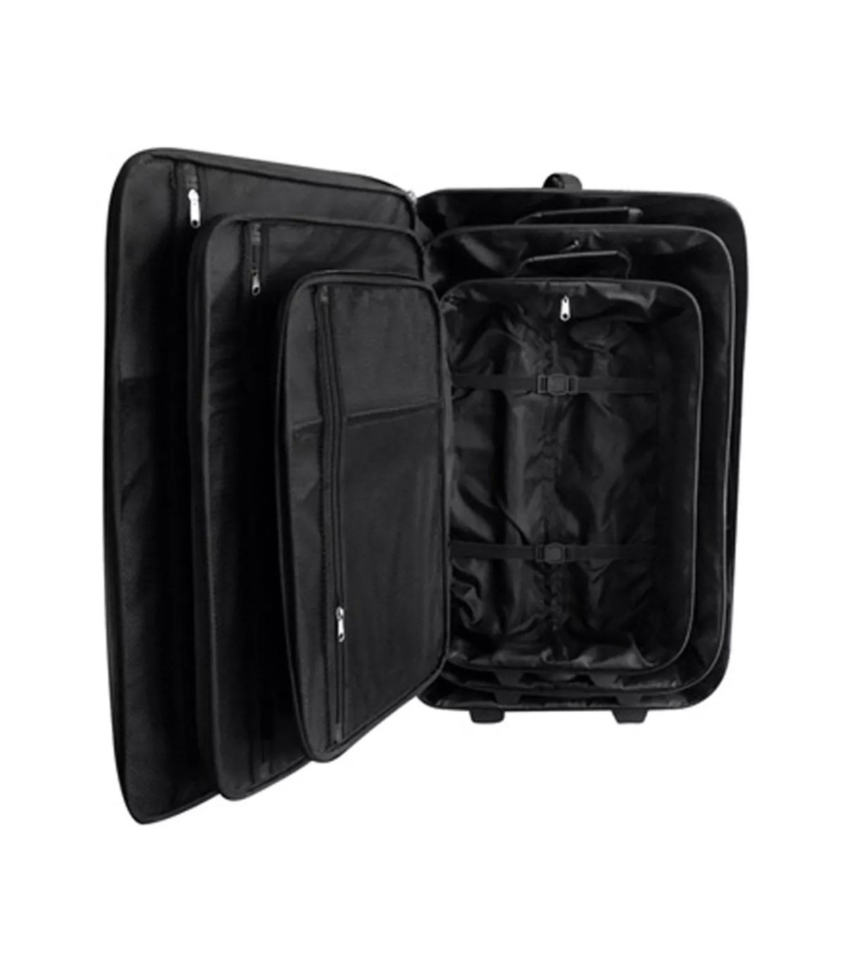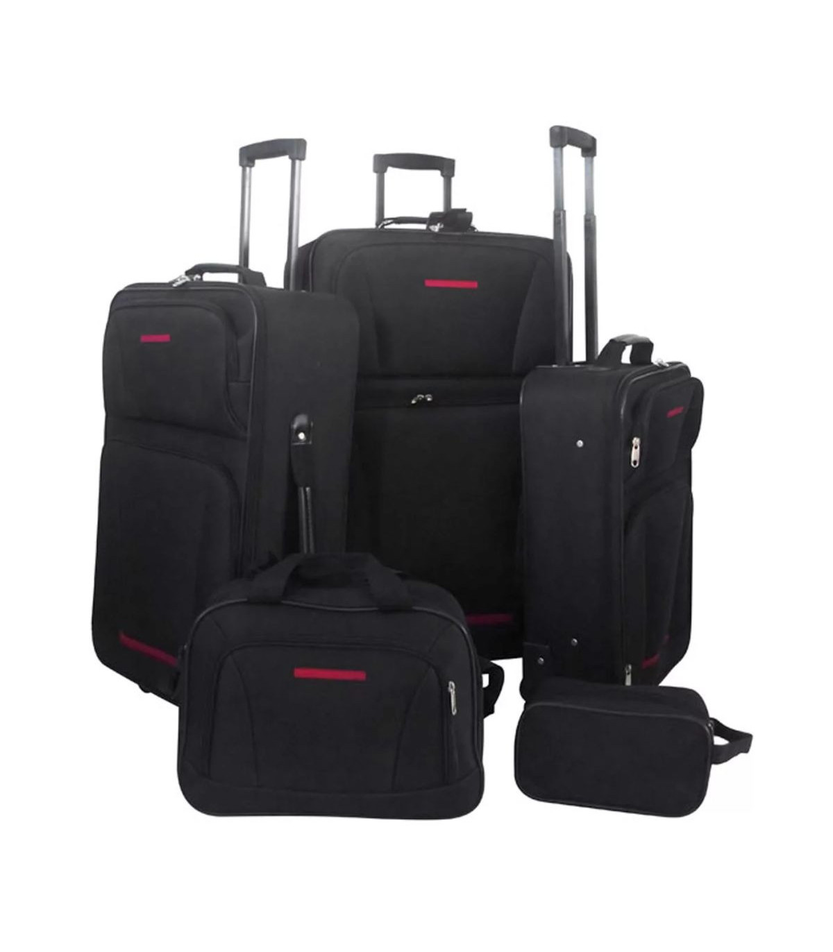 In this sustainable luggage set you can easily pack all your bagage. Because of the different size of the trolleys the set is suitable for small and big travels. The pull-out telescopic handles and the 2 wheels underneath the trolleys make this set practical when used. The trolleys are made of fabric (100% polyester) with PVC coating. The edges of thje trolleys are additionally lined so they are resilient. The luggage set is delivered including a handy travel bag and toiletry bag. When you store the trolleys it's possible to interlock them so you only have to find a storage place for the biggest trolley. In this way you can save a lot of extra space! This 5 part luggage set is available in red and black.