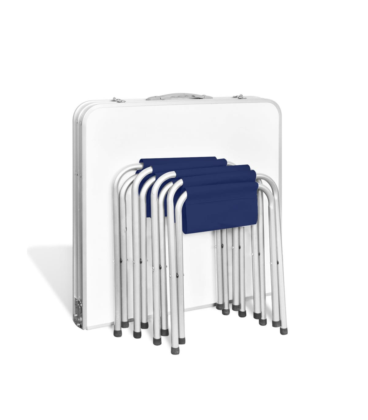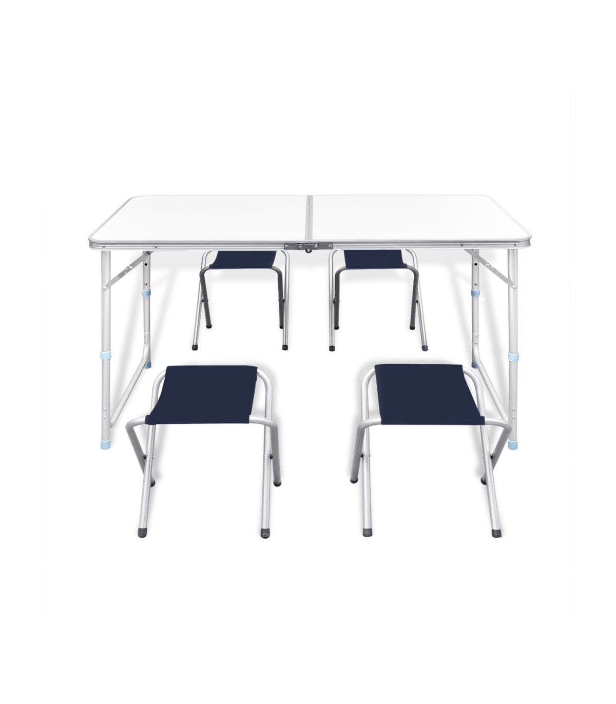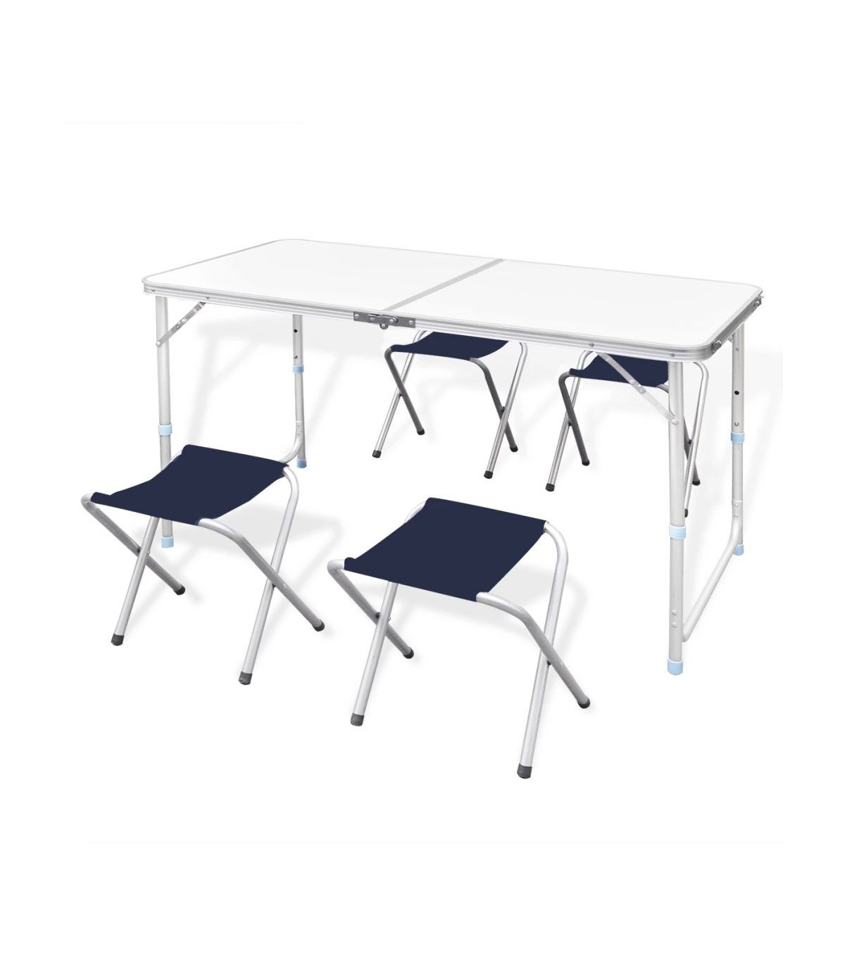 Foldable Camping Table Set with 4 Stools Height Adjustable 120x60cm