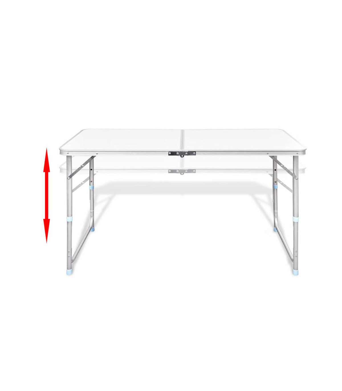 This foldable camping table with practical carrying handle will come in handy in kitchens, on patios, in gardens, and on picnics or camping trips. The table height can be adjusted to 55 cm, 62 cm and 70 cm. The camping table is light in weight. Thanks to the folding design, this camping table is easy to transport and can be stored away quickly when not in use. The carrying handle makes it very easy to bring the table with you when going out to have a picnic or camping trip. Thanks to the sturdy structure, this camping table has a high load capacity of up to 30 - 50 kg. Thanks to the metal frame and the robust MDF tabletop, it is highly stable and durable.