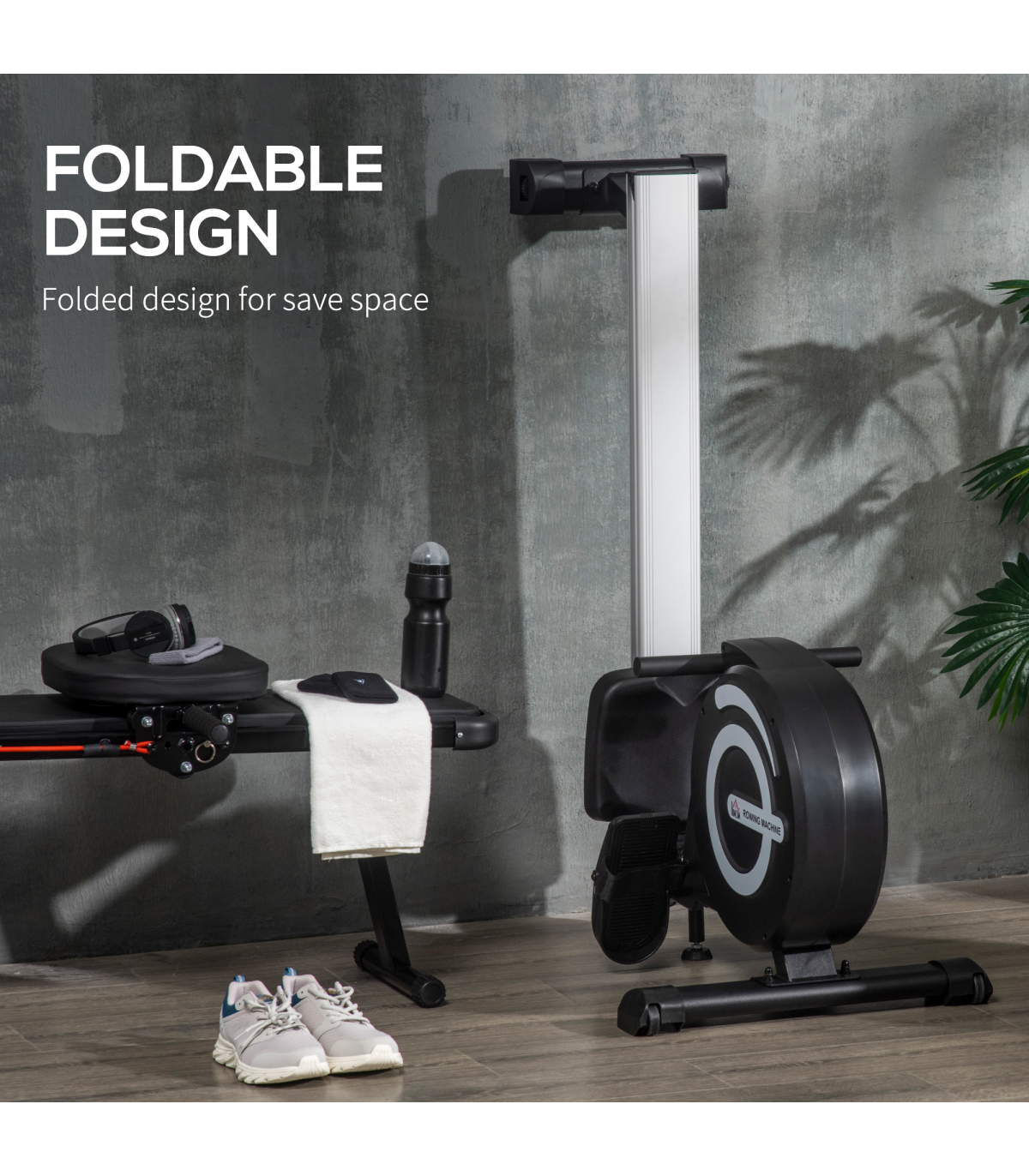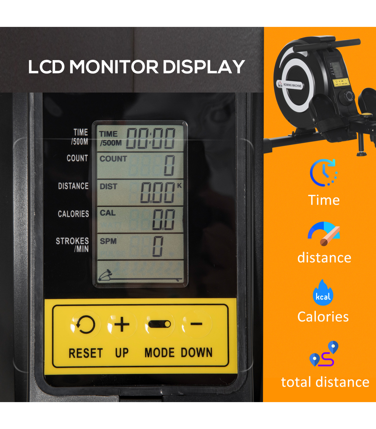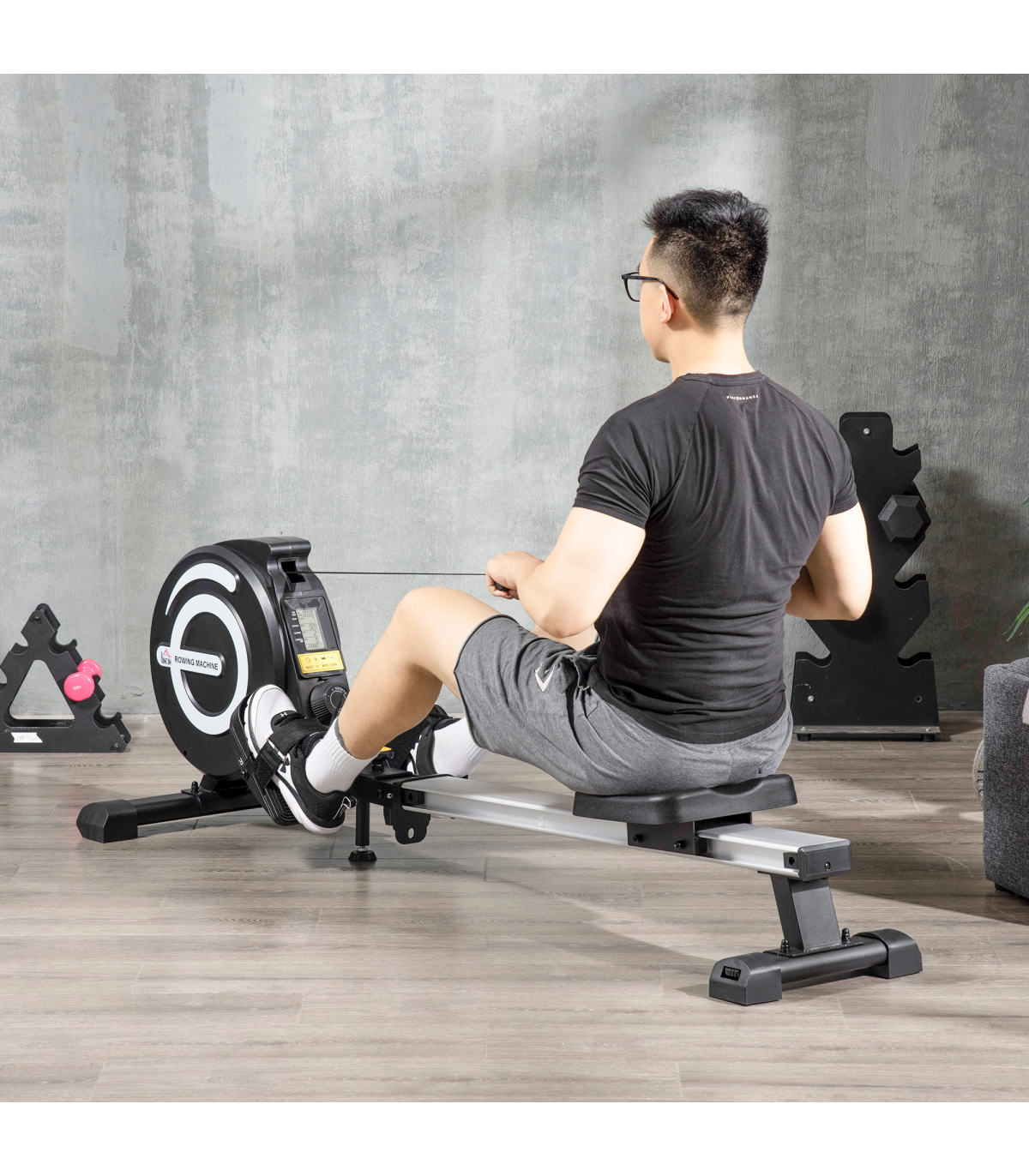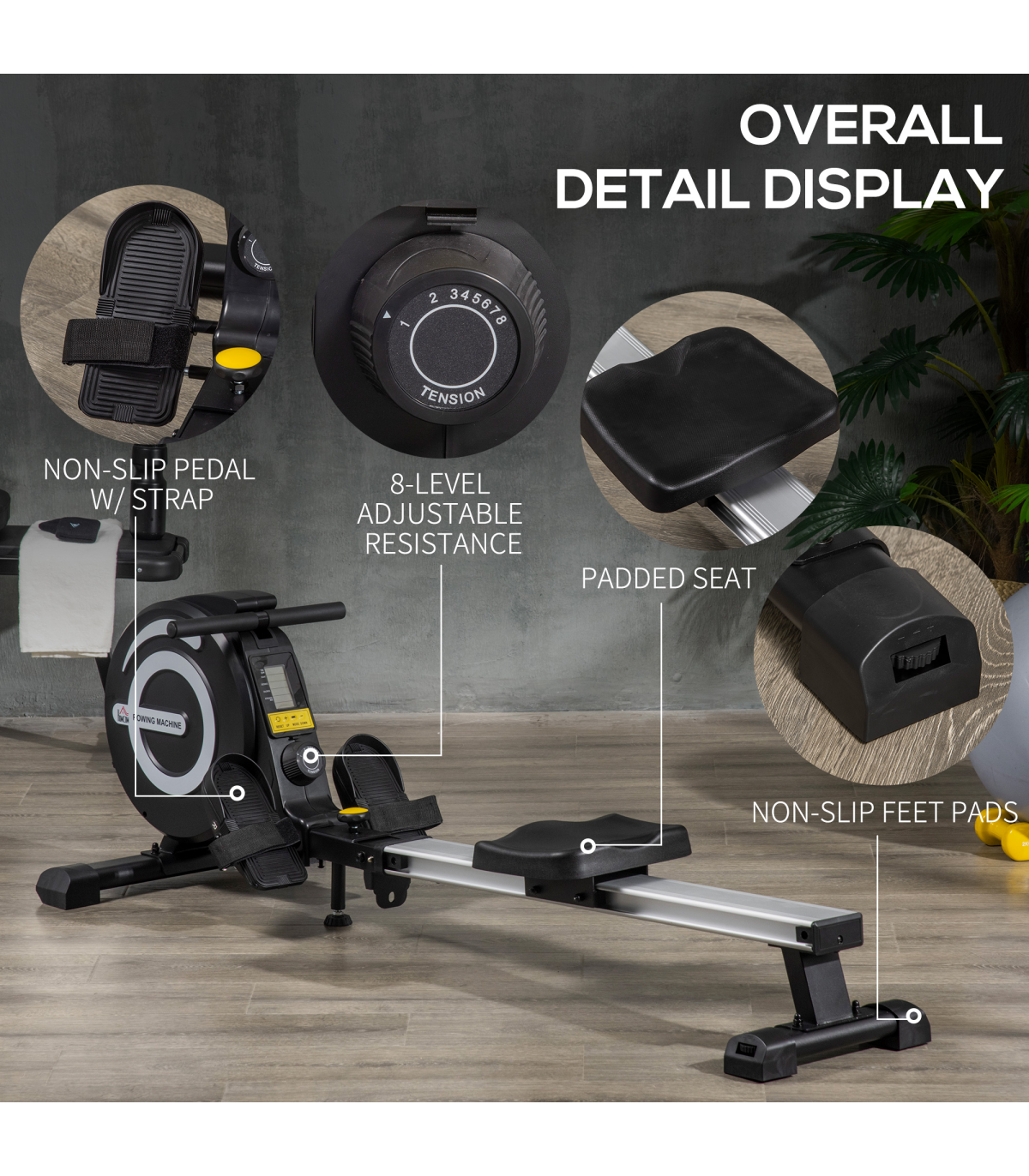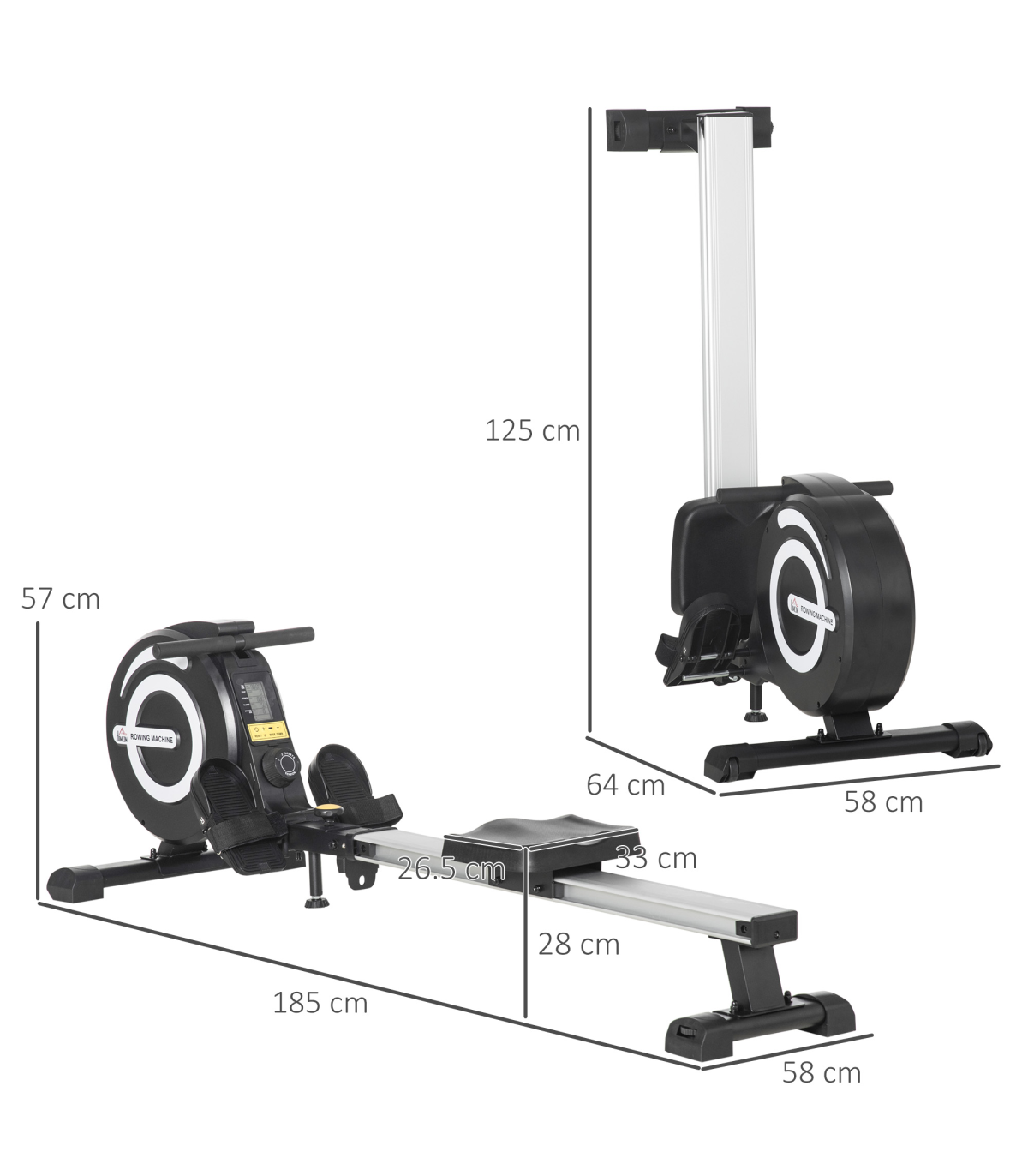 COMFORTABLE WORKOUT MACHINE: Magnetic control flywheel which is a silent design. Perfectly to exercise arms, legs, waist, hips, play a role in shaping, strengthening, fitness. Suitable for home, office, gym useLCD DIGITAL MONITOR DISPLAY: Completed with an LCD screen that allows you to track your progress and fitness data easily. It's can track time, distance, calories, heart rate, distance, total distance to keep you updated on your developmentADJUSTABLE MAGNETIC RESISTANCE: With glide rail aluminium alloy which is a silent design with a simple twist control by a magnetic flywheel, you can increase or decrease the 8 levels of magnetic resistance, so your workout can remain challenging and effective throughout your fitness journeyFOLDING DESIGN & TRANSPORTATION WHEELS: Built-in two transportation wheels for easy portability in your home or office. Simply tilt and roll out for use or away for storage, no need for heavy lifting or muscle strain. The machines can be folded to save spaceDIMENSIONS: Overall Dimension: 185L x 58W x 57H cm, Folded Dimension: 125L x 58W x 64H cm