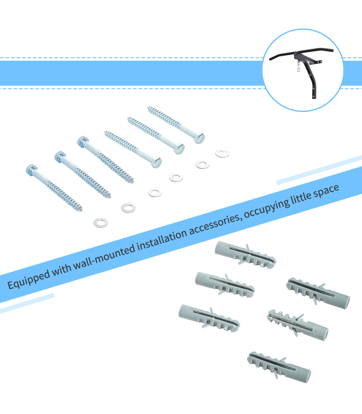 This punch bag bracket with chin up bar is an effective way to work most of the upper body muscles and it is an ideal trainer for shaping your upper body, chest, back and arms. Perfect for the home gym, commercial gym or health club, this hanger can be used for boxing, kick boxing, or MMA bags. The wall mount comes with all of the necessary hardware. Constructed of heavy-duty steel, our wall hanger is durable and safe to use for a lifetime. The arm extends approximately 47cm from the wall to provide plenty of room for the bag to swing. This wall mount hanger bag is specifically designer for your health improvement.