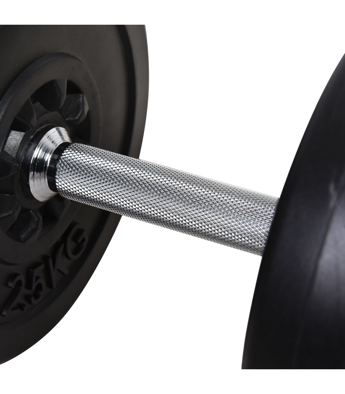 Colour: BlackDumbbell material: Chrome-plated steelWeight plate material: Cast iron with rubber coatingOverall dimensions: 37.5 x 17.5 x 16 cm (L x W x H)Weight: 25 kg
