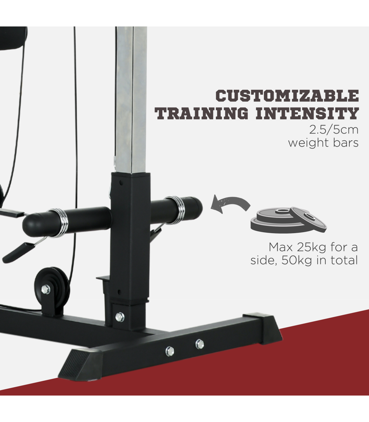 If you want to workout like a pro at home, it's time to look at the SPORTNOW free standing pull up bar. Our power cage includes an added low-row pulley, allowing a range of exercises for your shoulders, back and chest. An ergonomic handle, adjustable height and angle allow you to lift safely and comfortably. A tough steel frame and adjustable weight plates let you progress your way to 50kg. When you bring the power rack, you exercise on your schedule and your rate. Score big with SPORTNOW.