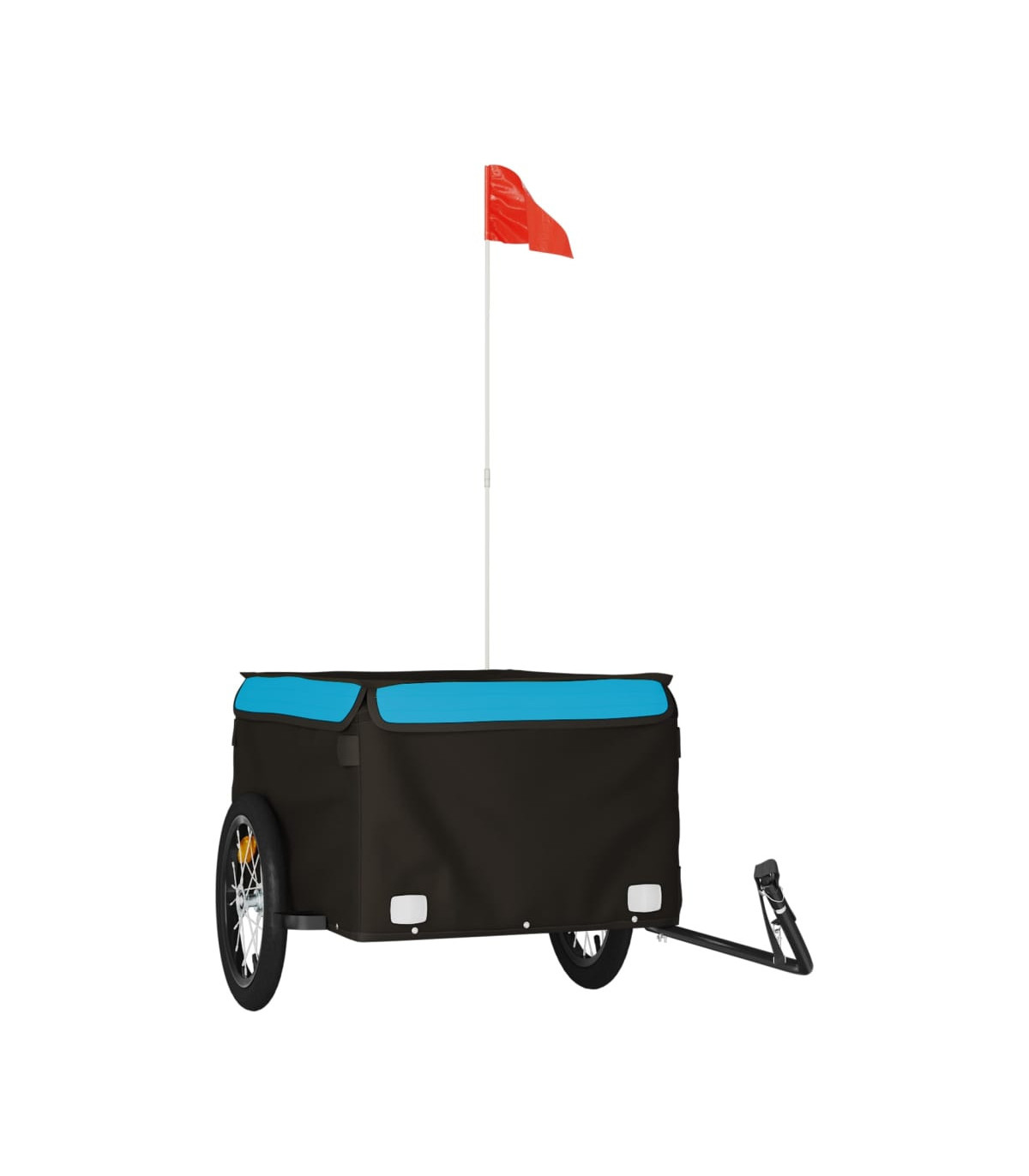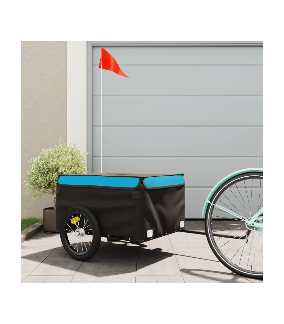 This versatile and sturdy bike trailer will be ideal for transporting heavy goods thanks to its maximum load capacity of 30 kg. Sturdy material: Iron is a strong and hard material. It's a solid favourite in industrial and furniture construction. Made of iron, this bicycle cargo trailer is very sturdy and durable.Practical design: This bike cart with a maximum load capacity of 45 kg, is perfect for hauling heavy goods like luggage, plants, tools or groceries.Considerate design: The bike trailer has a tow bar that makes it easy to connect it to a bicycle. At the same time, a safety flag is included for extra visibility.