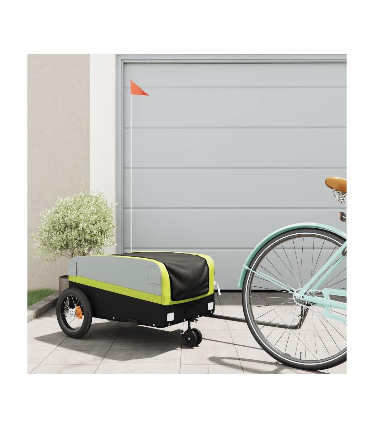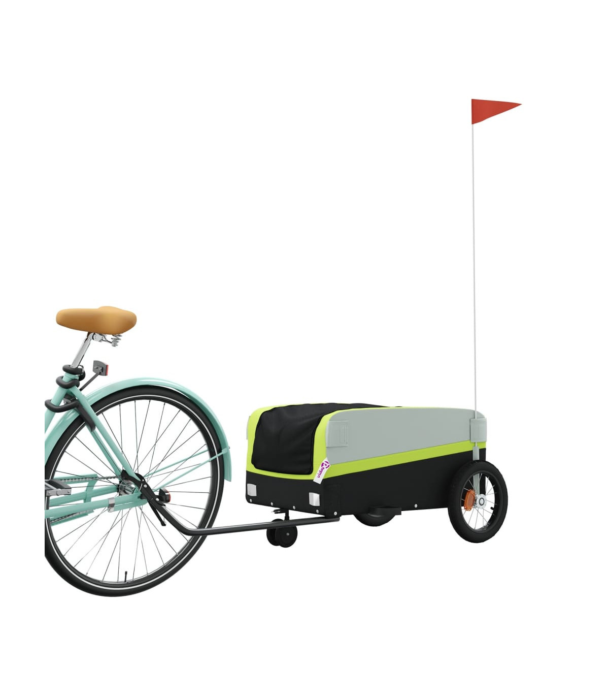 This versatile and sturdy bike trailer will be ideal for transporting heavy goods thanks to its maximum load capacity of 30 kg. Sturdy material: Iron is a strong and hard material. It's a solid favourite in industrial and furniture construction. Made of iron, this bicycle cargo trailer is very sturdy and durable.Practical design: This bike cart with a maximum load capacity of 30 kg, is perfect for hauling heavy goods like luggage, plants, tools or groceries.Considerate design: The bike trailer has a tow bar that makes it easy to connect it to a bicycle. At the same time, a safety flag is included for extra visibility.