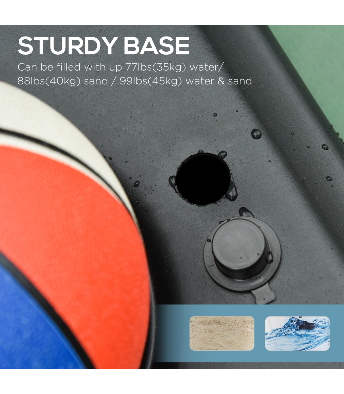? Base capacity: 35kg water, 40kg sand or maximum 45kg water and sand