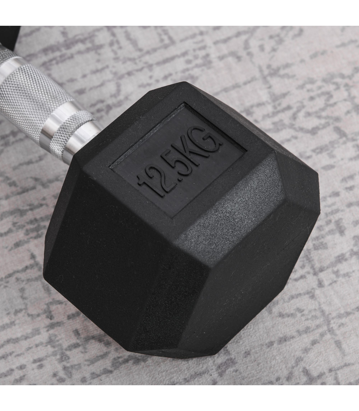 12.5KG WEIGHT: Medium-heavy weight, it's made to be used by those who have been training and building themselves up to this level. Not for beginners. Hexagon shaped ends prevents weight rolling away.