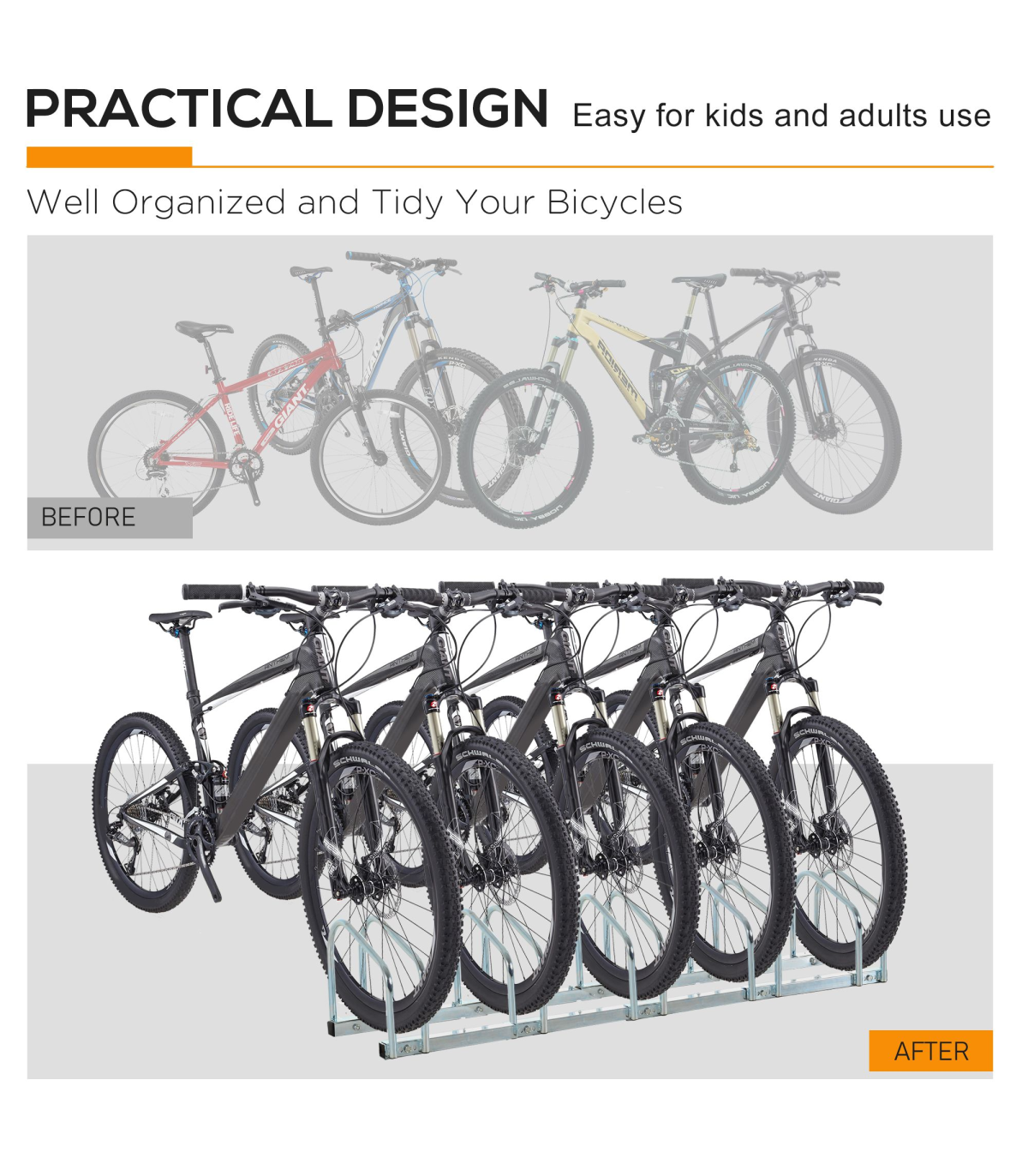 5 Bike Parking Rack Locking Storage Stand Holder Floor Wall Mount HOMCOM