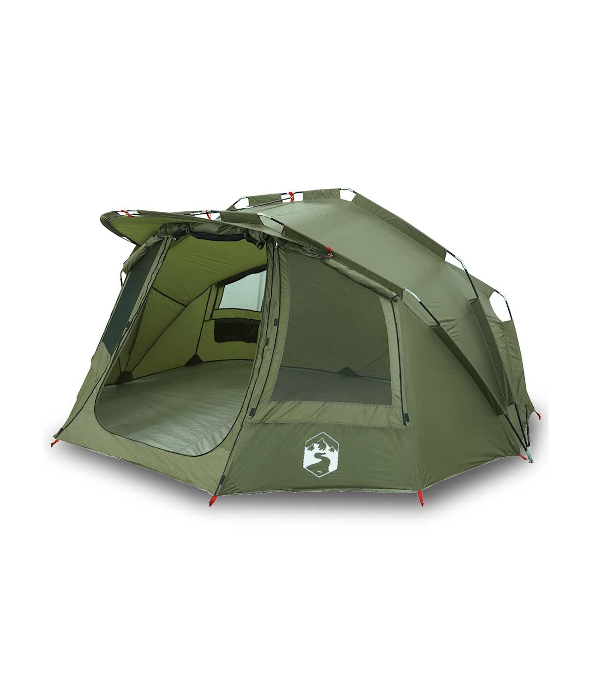 This fishing tent is perfect for creating some shade and protection from the sun's harmful UV rays when fishing. All-round waterproof design: This camping tent, made from polyester with a PU coating, is waterproof and wind resistant. The taped seams effectively prevent rainwater infiltration, while the heavy-duty ground sheet helps maintain a dry and comfortable interior. Easy access: The zippered door allows for easy access. You can roll it up and secure it with the door toggles. It also promotes airflow and provides ample natural light. Extra storage space: The storage pocket is convenient for keeping your phone, keys, or other small items organised and easily accessible. Lightweight and portable: The foldable and lightweight design allows you to easily pack the tent and store it in the included carry bag for easy transport. Easy setup and takedown: Setting up and taking down the tent is a breeze thanks to the highly flexible and lightweight fibreglass poles and the convenient pin-and-ring connection system. Warning:Keep all flame and heat sources away from this product fabric.