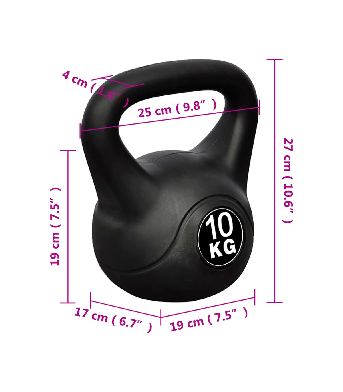 This kettle bell is made of plastic with a compact interior. It has a massive and professional construction. This kettle bell weighs 24 kg. Because of the material is doesn’t damage the ground during your exercise.