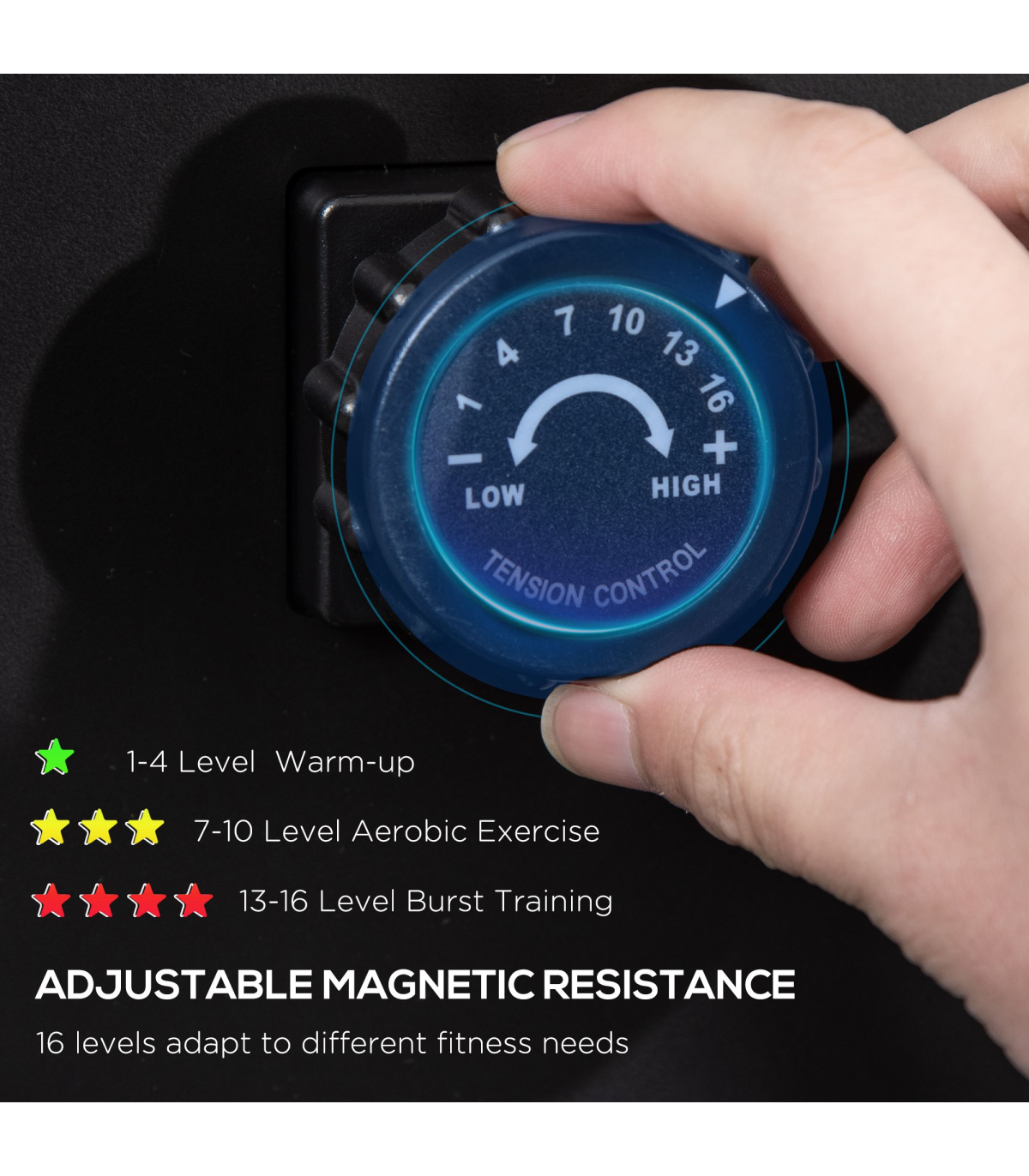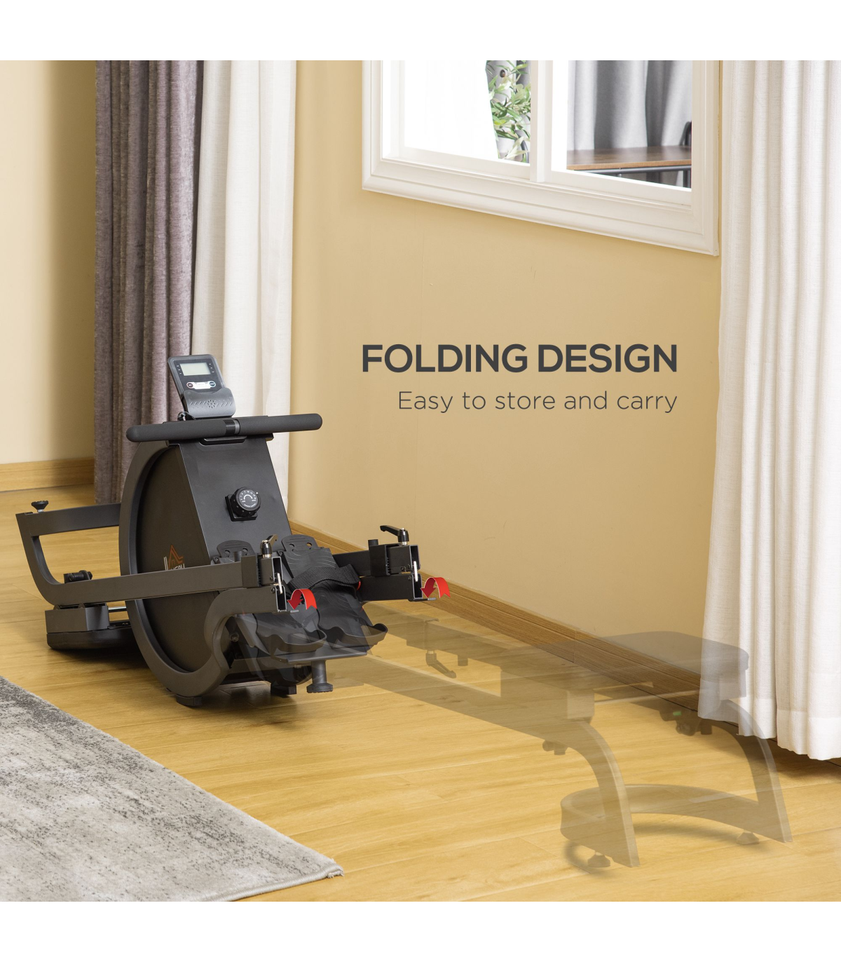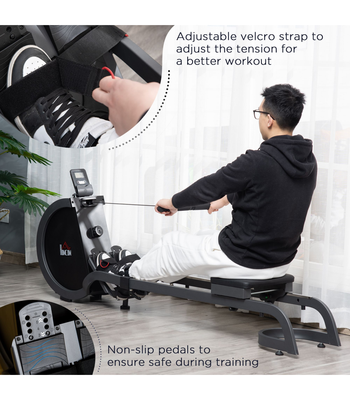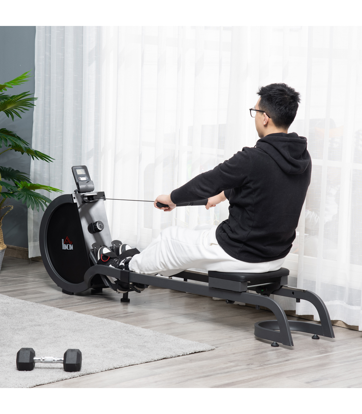 Keep fit with this rowing machine from HOMCOM. With 16 levels, there's a resistance setting to suit your needs, whether you're a beginner or expert. It's great for working your back, legs, core and arms ? you'll gain strength, improve cardio and burn calories. Track your progress with the digital monitor, which displays time, speed and calories burnt. Suitable for home use, it can be folded and stored away, saving space.