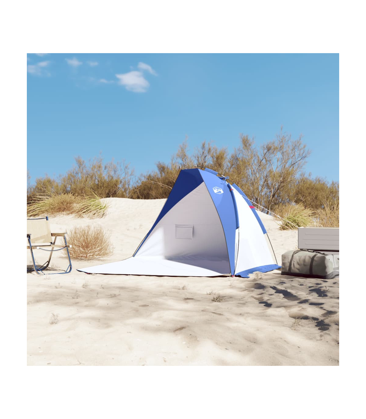 This beach tent offers you and your friends a cosy shelter in the hot summer or use it as a shade over the sandpit and paddling pool. Waterproof: This camping tent, made from polyester with a PU coating, is waterproof and wind resistant.The fully open door allows you to enjoy the beautiful beach scenery with your family or entertain the children freely on a delightful summer afternoon.Lightweight and portable: The foldable and lightweight design allows you to easily pack the tent and store it in the included carry bag for easy transport. Warning:Keep all flame and heat sources away from this product fabric.