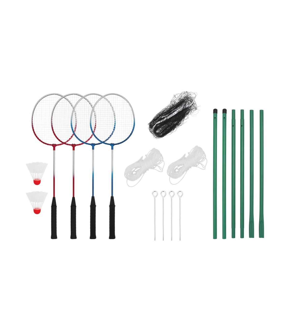 With this fantastic badminton set, you can enjoy the joy of sports and create lasting family memories. Great outdoor sport: This badminton set encourages you and your family to get active. It's a great way to enjoy outdoor fun while promoting health, coordination, and overall fitness.2-4 player game: This badminton set includes 2 pairs of rackets, ideal for 2-4 players. It offers endless gameplay options and comes with everything needed for a quick and easy setup, so you can start having fun right away!Increased stability: When using it in the garden, you can secure the poles with the included ground pegs for added stability.Wide applications: This badminton set is perfect for teens, adults, and families to enjoy at the park, in the backyard during a BBQ, while camping or tailgating, in physical education classes, or on traditional courts.