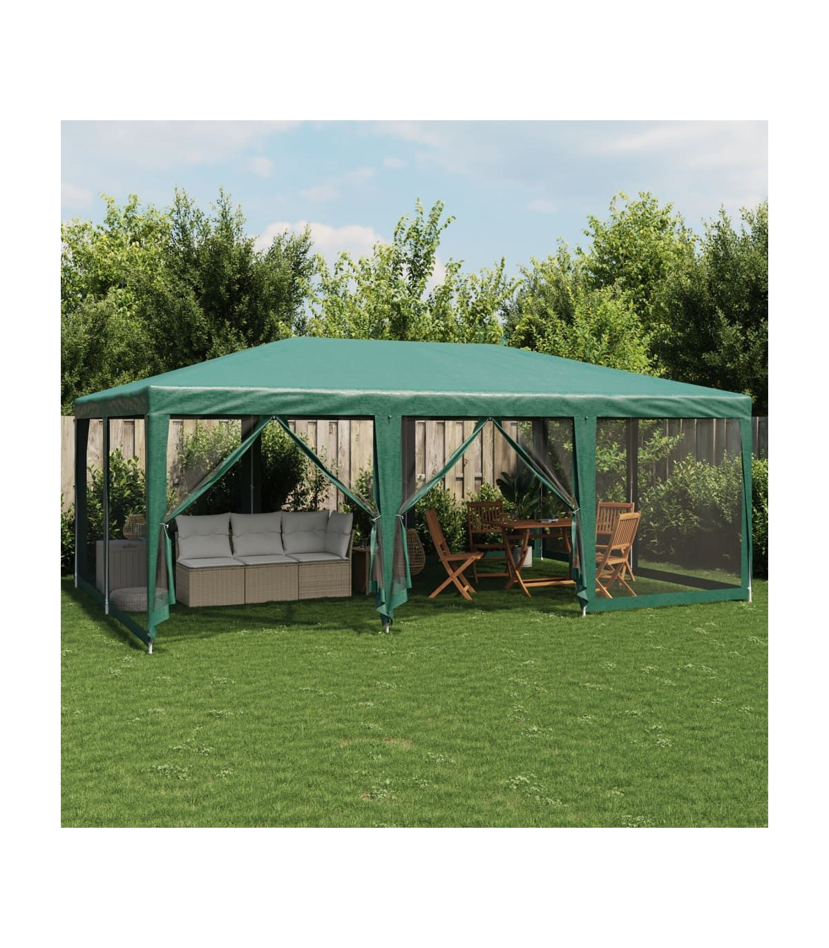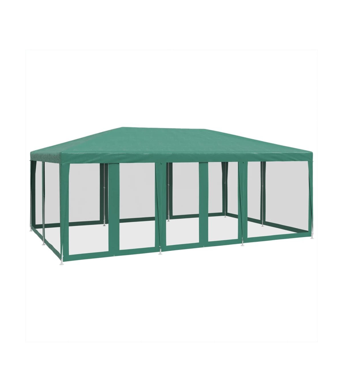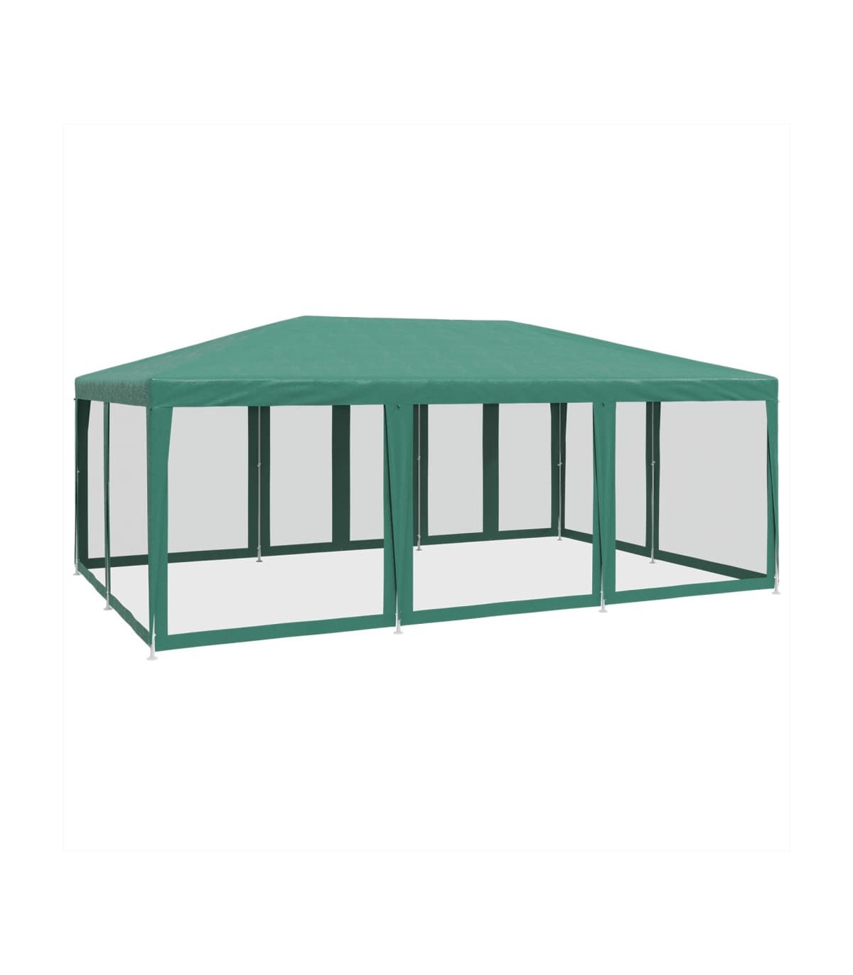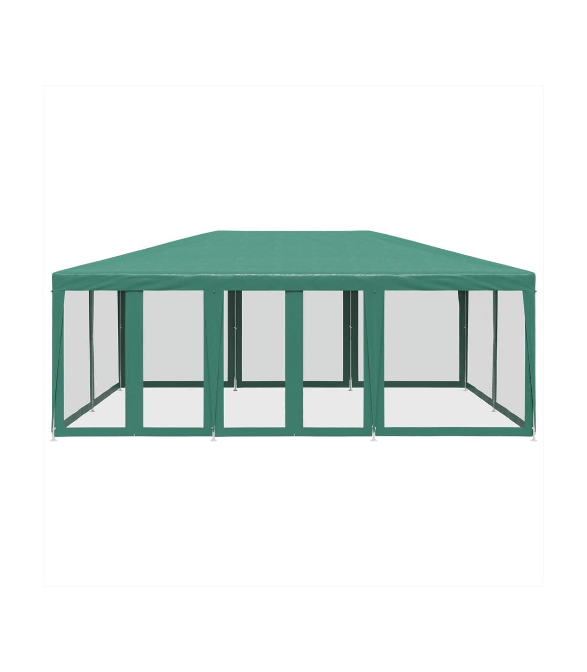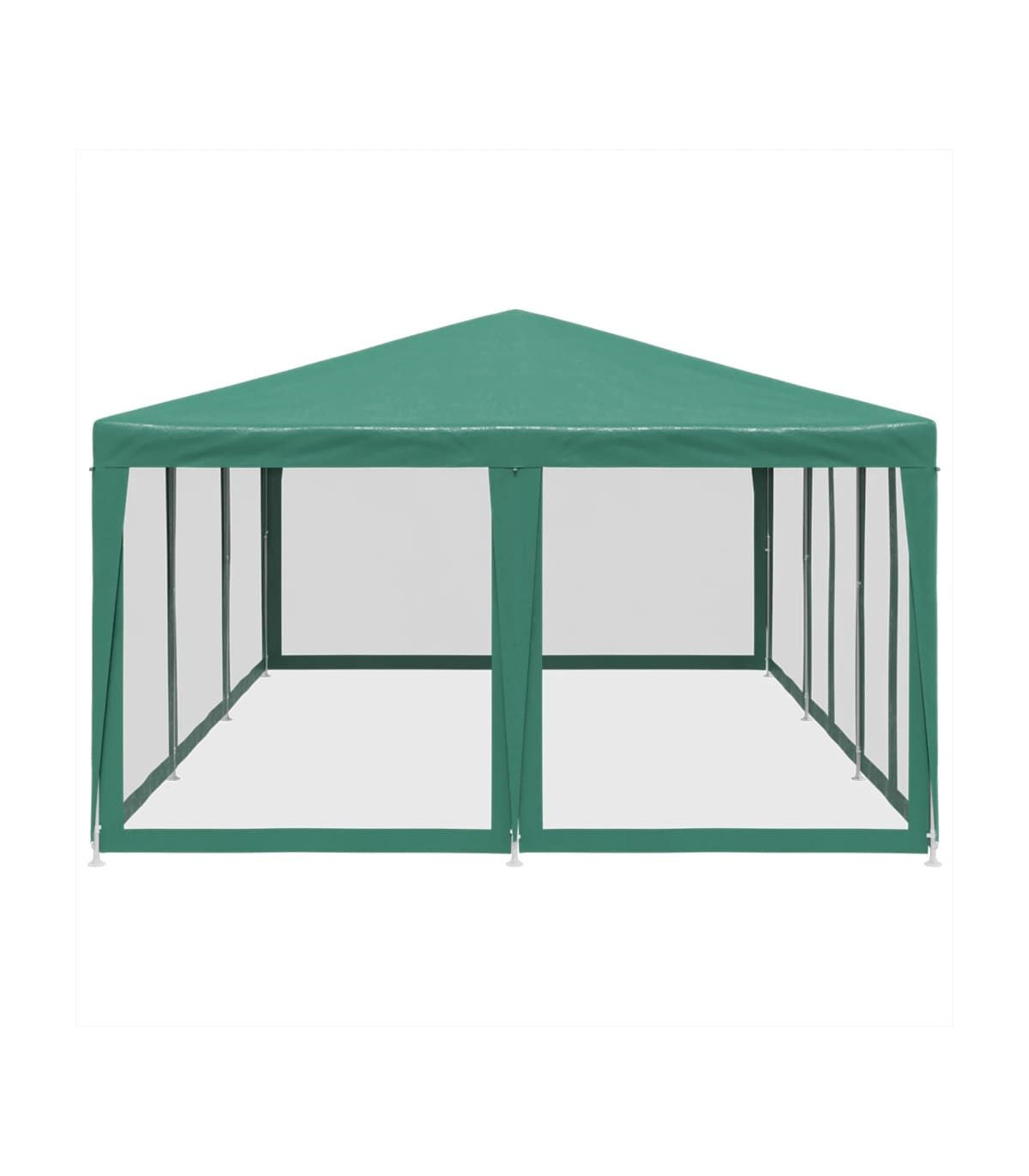 This super cool party tent, with a heavy-duty iron frame, a water-resistant roof and ten mesh sidewalls, is an ideal shelter from the sun. Premium material: This gazebo tent is made of high-density polyethene (HDPE) that protects you from direct sunlight and allows enough wind. The HDPE is specially treated, so it is water-resistant too.Iron frame: The iron frame of this garden tent ensures sturdiness and stability.Practical design: The tent has ten mesh side walls, which protect you from pesky insects. And one of the side walls has 2 zippers for entrance and easy access.Wide applications: This event tent is an ideal choice for a wide range of outdoor events, such as shows, weddings, parties, BBQs, festivals and so on. Good to know:This product should NEVER be used under bad weather, such as strong wind, heavy rain, snow, storm, etc.