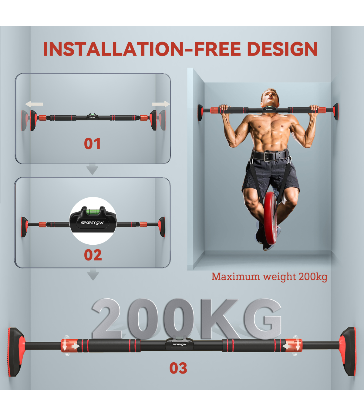 ● Installation-free design simplifies setup on suitable door frames