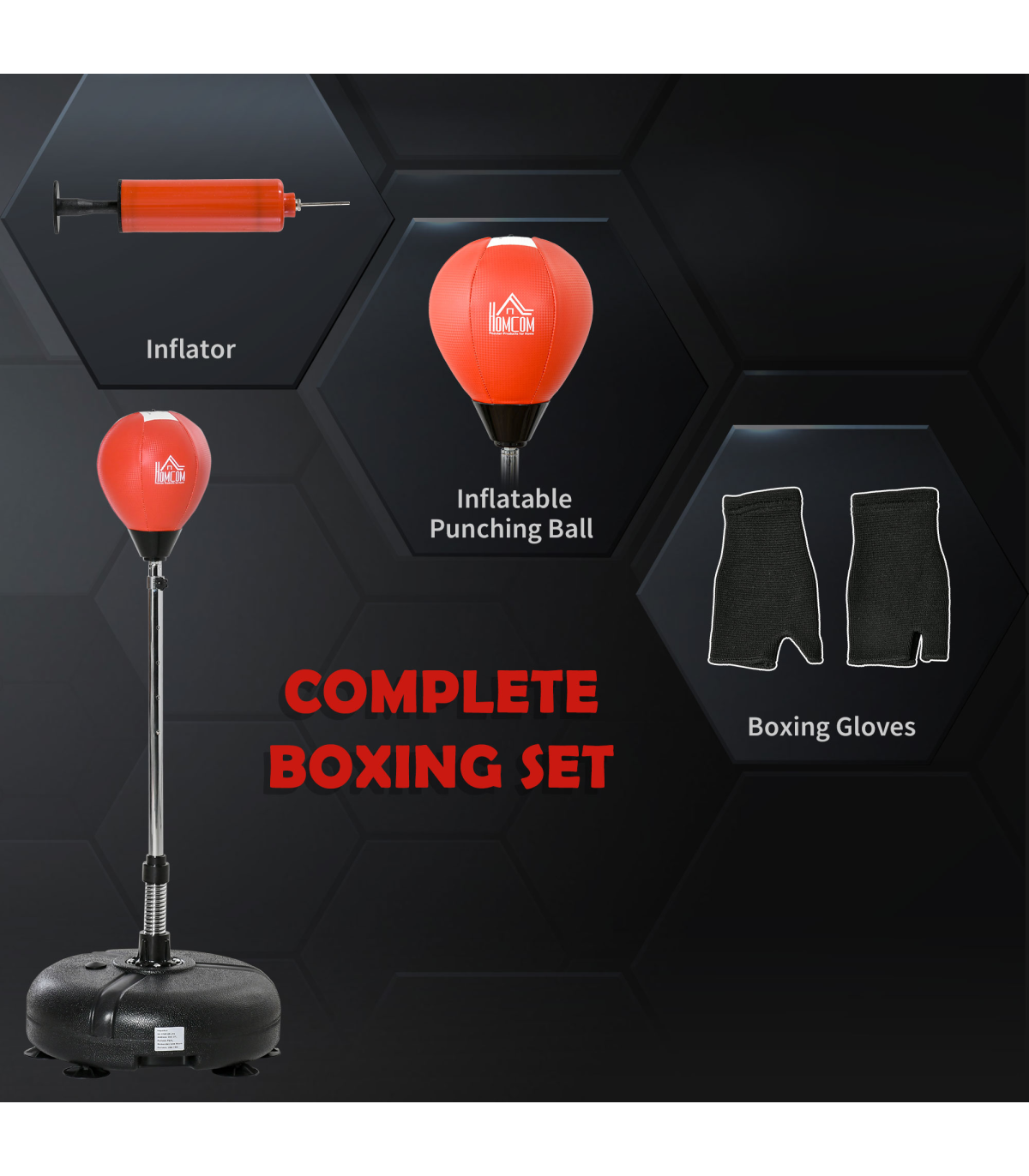 The Boxing Training Set is the perfect solution for anyone looking to enhance their boxing skills at home. Designed for both beginners and experienced enthusiasts, this comprehensive set includes an adjustable stand, gloves, and an inflating pump, ensuring you have everything you need for an effective training session.