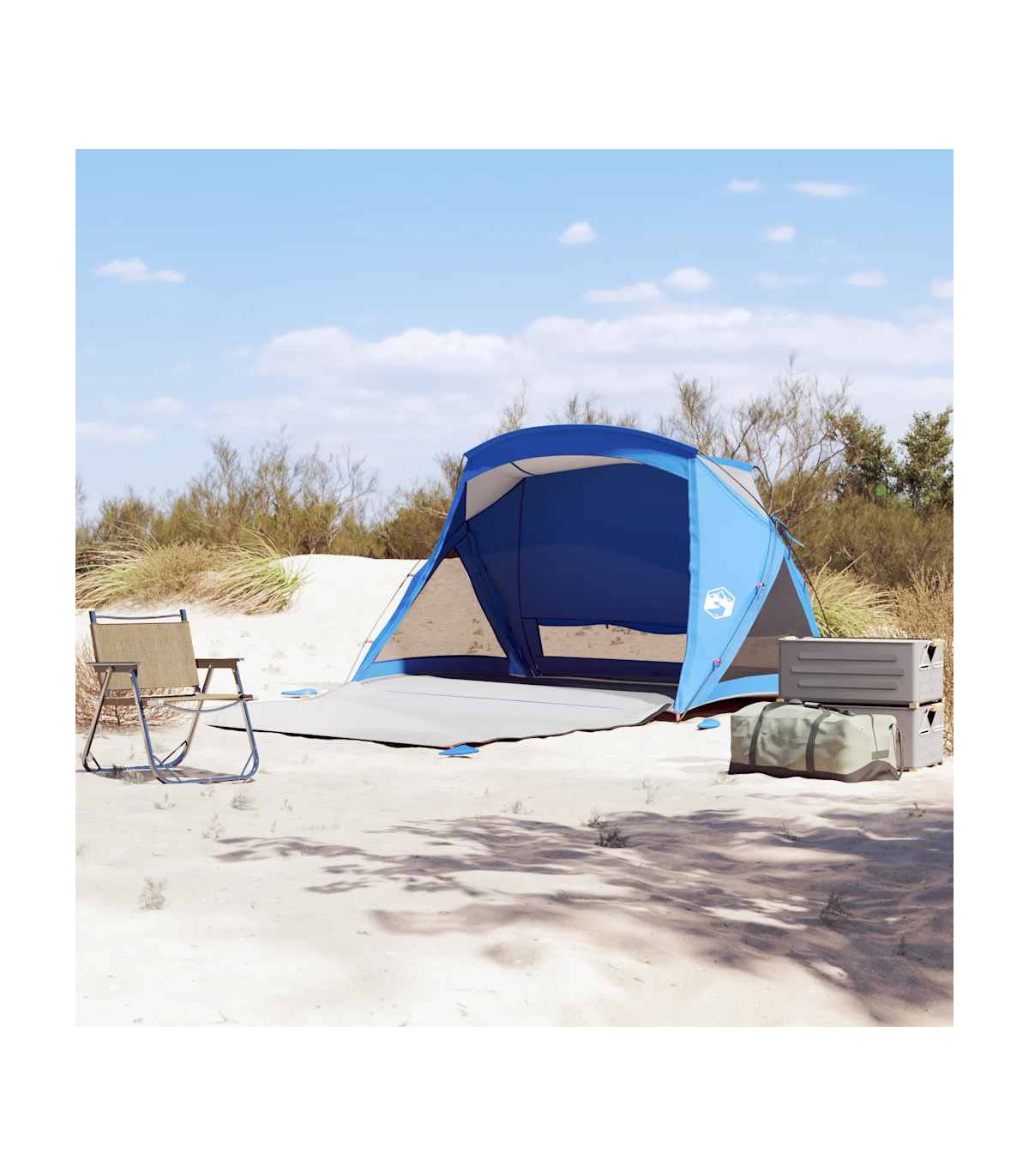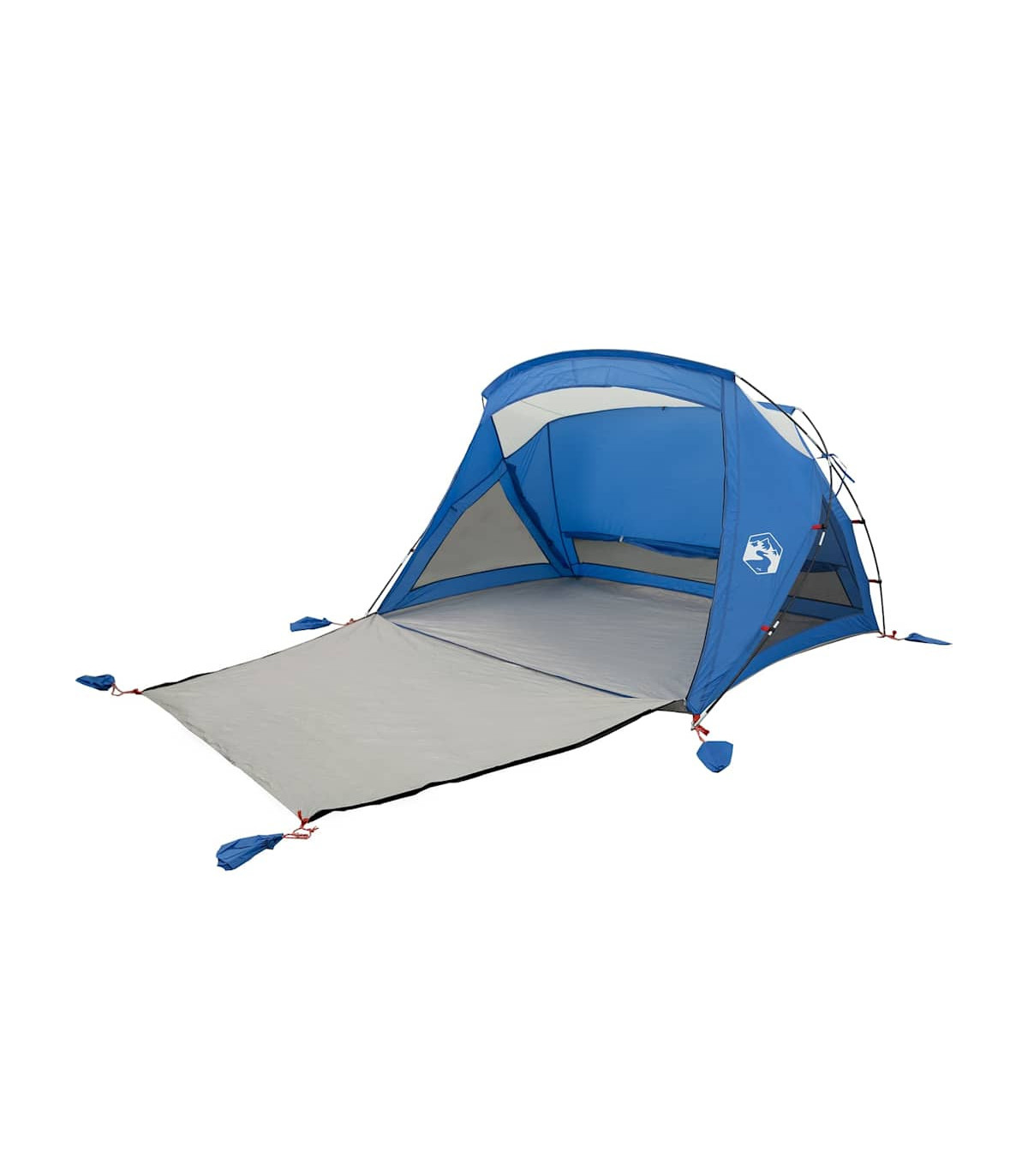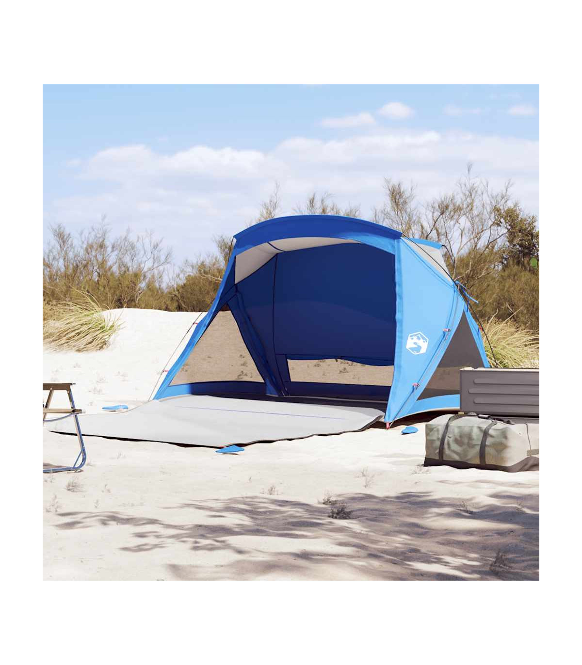 This beach tent offers you and your friends a cosy shelter in the hot summer or use it as a shade over the sandpit and paddling pool. Waterproof: This camping tent, made from polyester with a PU coating, is waterproof and wind resistant.Sandbags and pegs for added stability: The beach tent has a sandbag in each corner for enhanced stability. Extra pegs are also provided to secure the tent and prevent it from being blown away.Stay cool with maximum airflow: This tent features mesh sidewalls, providing good ventilation to keep the interior cool and comfortable.Opened door: The fully open door allows you to enjoy the beautiful beach scenery with your family or entertain the children freely on a delightful summer afternoon.Easy setup and takedown: Setting up and taking down the tent is a breeze thanks to the highly flexible and lightweight fibreglass poles and the convenient pin-and-ring connection system. Warning:Keep all flame and heat sources away from this product fabric.