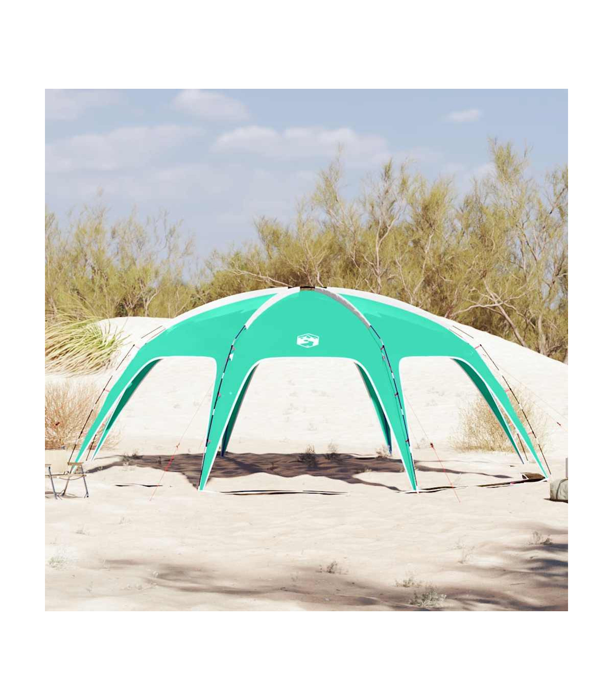 This party tent offers your family and guests safe protection from unpleasant weather, whether you are hosting a celebration or a small, private gathering. All-round waterproof design: This camping tent, made from polyester with a PU coating, is waterproof and wind resistant.Easy setup and takedown: Setting up and taking down the tent is a breeze thanks to the highly flexible and lightweight fibreglass poles and the convenient pin-and-ring connection system. Multifunctional tent: This tent provides shelter for the swimming pool, while also catering to a variety of needs such as family camping, picnics, parties, outdoor dining, and more.Stable and safe: Secure your tent firmly to the ground with the stakes and guy ropes provided to ensure stability and safety.Lightweight and portable: The foldable and lightweight design allows you to easily pack the tent and store it in the included carry bag for easy transport. Warning:Keep all flame and heat sources away from this product fabric.