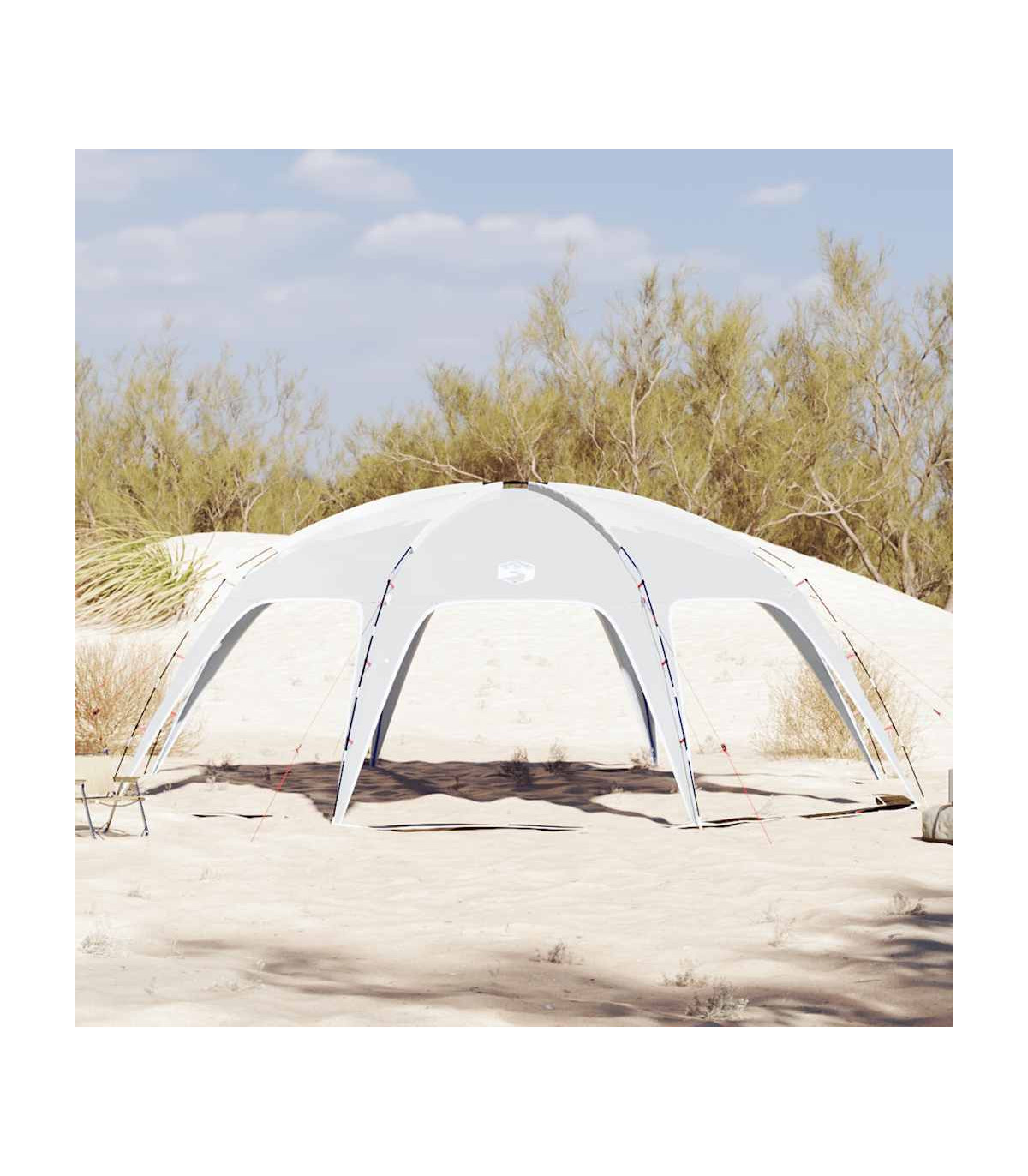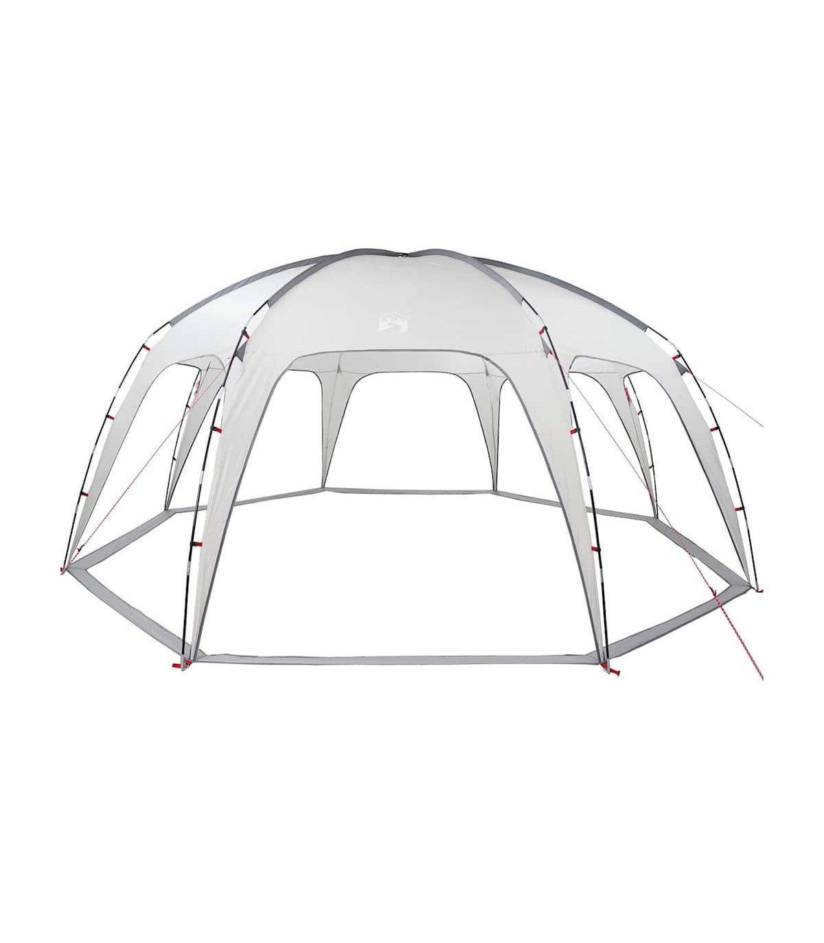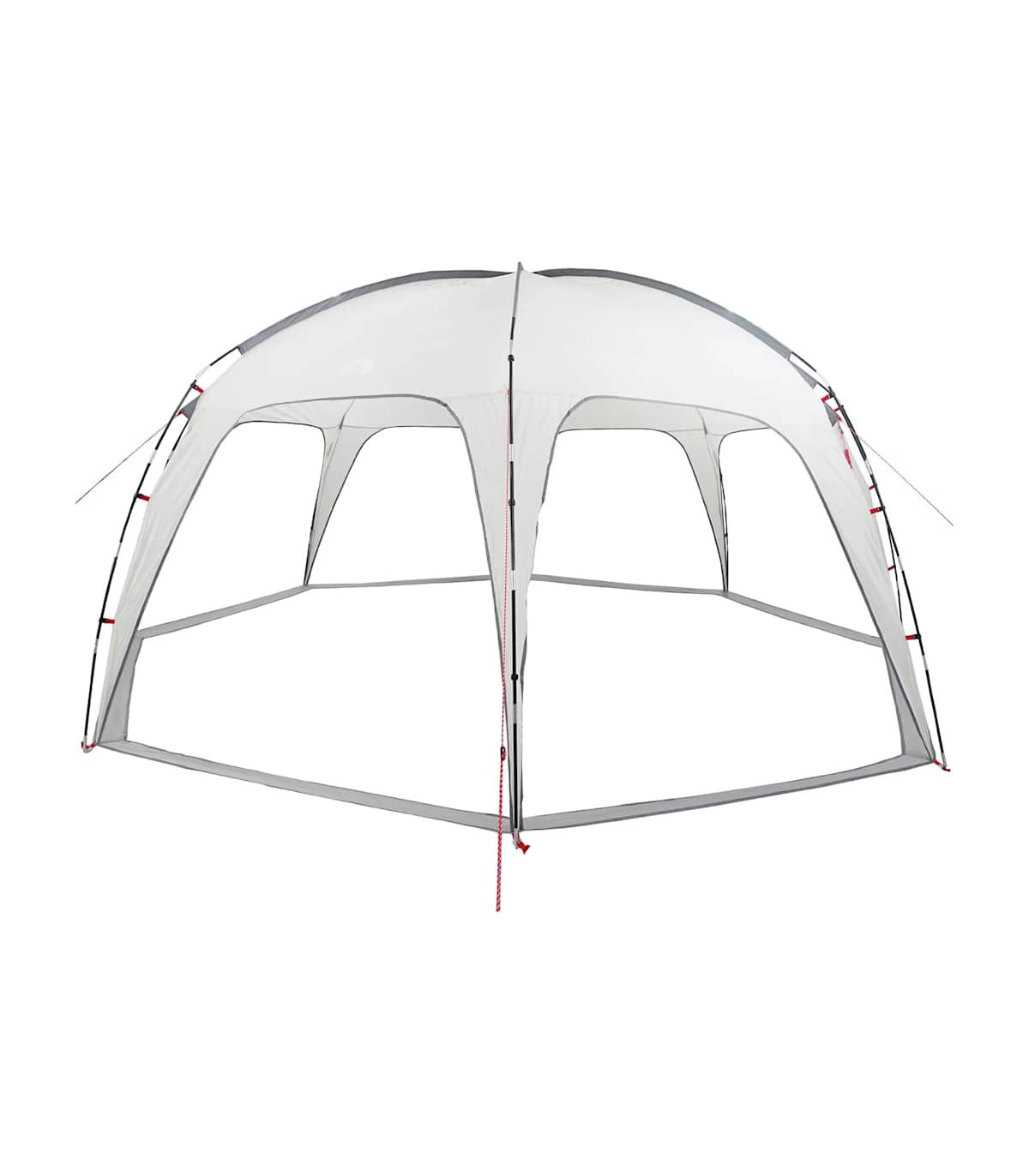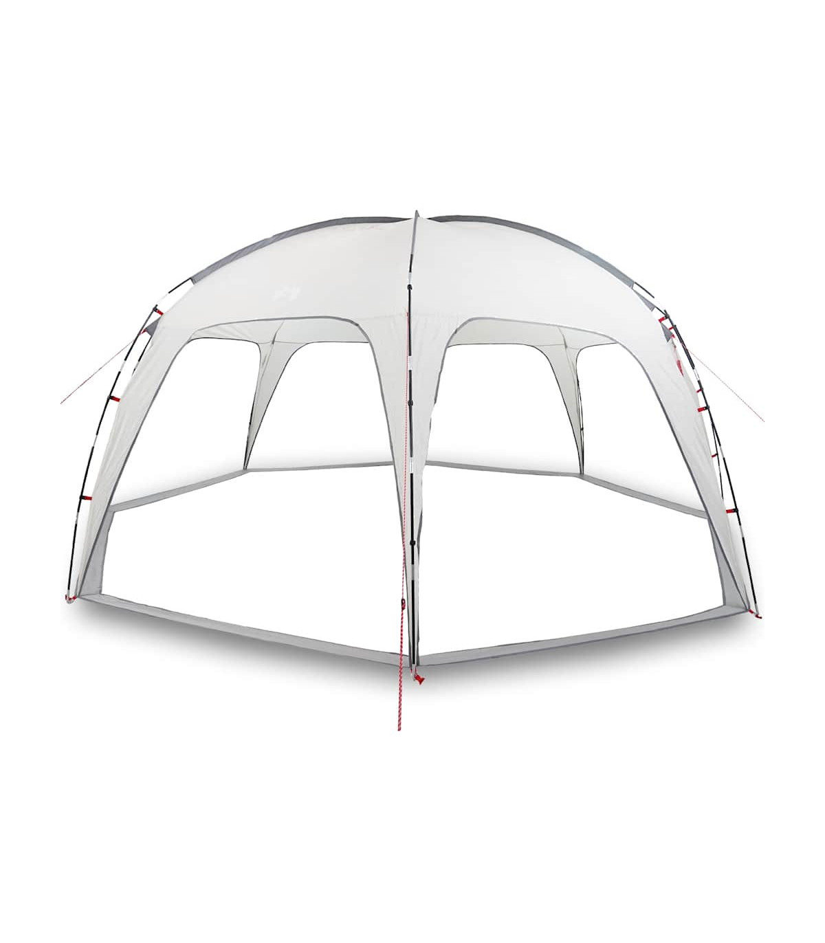 This party tent offers your family and guests safe protection from unpleasant weather, whether you are hosting a celebration or a small, private gathering. All-round waterproof design: This camping tent, made from polyester with a PU coating, is waterproof and wind resistant.Easy setup and takedown: Setting up and taking down the tent is a breeze thanks to the highly flexible and lightweight fibreglass poles and the convenient pin-and-ring connection system. Multifunctional tent: This tent provides shelter for the swimming pool, while also catering to a variety of needs such as family camping, picnics, parties, outdoor dining, and more.Stable and safe: Secure your tent firmly to the ground with the stakes and guy ropes provided to ensure stability and safety.Lightweight and portable: The foldable and lightweight design allows you to easily pack the tent and store it in the included carry bag for easy transport. Warning:Keep all flame and heat sources away from this product fabric.